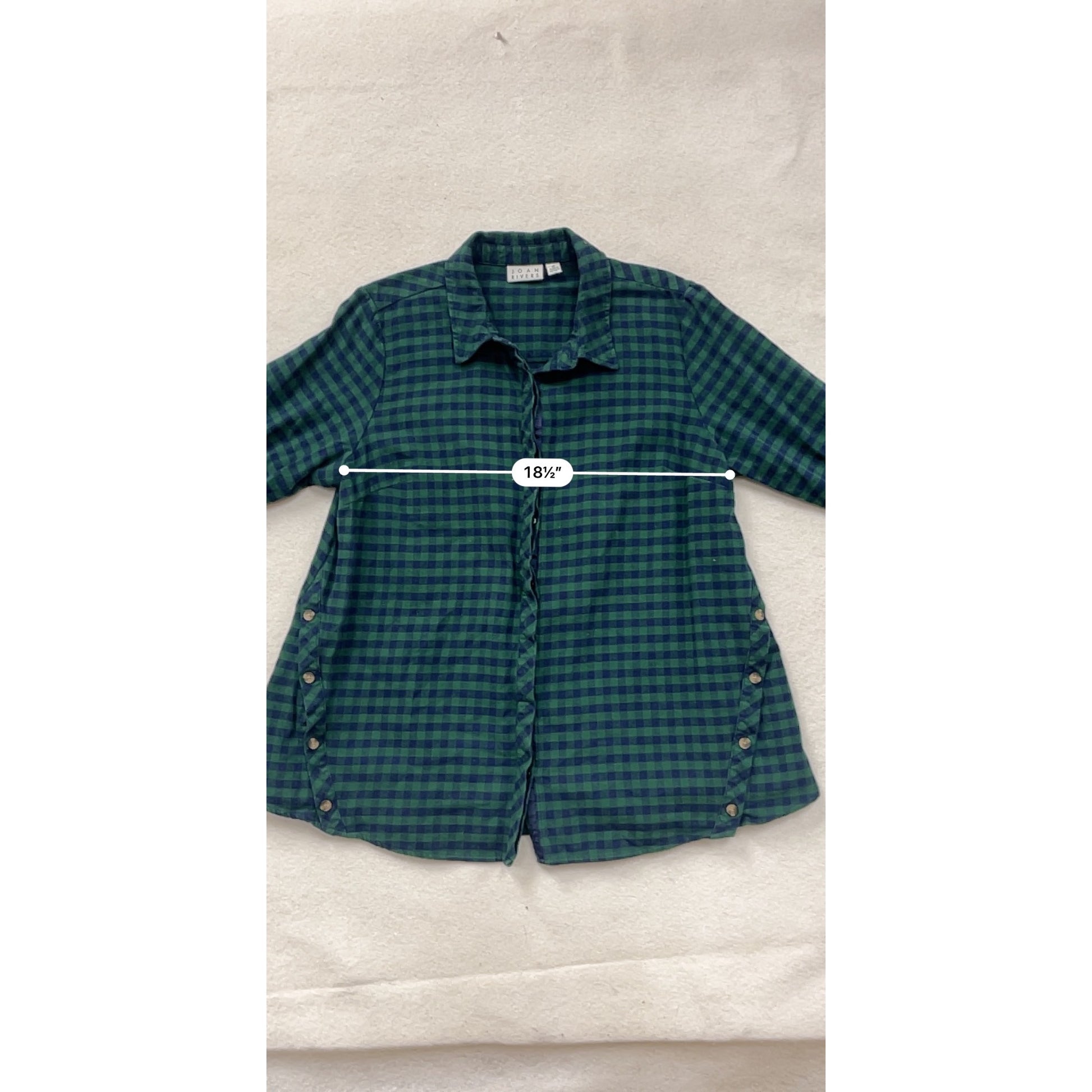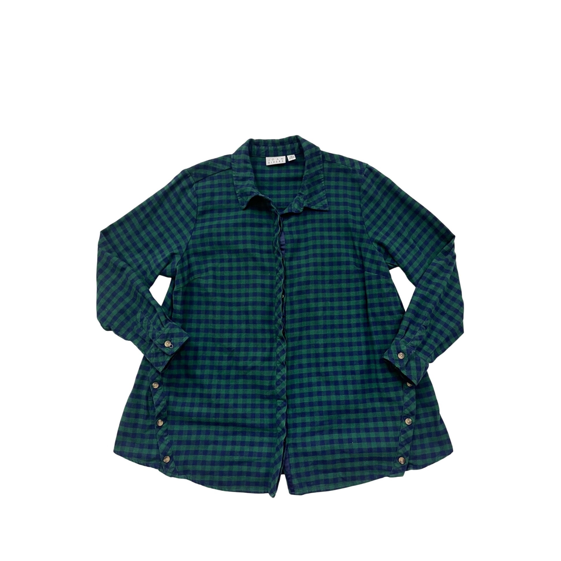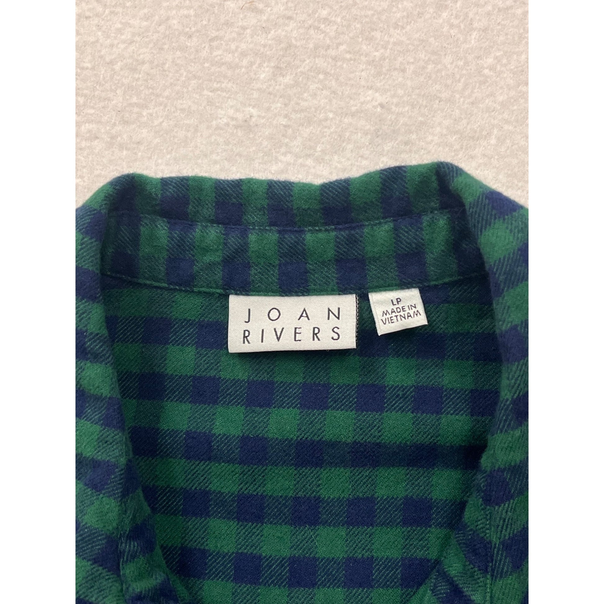 Joan Rivers Womens Green & Navy Plaid Button-Side Long-Sleeve Cotton Shirt L #6908