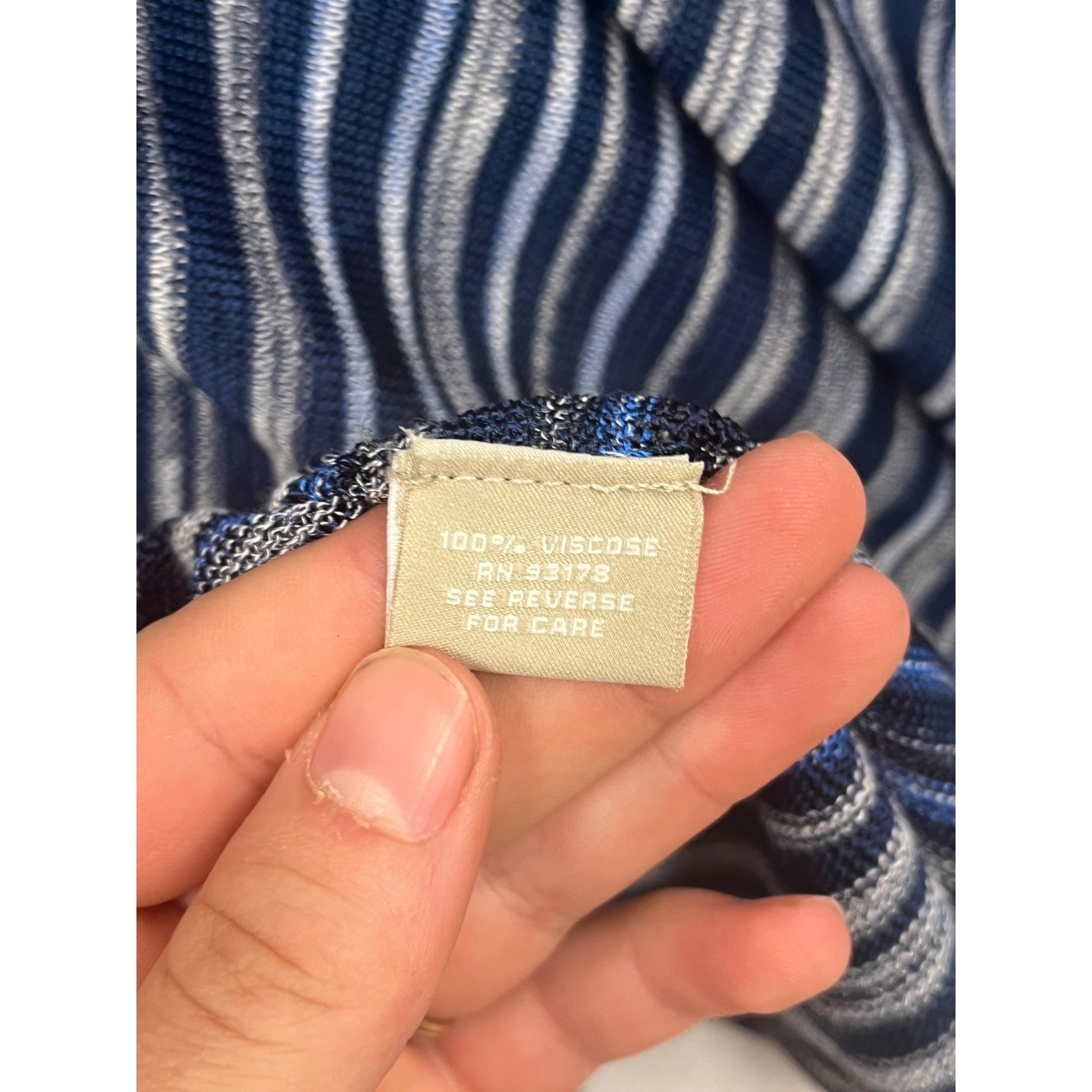 • Striped pattern in blue and white tones