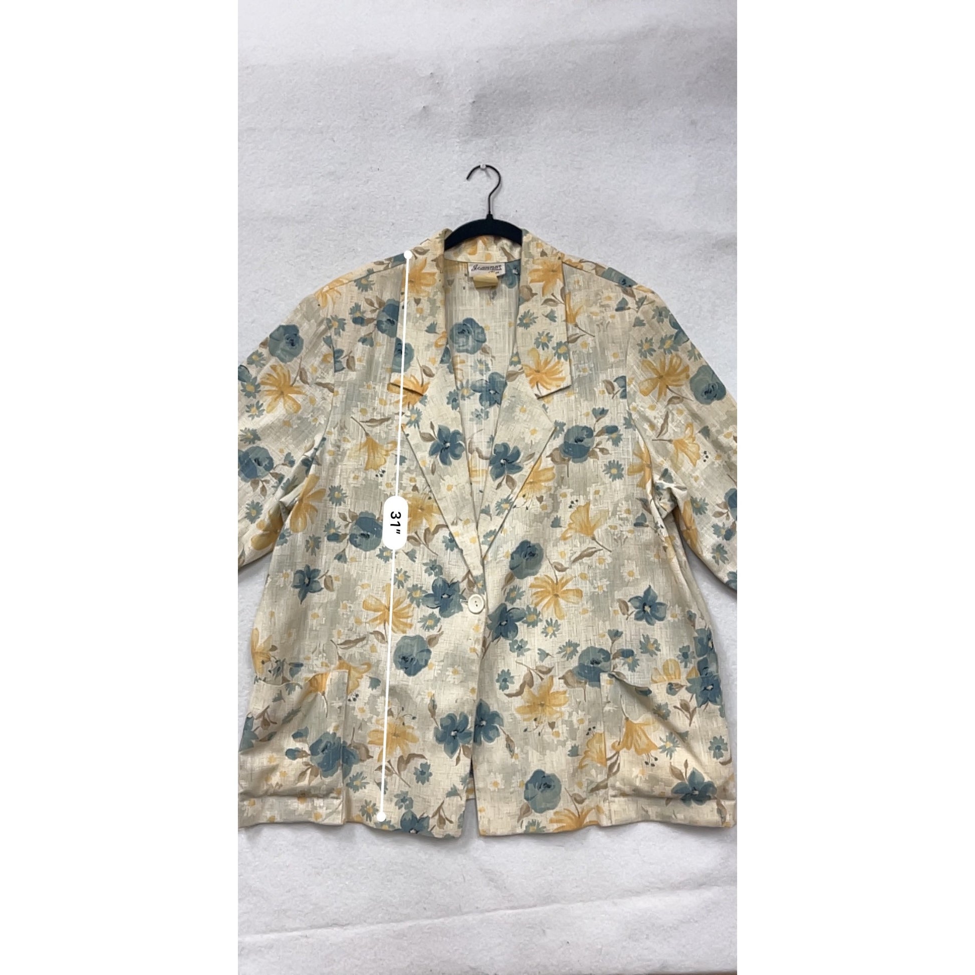 Joanna Plus Womens 2XL Floral Blazer Jacket Beige Teal & Yellow #6947