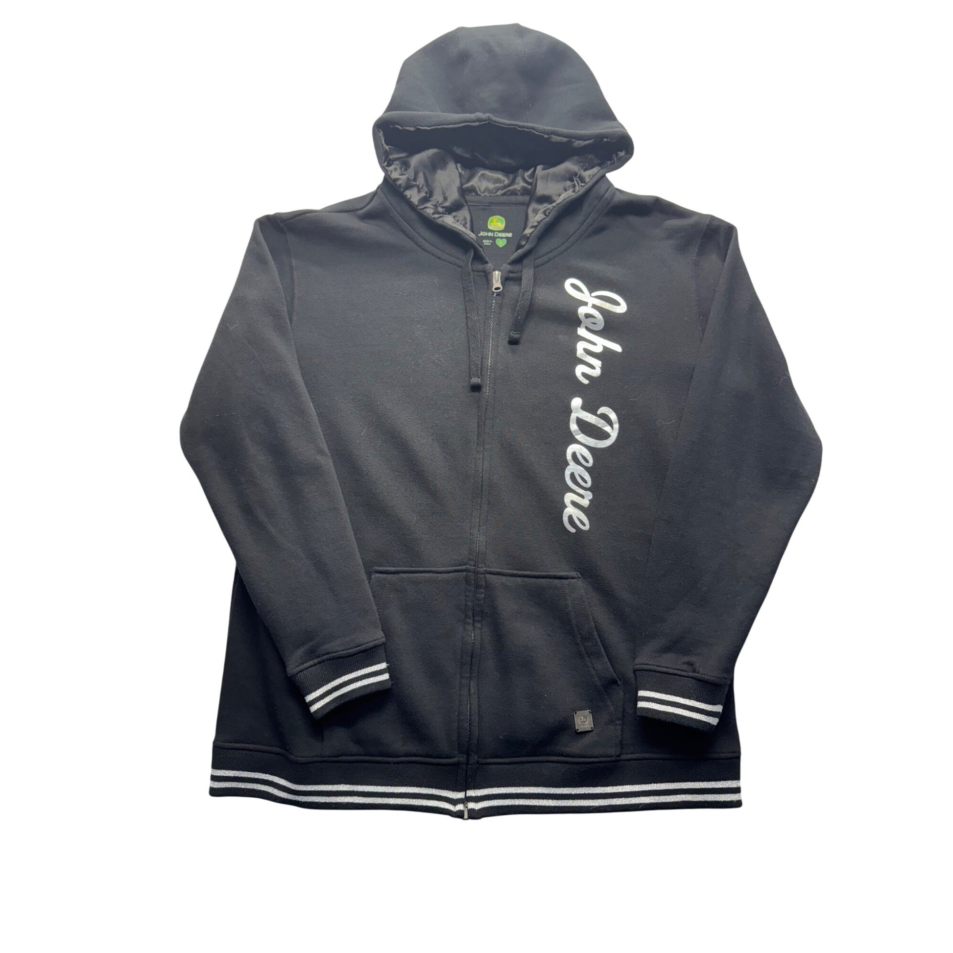 John Deere Black Hoodie Zip-Up Sweatshirt Size L Womens #7815