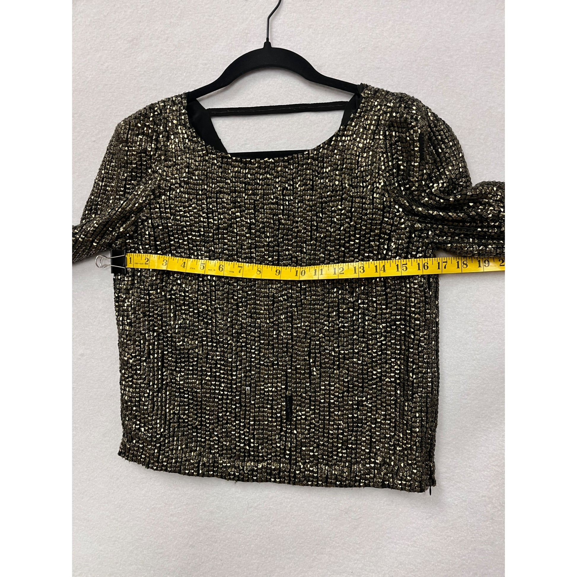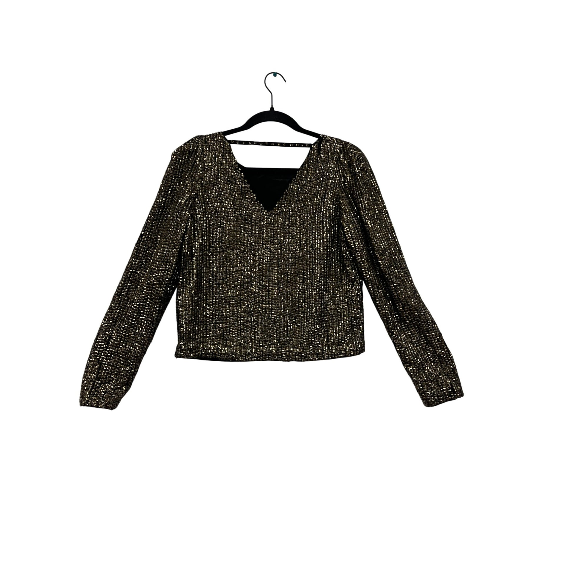 Joie Black & Gold Sequin Long Sleeve Square Neck Top #6069