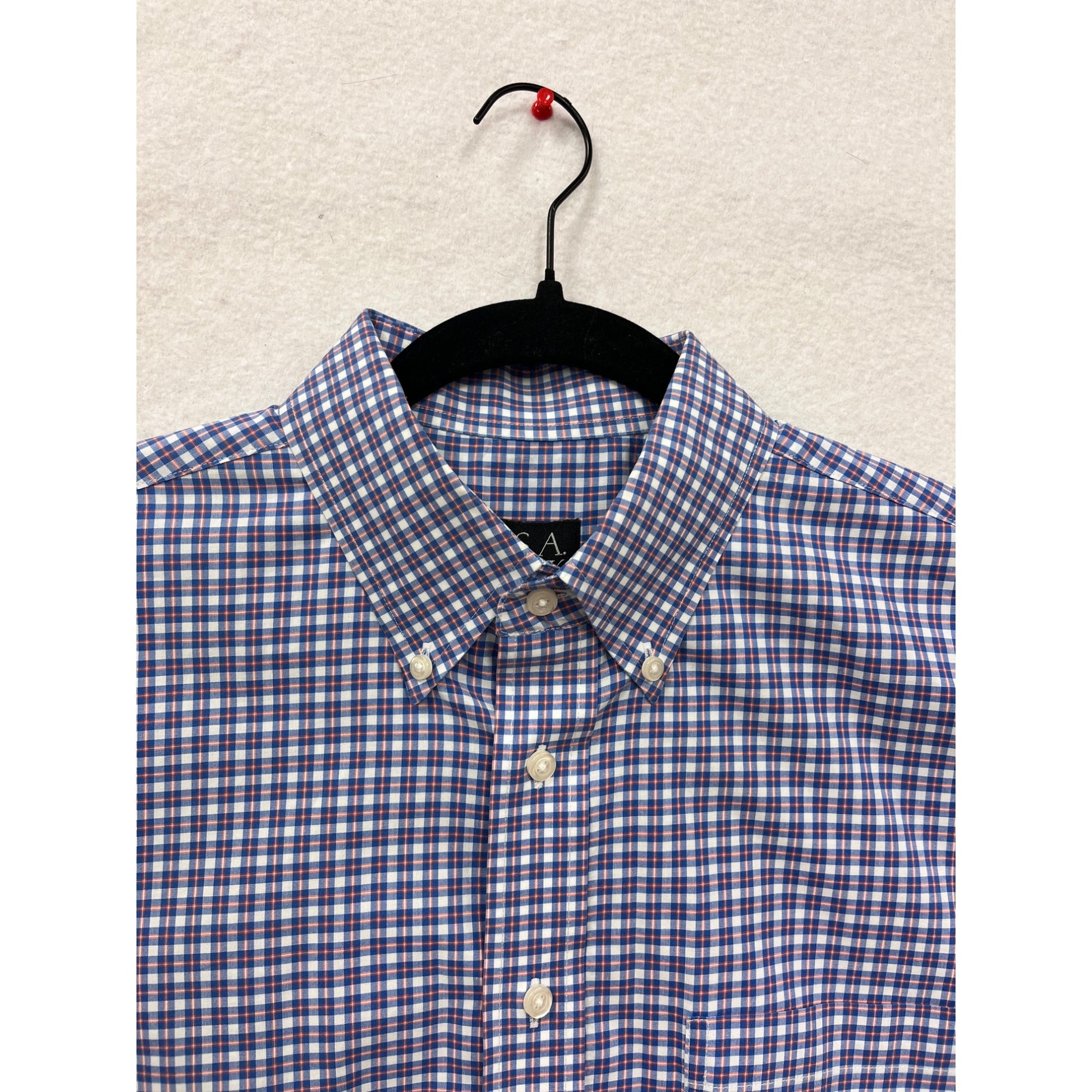 Jos. A. Bank Travelers Collection Mens Large Blue Checkered Button-Down Shirt #6350