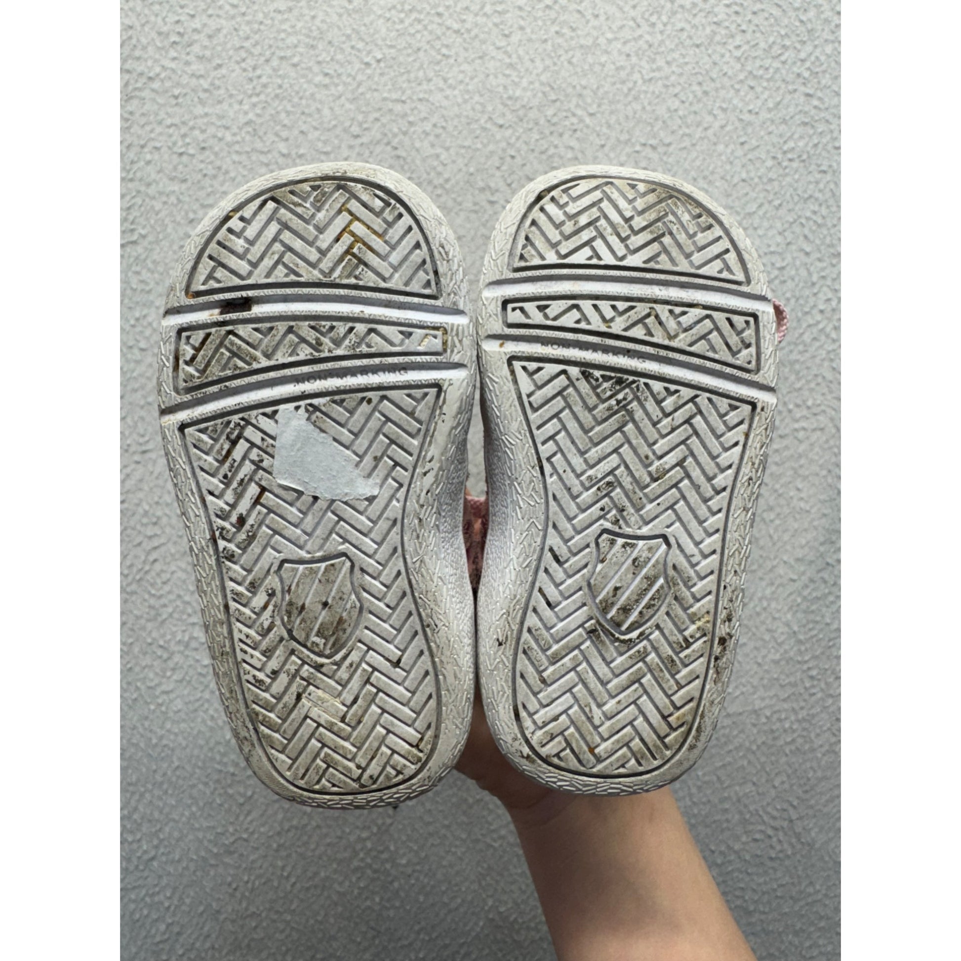 These stylish infant sneakers offer comfort and trendy design for little explorers. Crafted with a soft pink base and iridescent leopard print, these K-Swiss shoes provide lightweight support for developing feet.