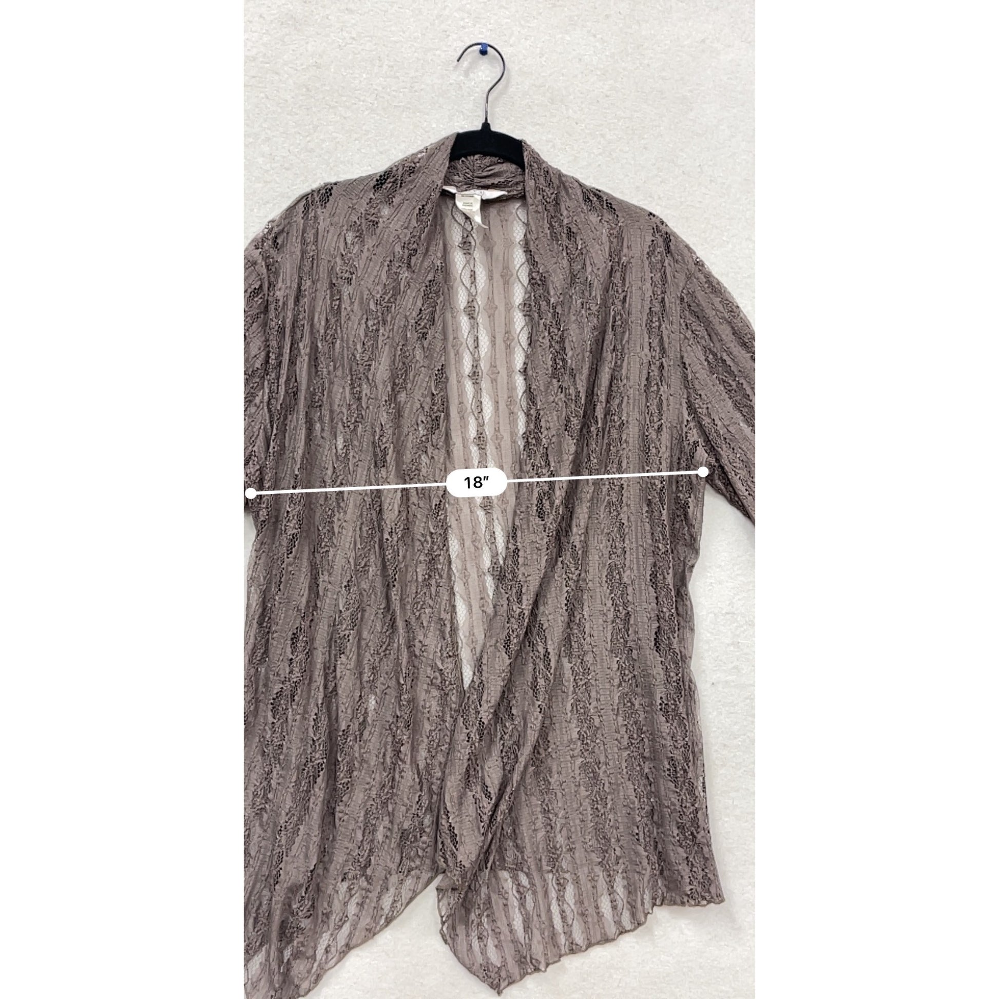 This elegant Karen Hart lace cardigan offers a professional touch to your wardrobe. With an open front design, it provides comfort and style for business settings. Crafted from nylon and spandex, it ensures a light, breathable fit. Suitable for layering over blouses or dresses.