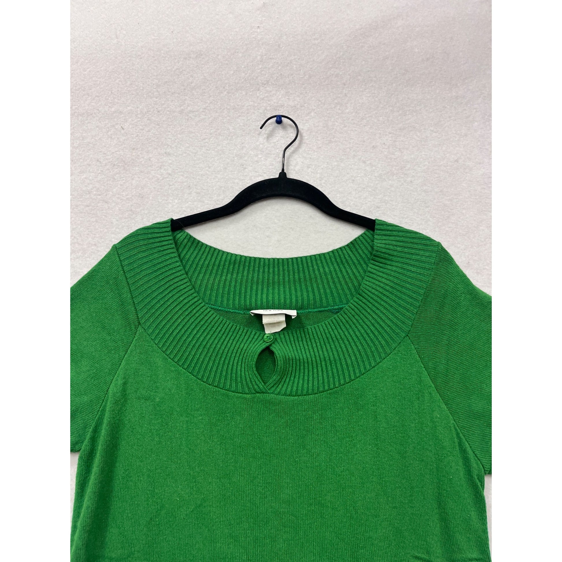 Kari New York Green Short Sleeve Sweater Top Keyhole Neck Size L #473A
