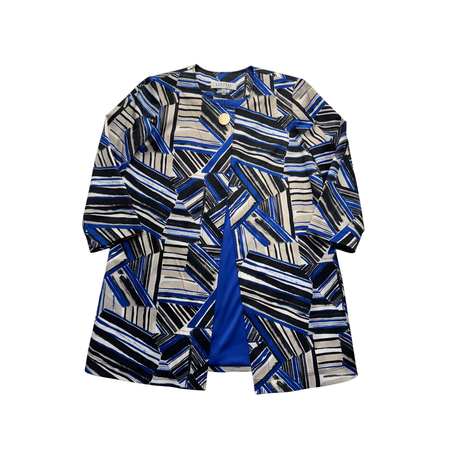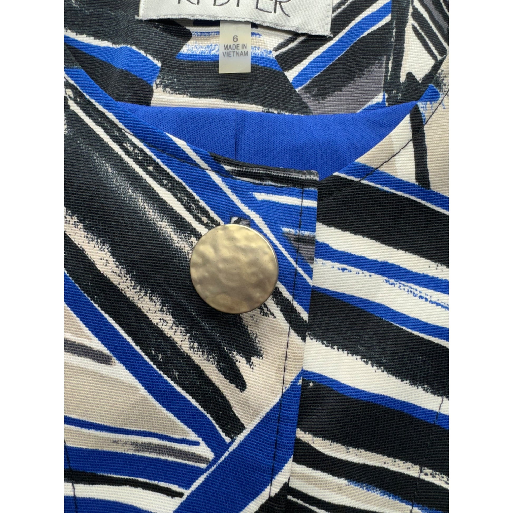 Kasper Geometric Print Open Front Jacket With Brass Button Size 6 #9419