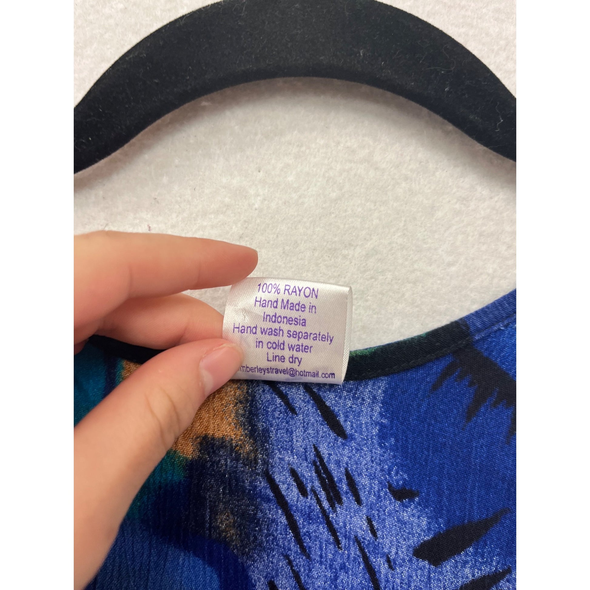 This asymmetrical sleeveless top features a unique abstract design in vibrant blue and orange tones. Made from lightweight rayon for comfortable wear.