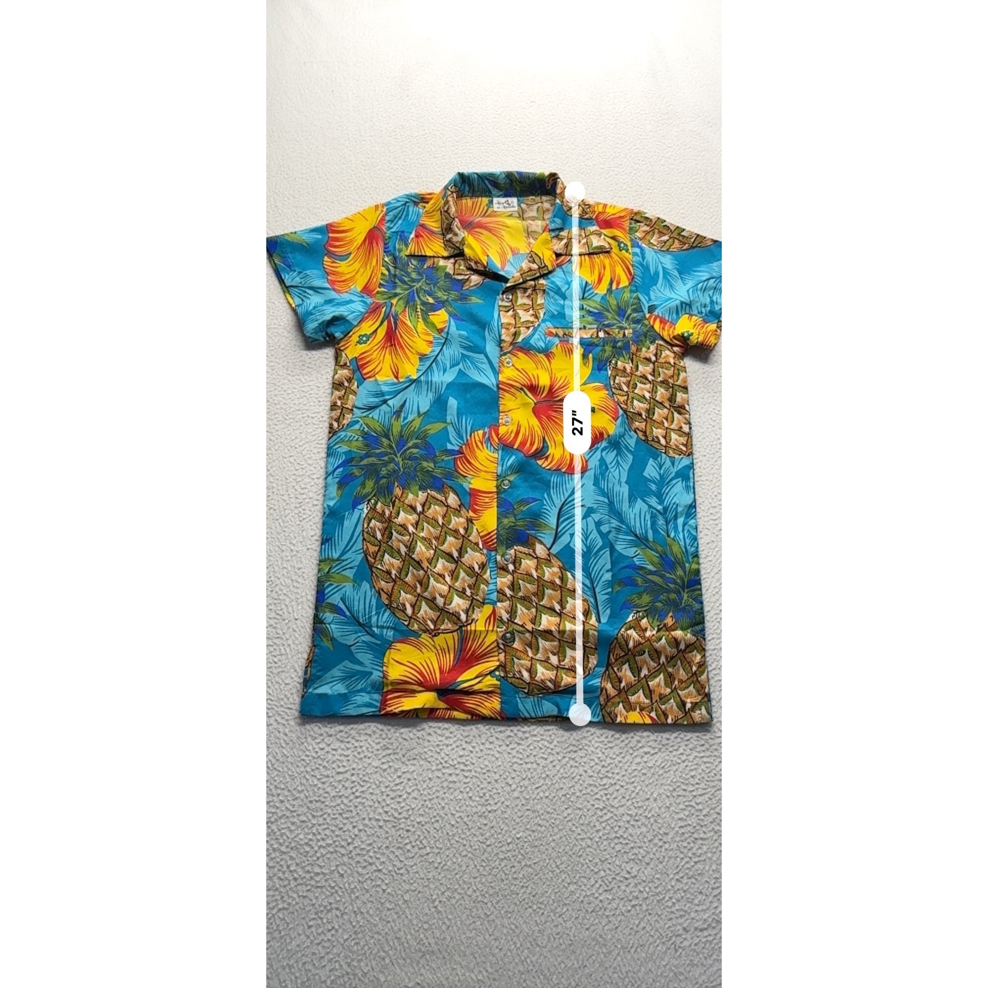 King Kameha Hawaiian Shirt XS Pineapple/Hibiscus 100% Terivoile #9039