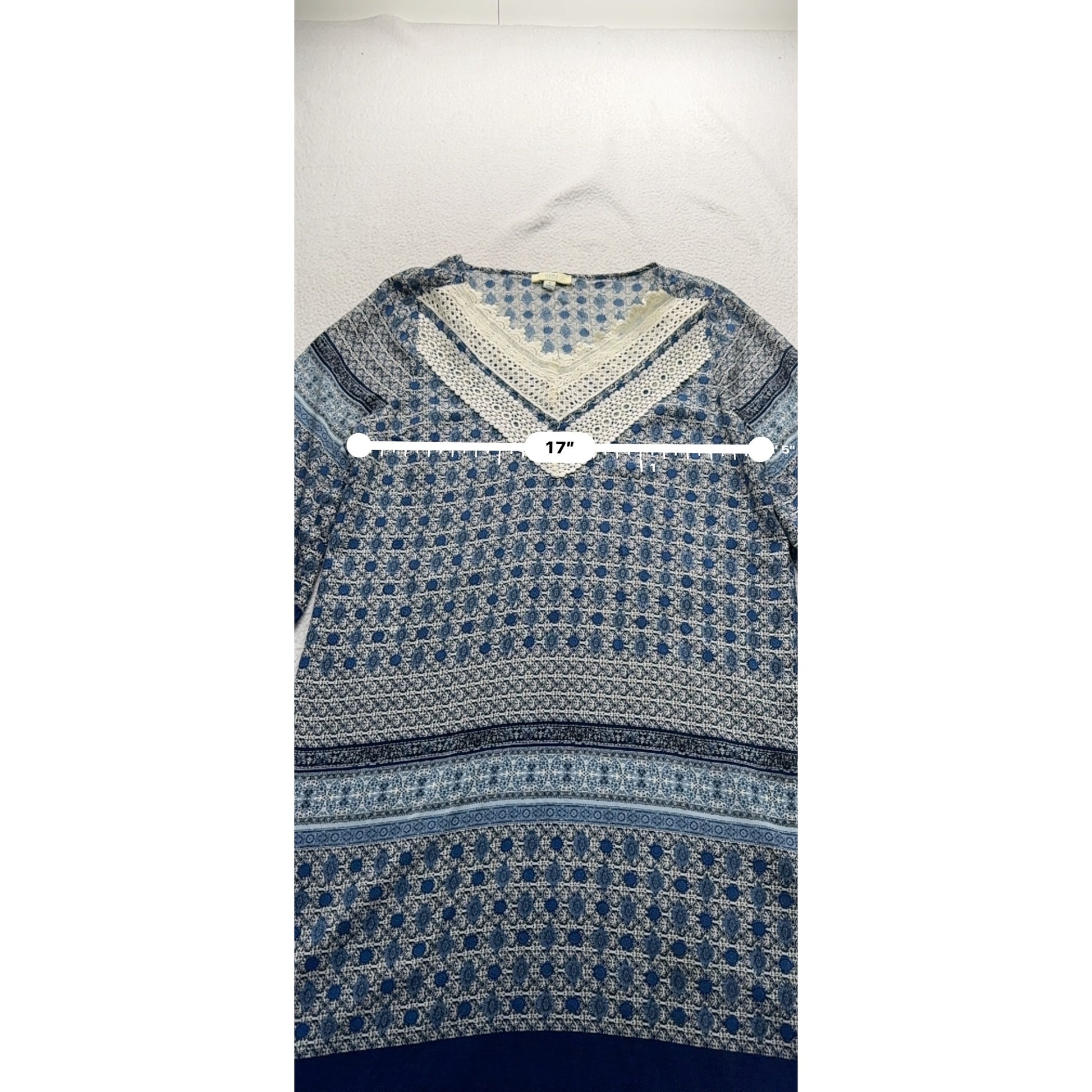 Kori America Blue Boho Tunic Dress With Crochet Detailing Small #9315