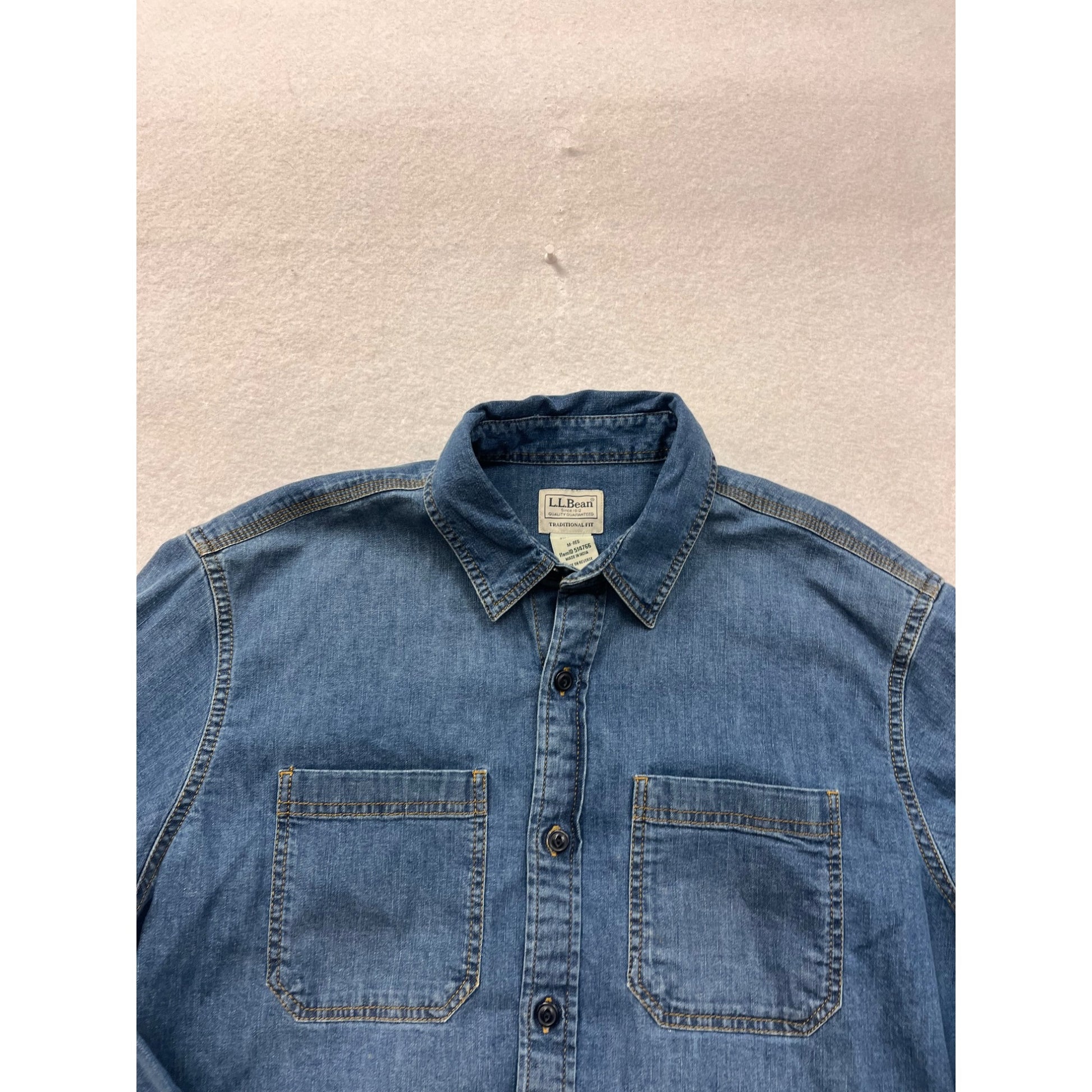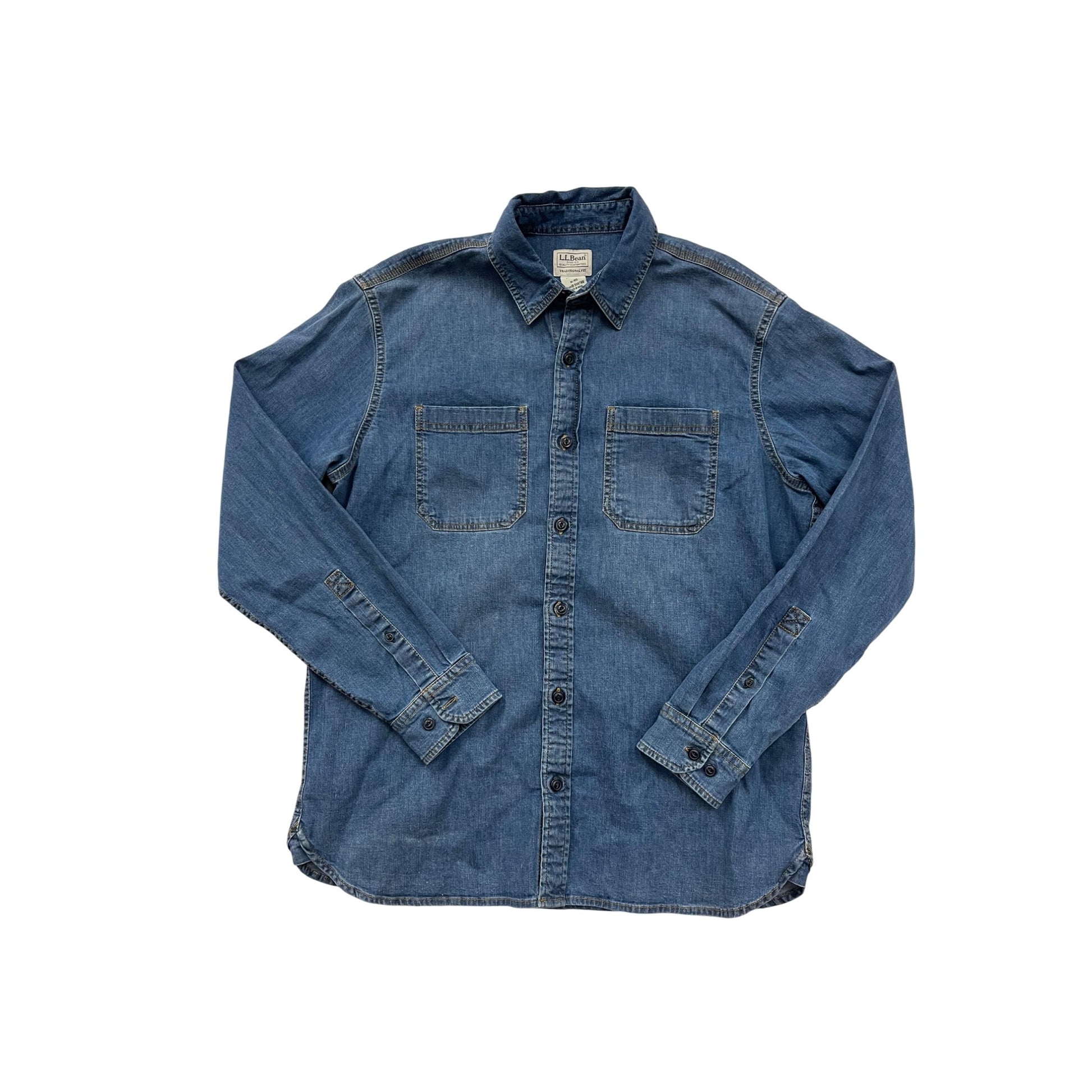L.L.Bean Denim Shirt M Traditional Fit Cotton Blend Blue #8323