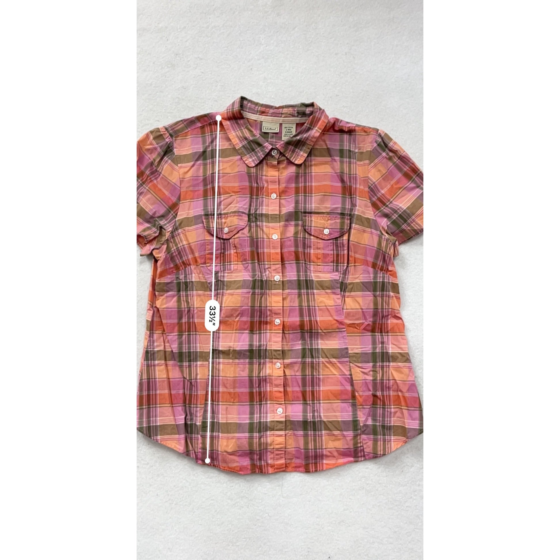 L.L.Bean Plaid Cotton Button-Up Camping Shirt L #8702