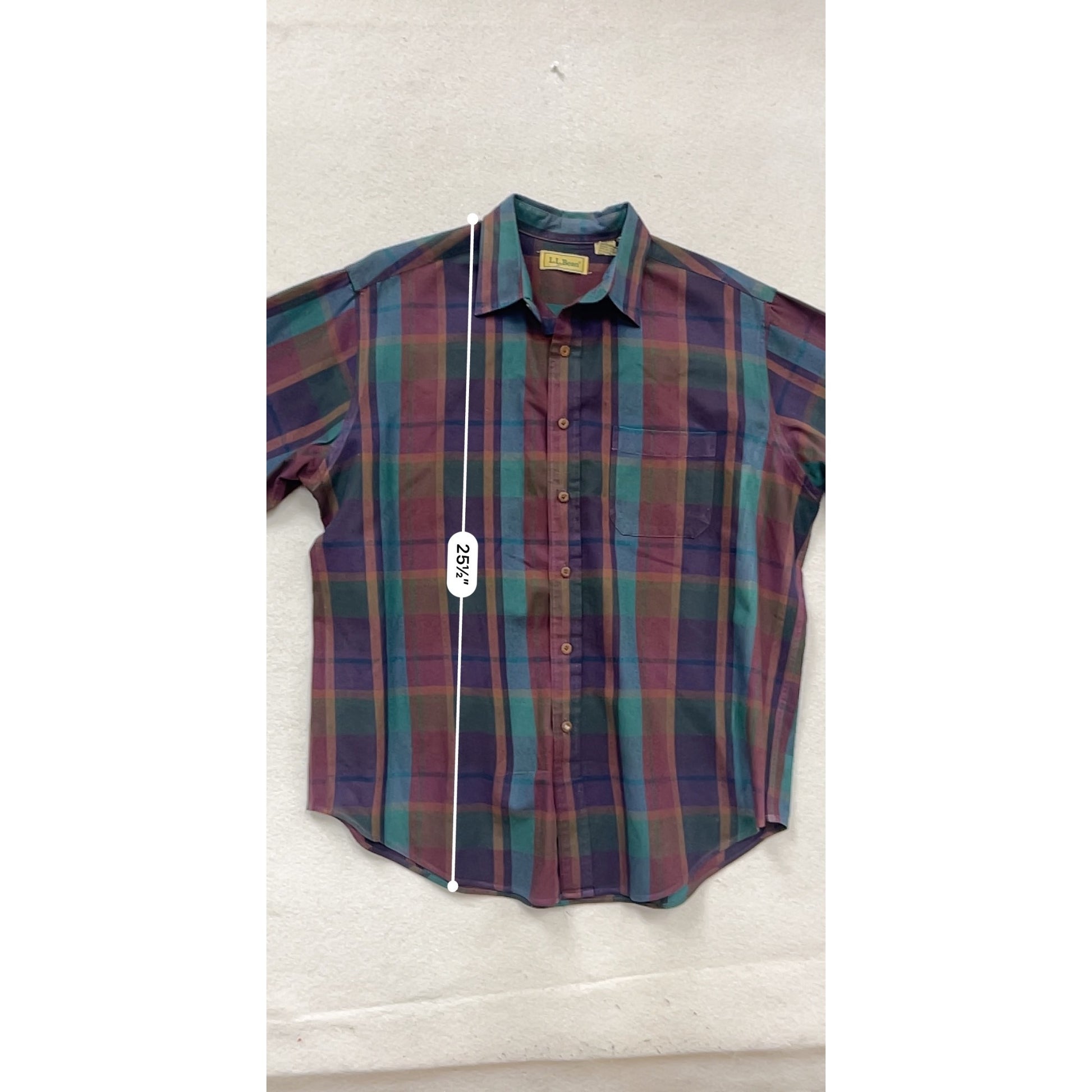 This L.L. Bean plaid shirt is crafted from a durable cotton and polyester blend, offering comfort and style. Its long sleeves and button-up design make it a versatile addition to a professional wardrobe. This shirt is suitable for year-round wear, providing a classic and polished look.
