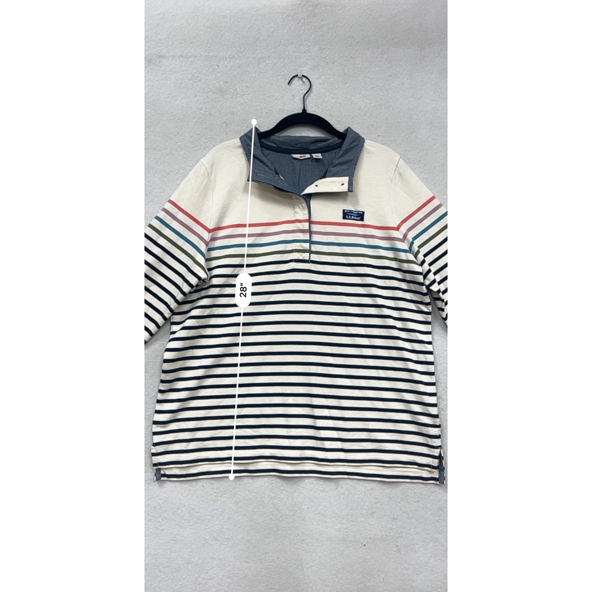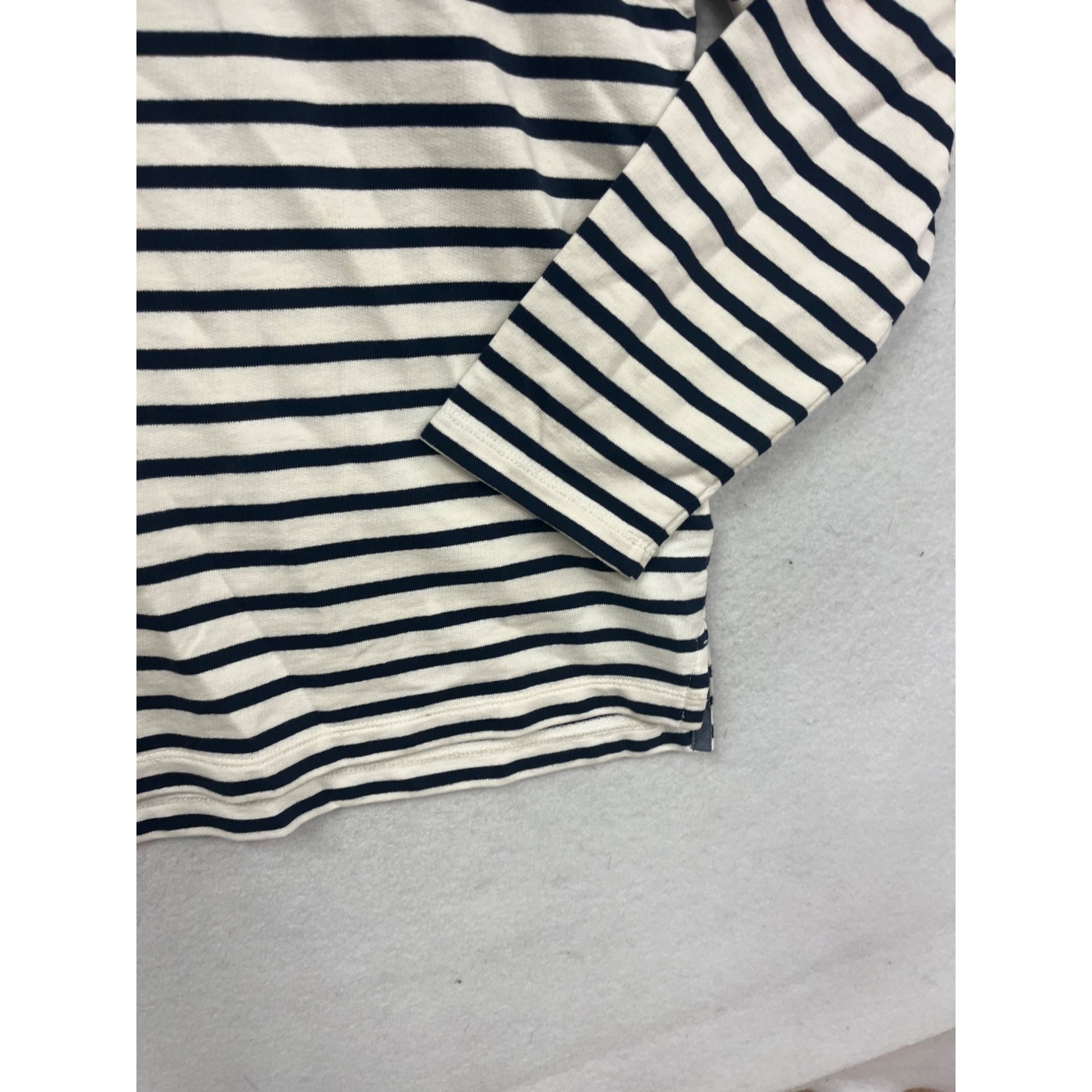 L.L. Bean Striped Pullover Long Sleeve Top Blue & White Cotton Size L #281A