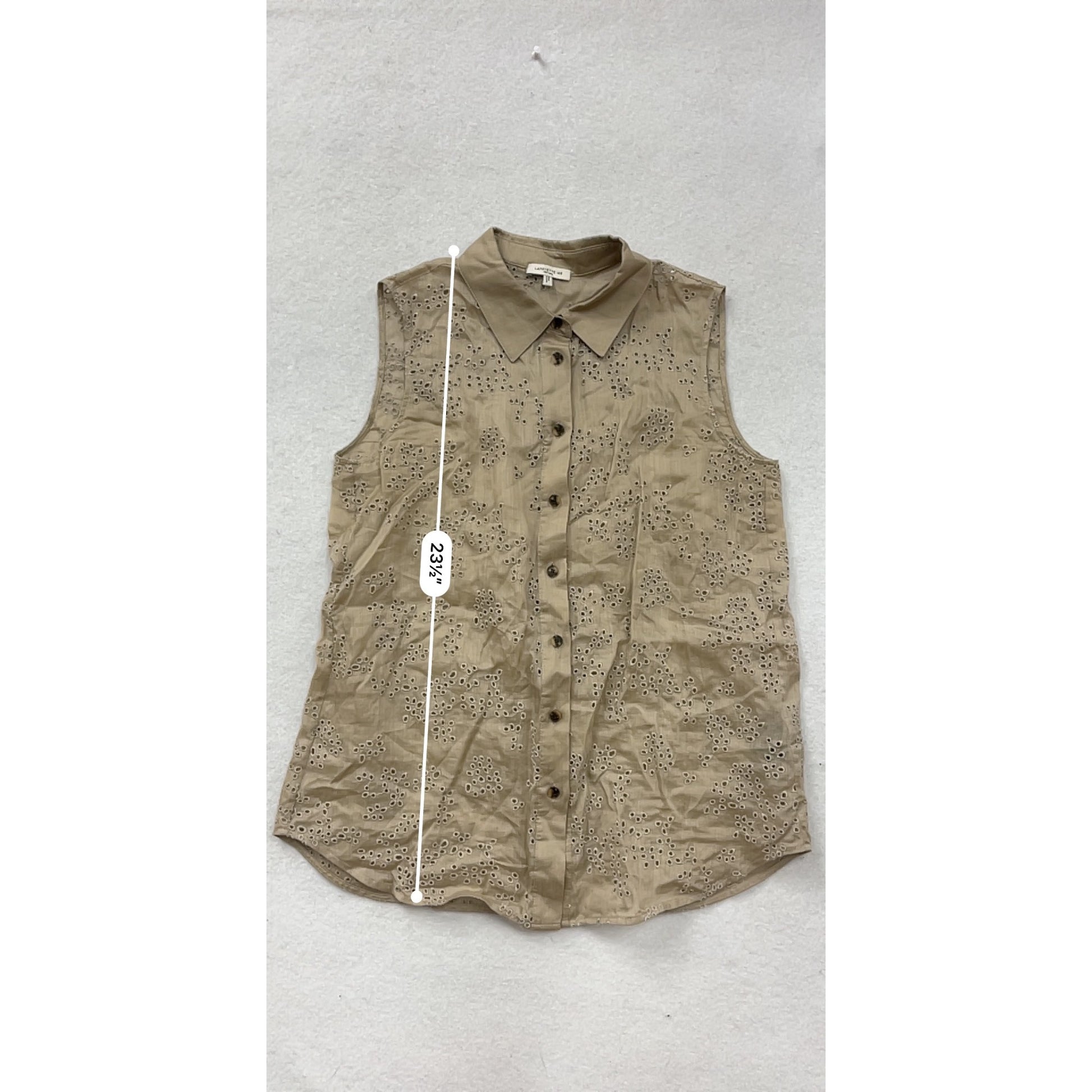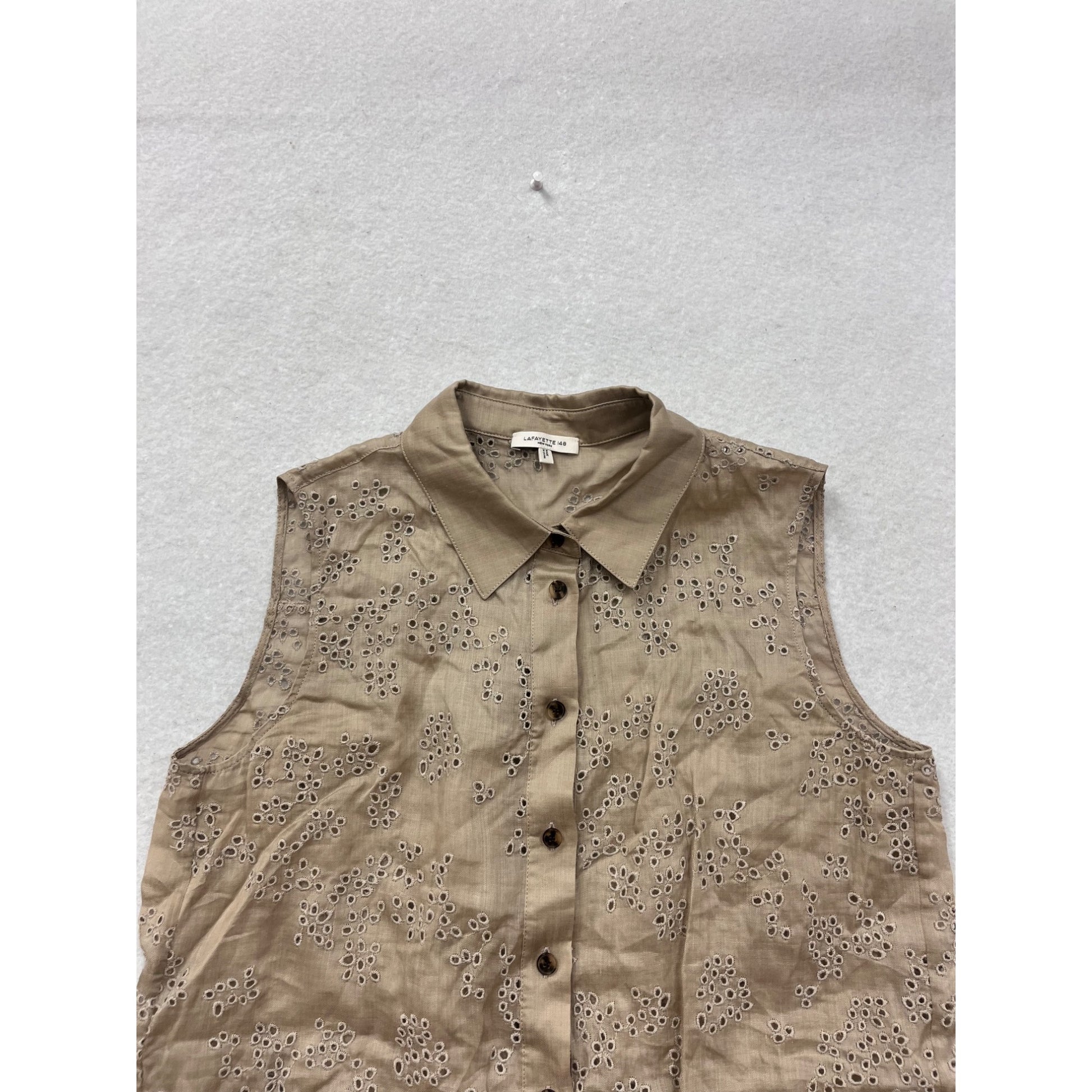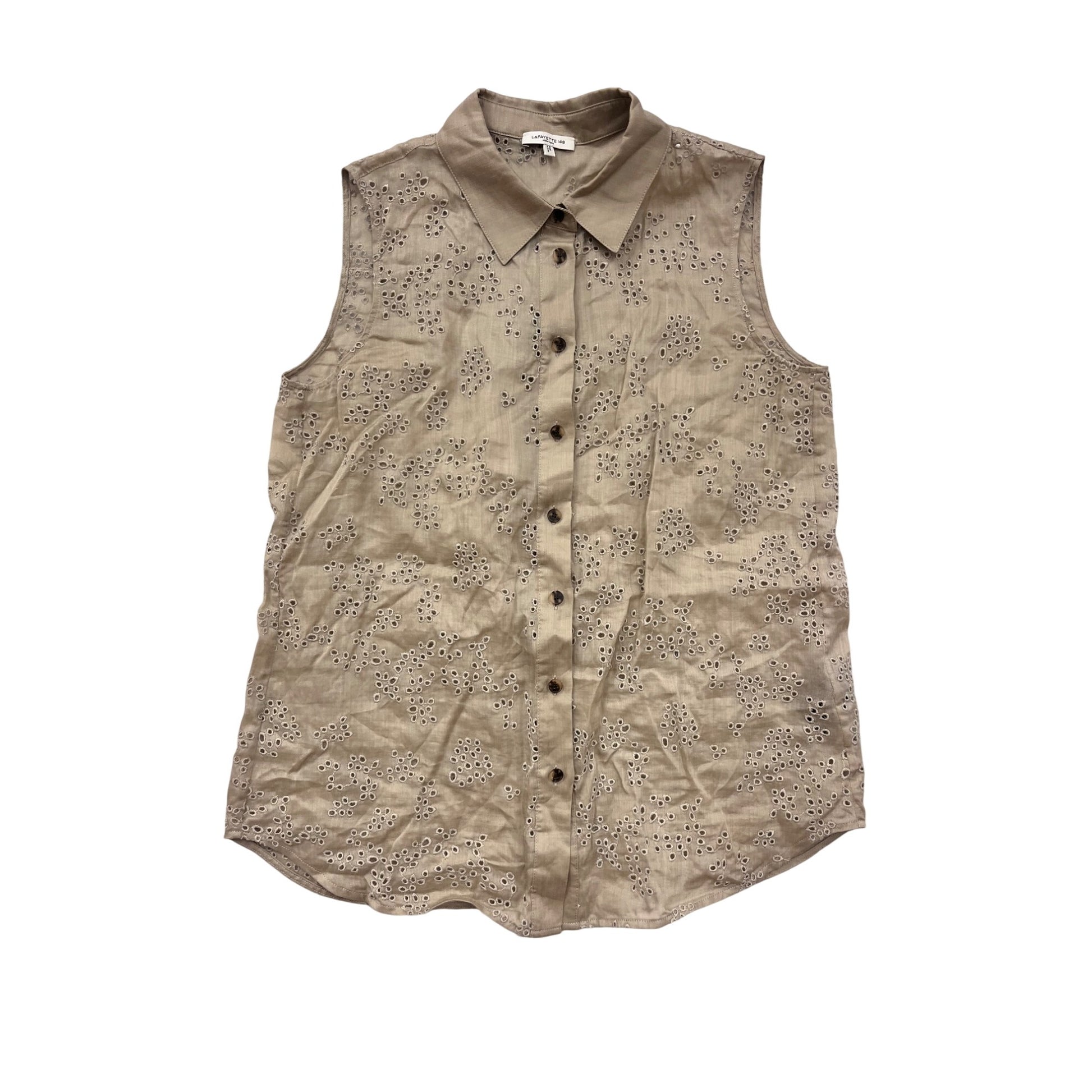 Lafayette 148 New York Tan Eyelet Sleeveless Button-Up Shirt S #8867