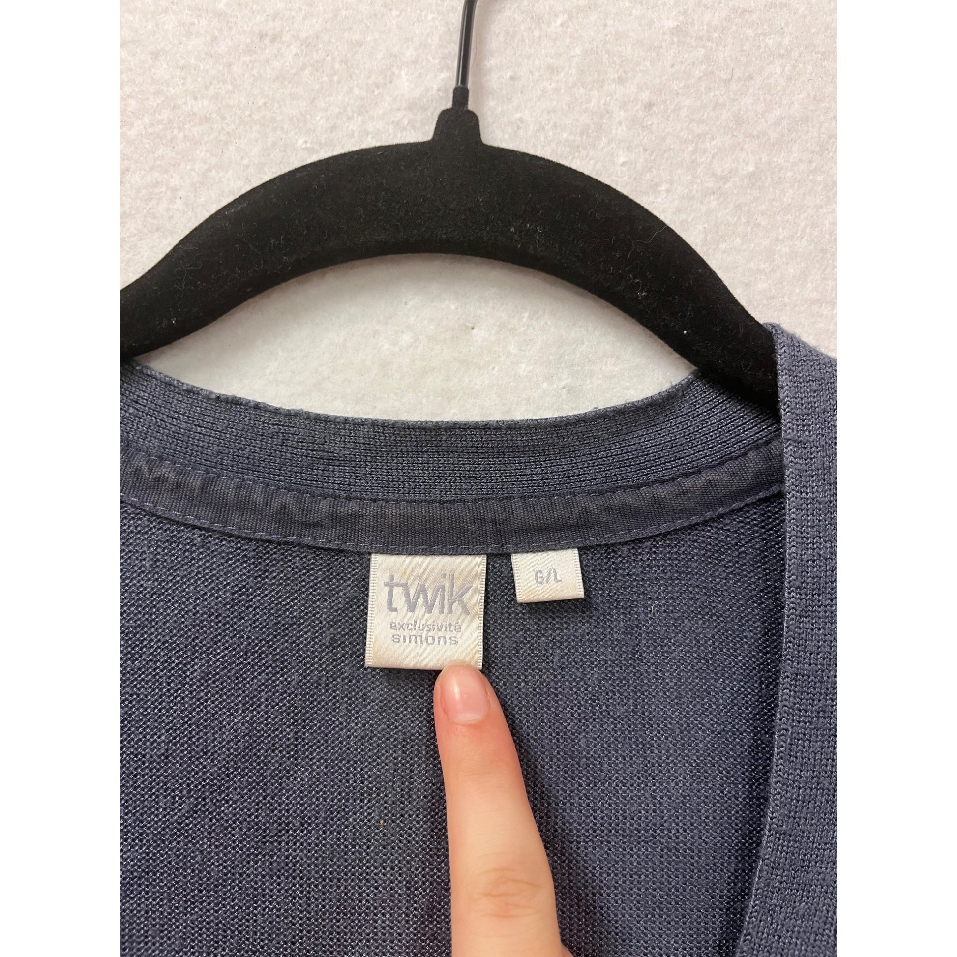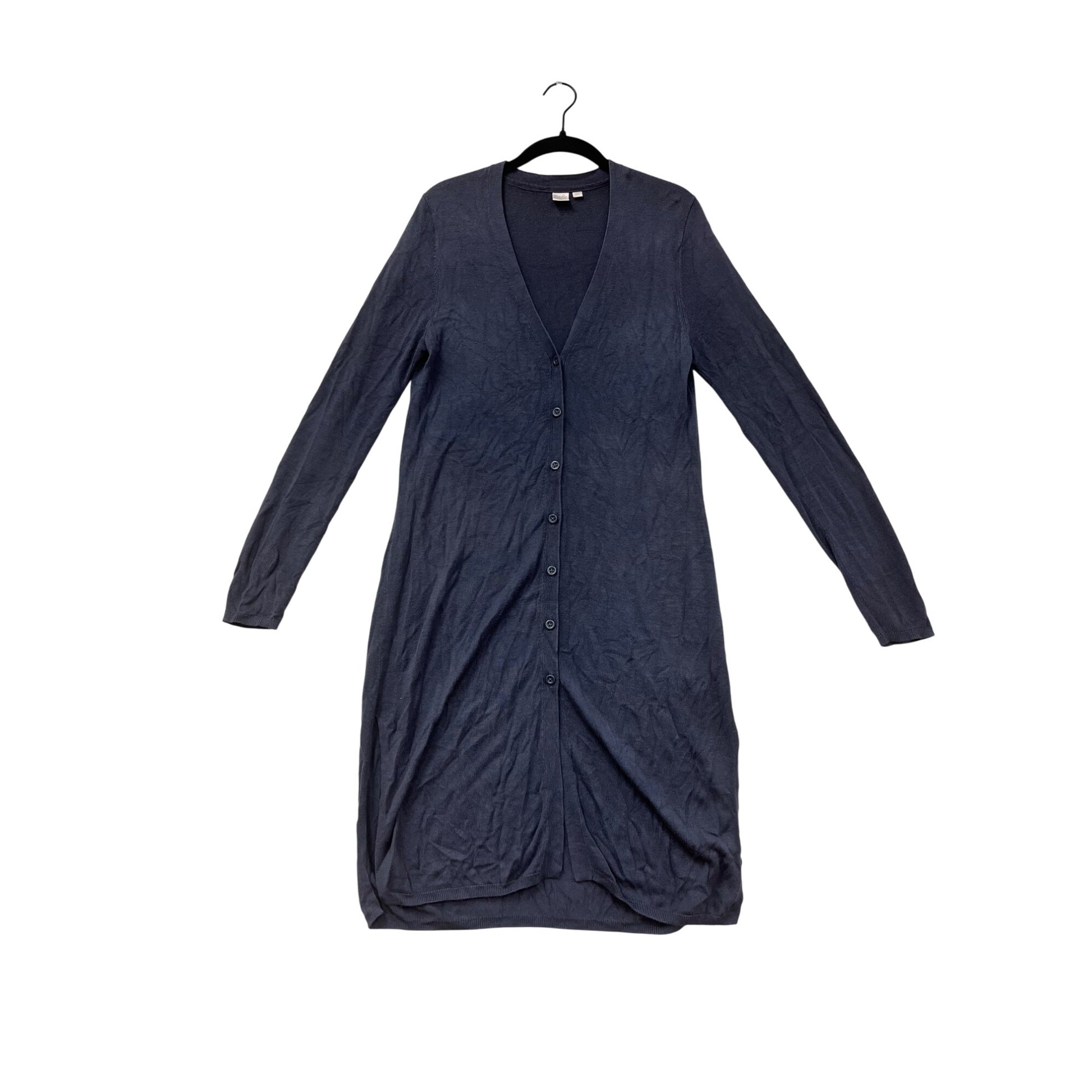 Large Navy Blue Long Button-Up Cardigan By Twik #8680