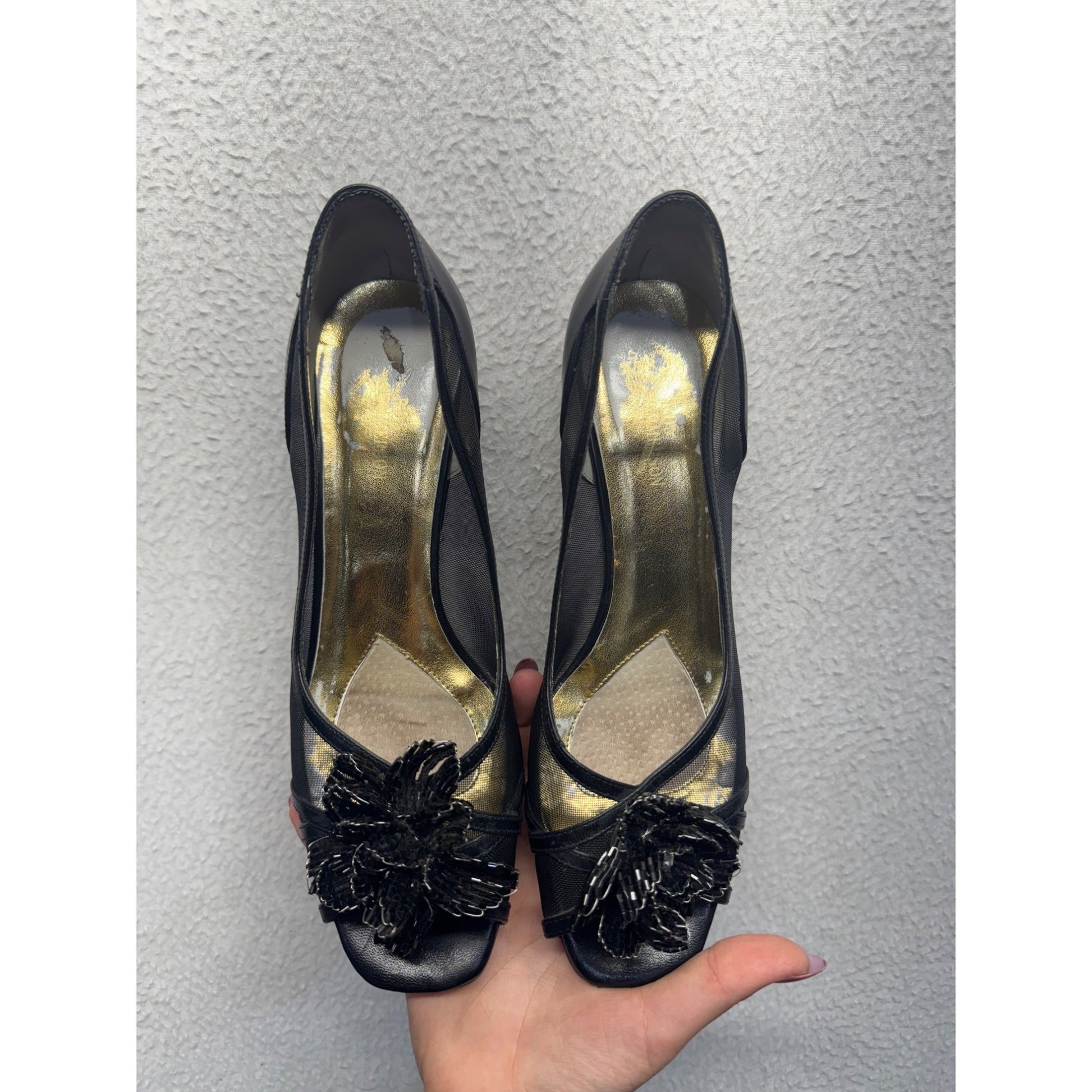 Leather Ros Hommerson Black Flower Peep-Toe Mesh Kitten Heels #9017