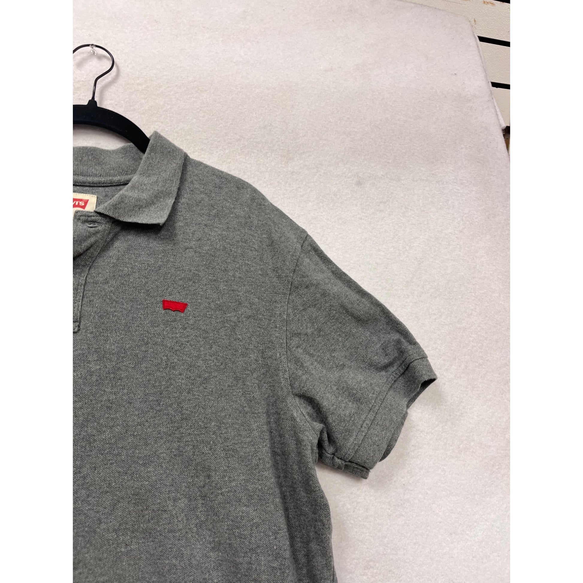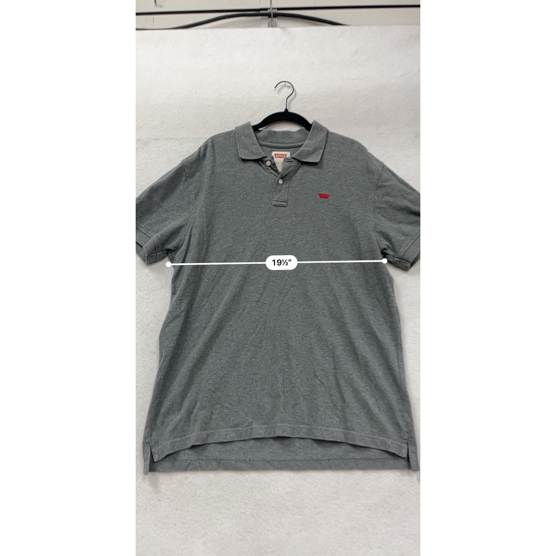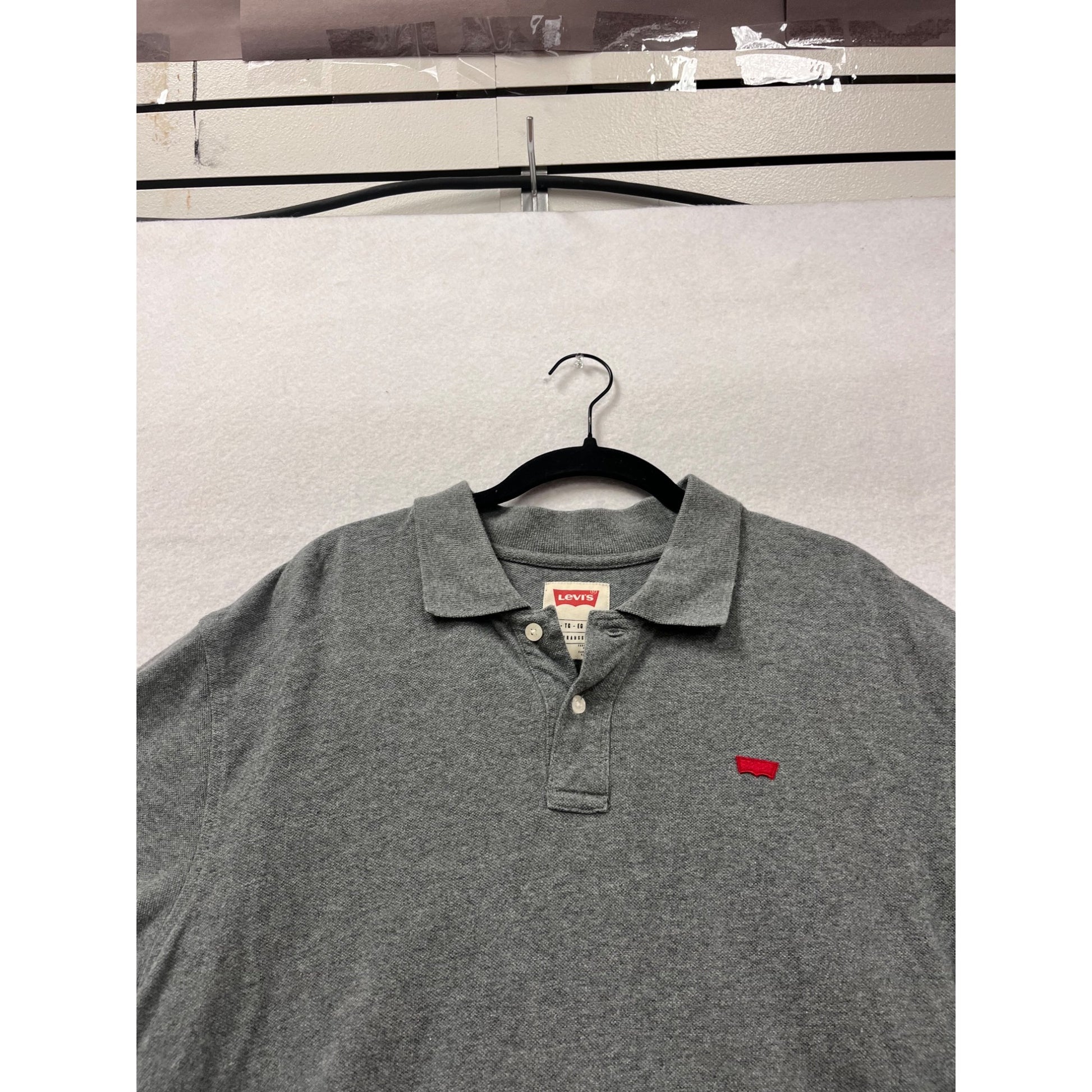 The Levi's Men's Gray Polo Shirt in size XL offers a classic, versatile look suitable for casual and semi-formal settings. The shirt features a subtle red Levi's logo, enhancing its aesthetic appeal. Constructed from a comfortable cotton blend, it ensures breathability and ease of movement throughout the day.