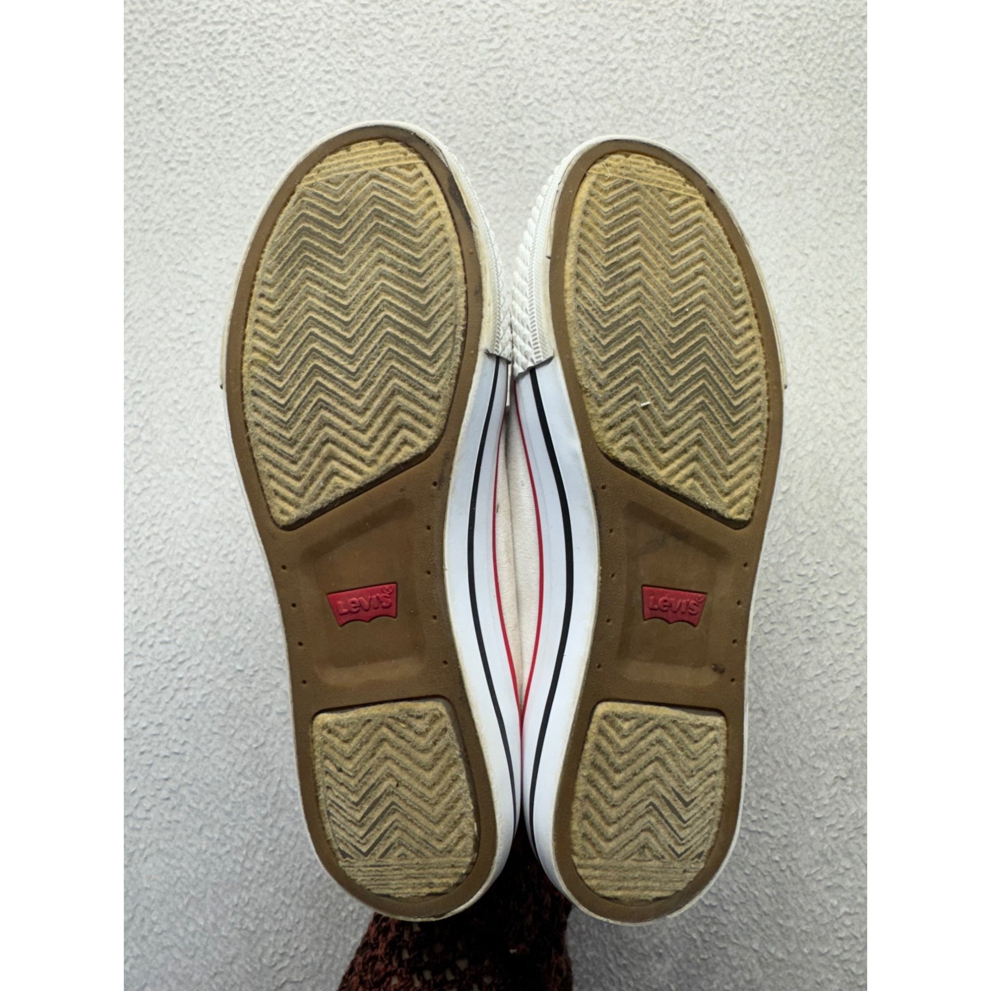 These Levi's sneakers offer a versatile and classic design with a comfortable fit. Ideal for casual outings, their durable canvas material ensures long-lasting use. The red trim adds a subtle pop of color, making them a stylish addition to any wardrobe.