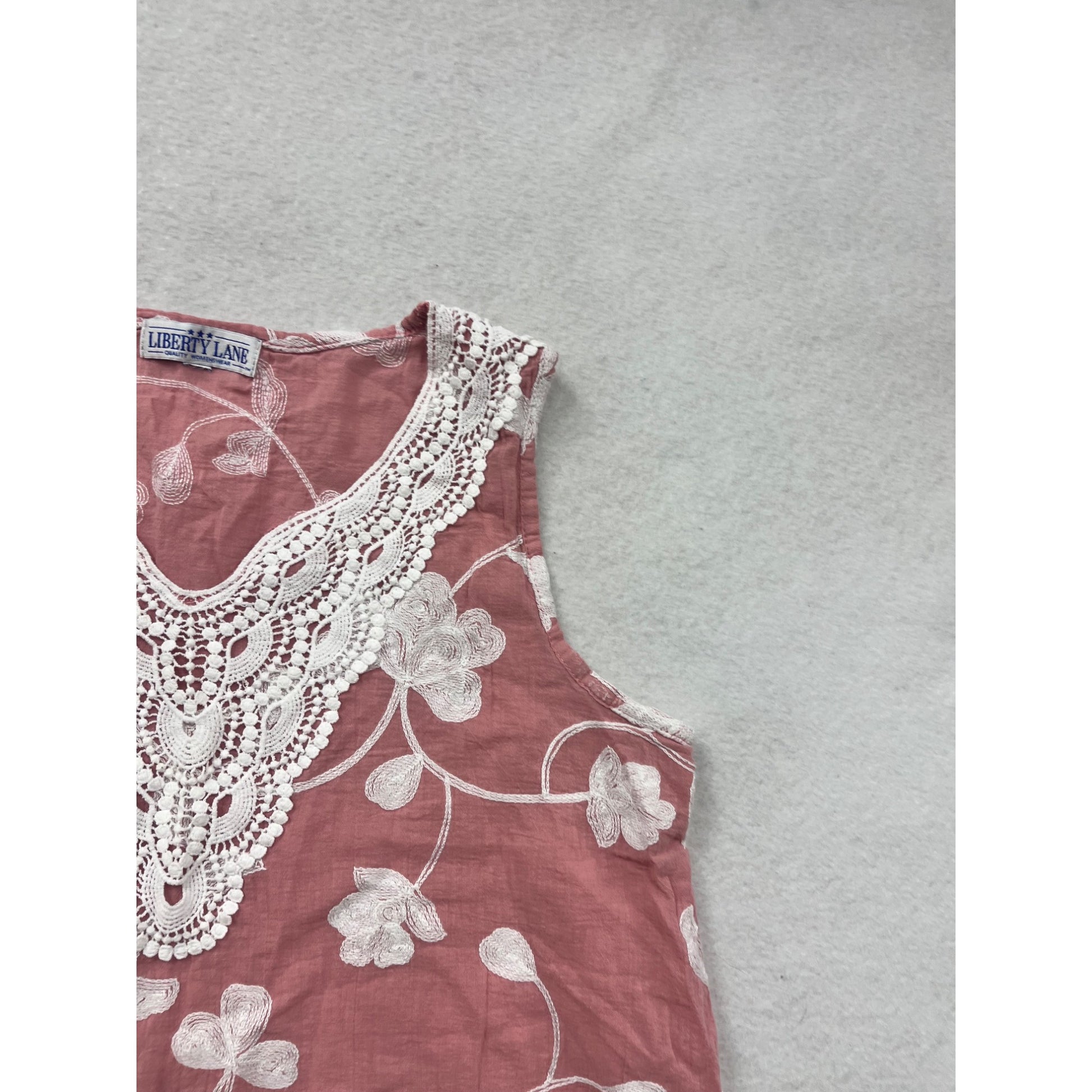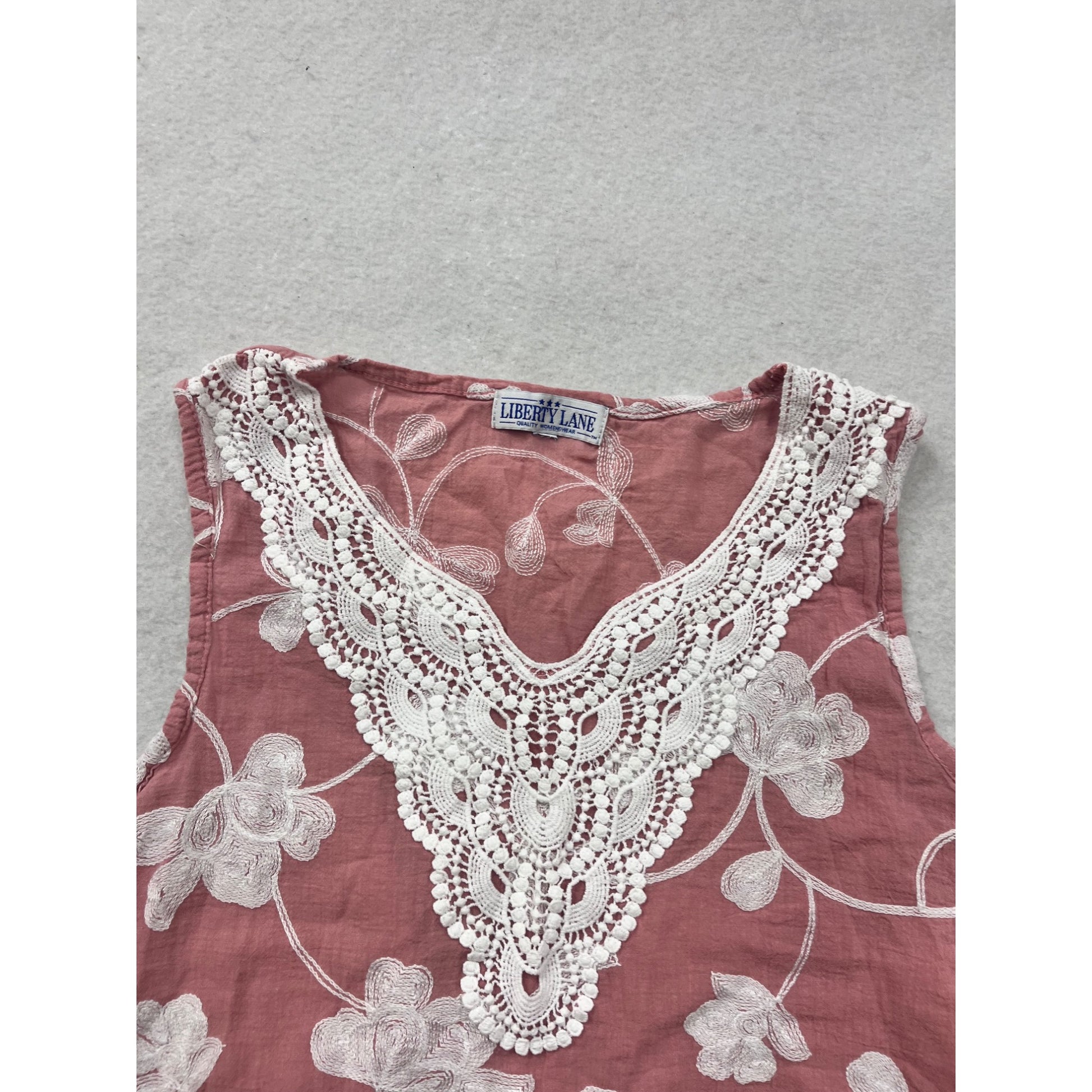 Liberty Lane M/L Pink Floral Embroidered Tank Top #8609