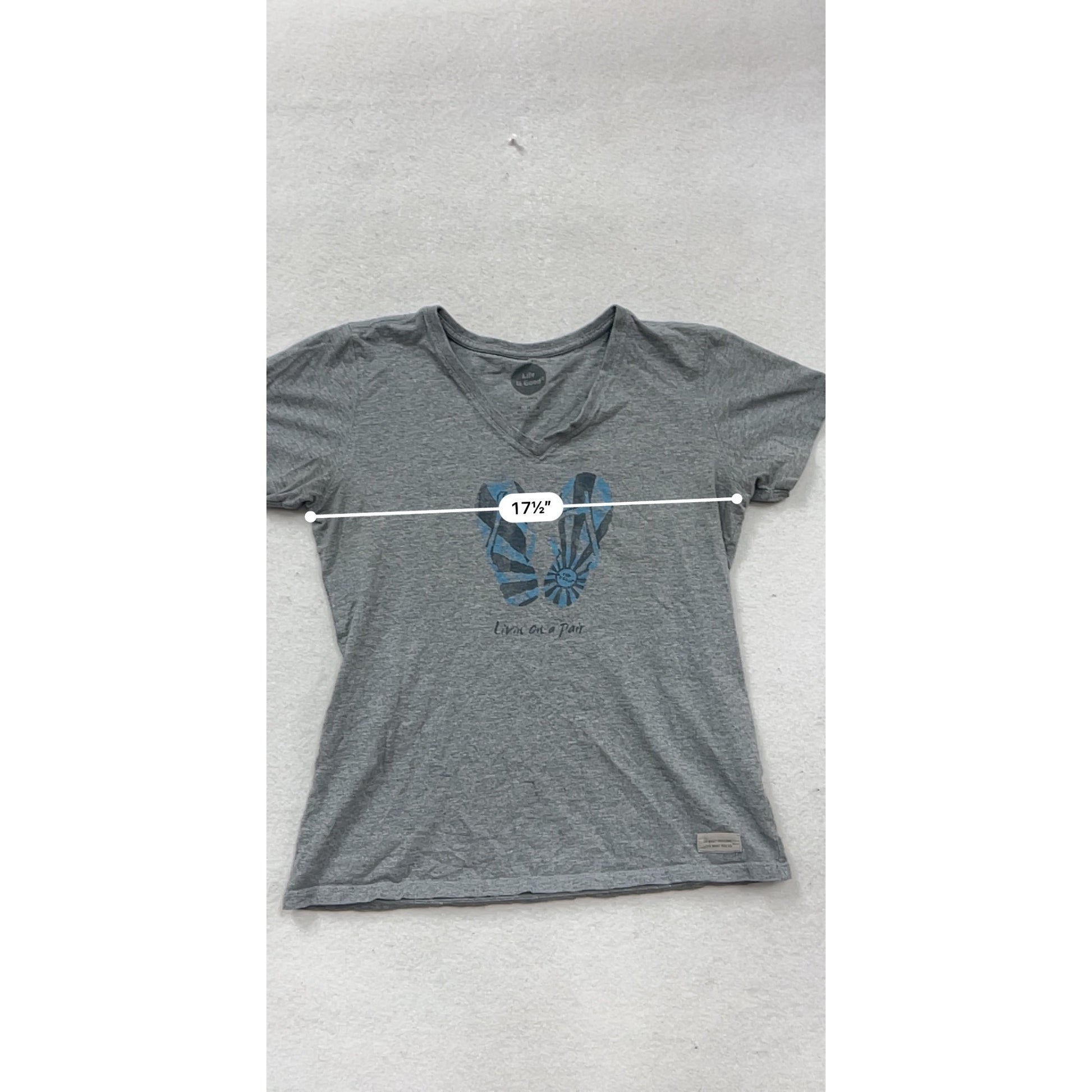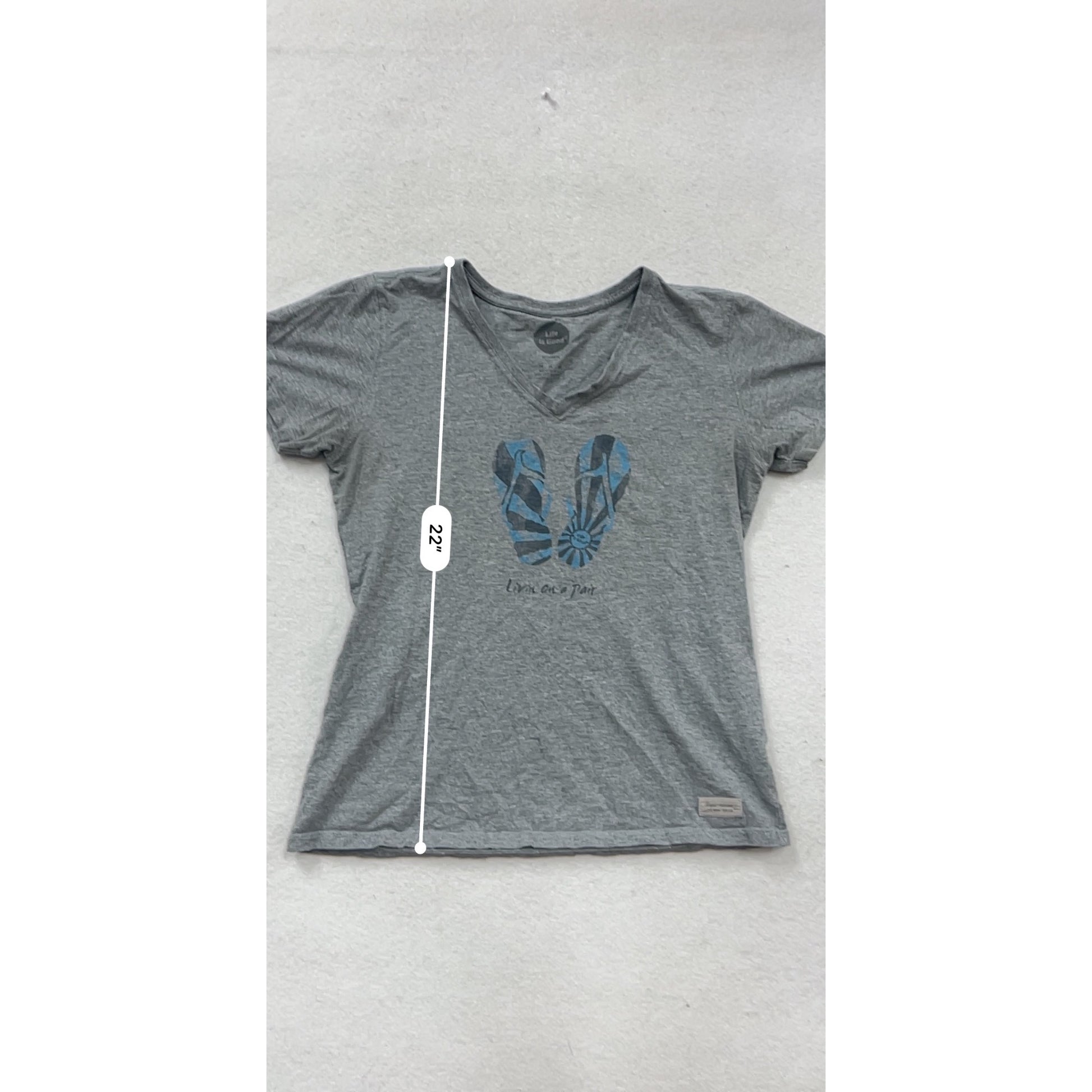 Life Is Good Gray T-Shirt M V-Neck Flip Flop Graphic #240A