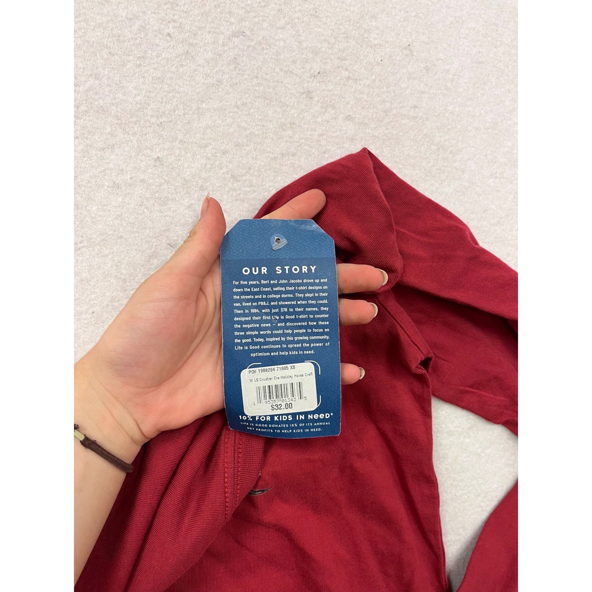 Life Is Good Long Sleeve Red T-Shirt With Horse & Snowflake Design #786A