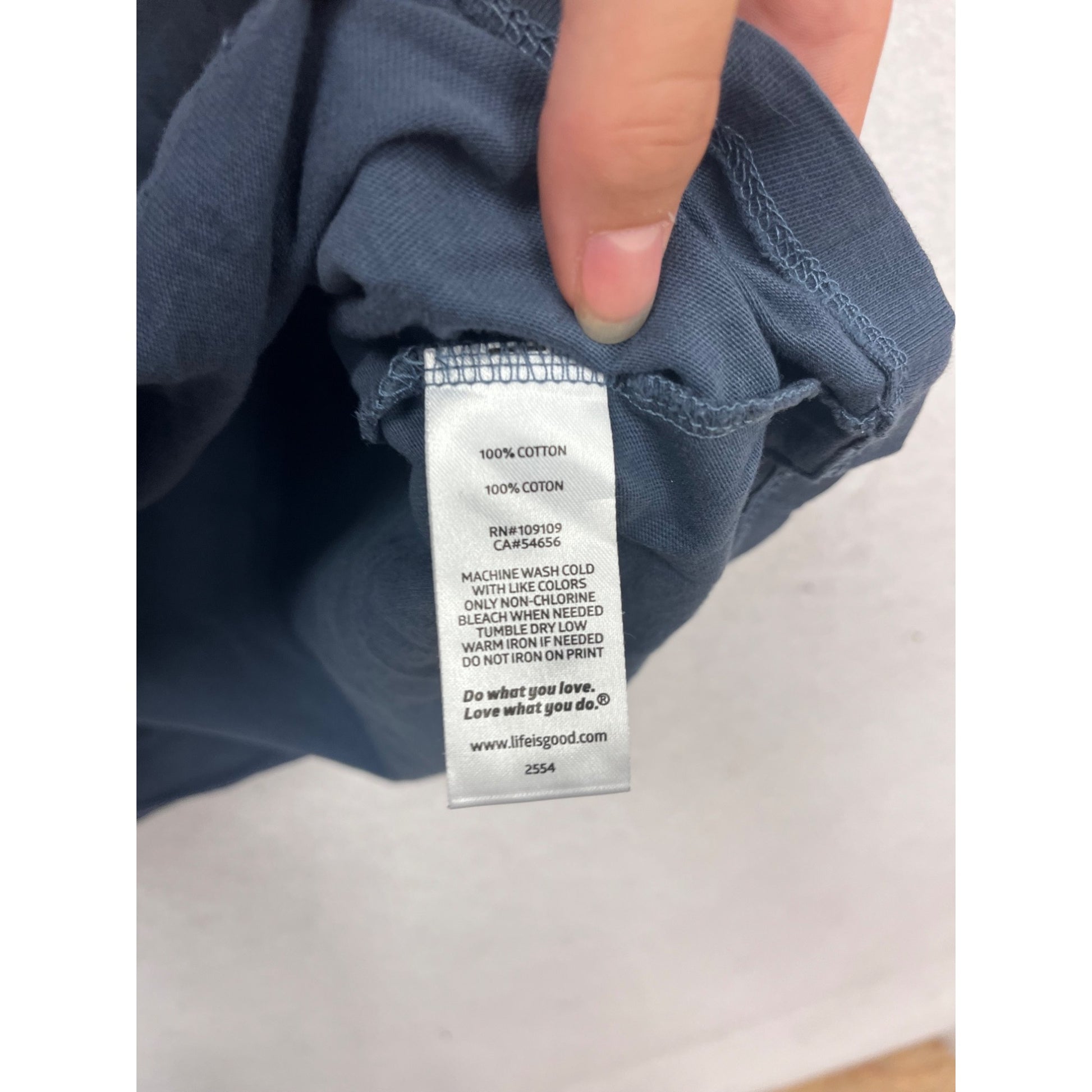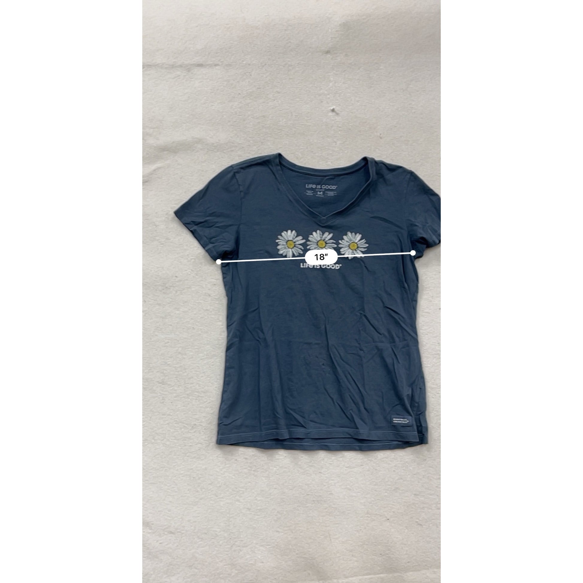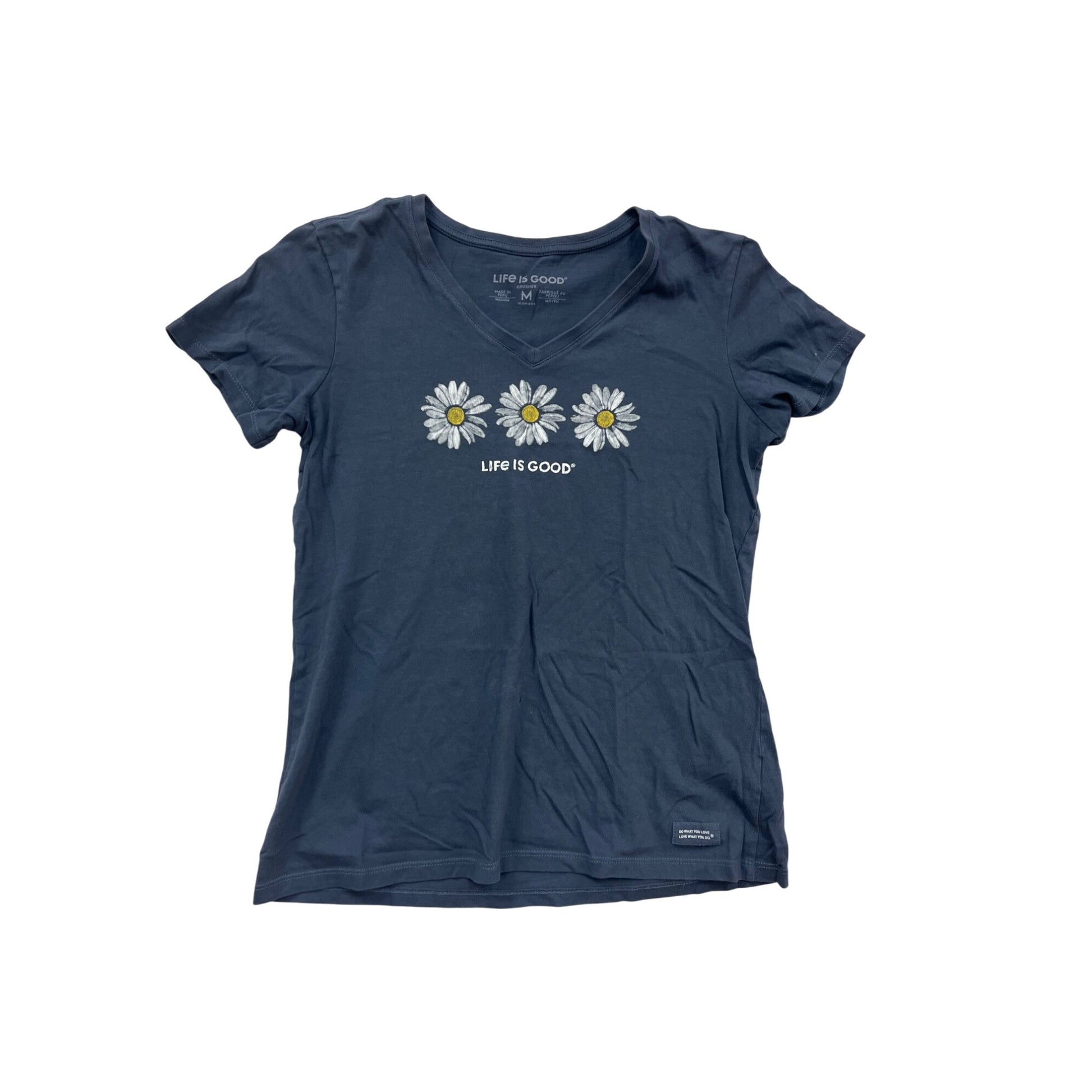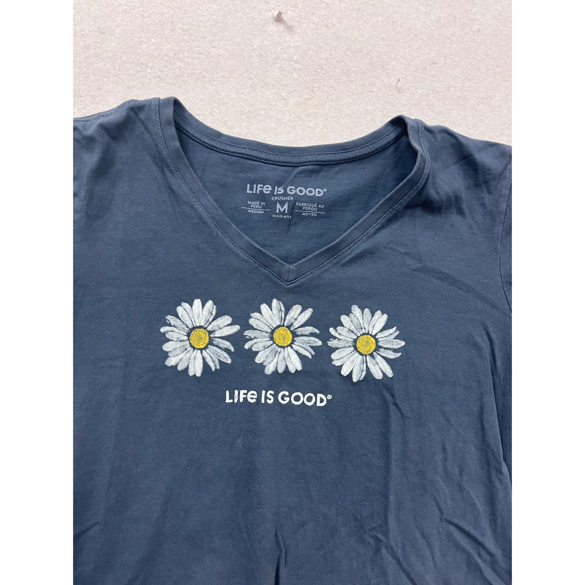 Life Is Good Medium Navy Blue V-Neck Crusher T-Shirt With Daisy Graphic #129A