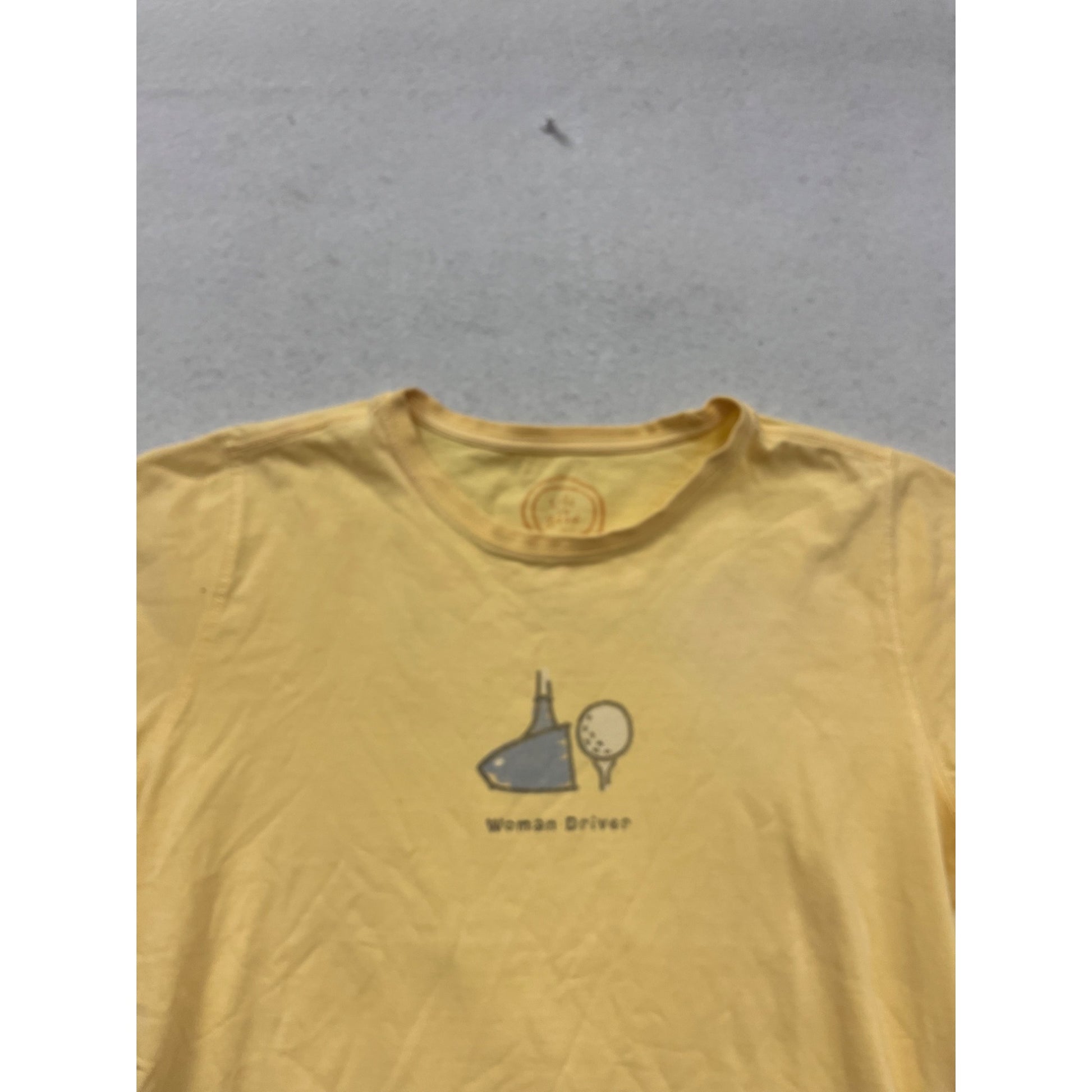 Life Is Good Yellow "Woman Driver" Graphic T-Shirt M #371A