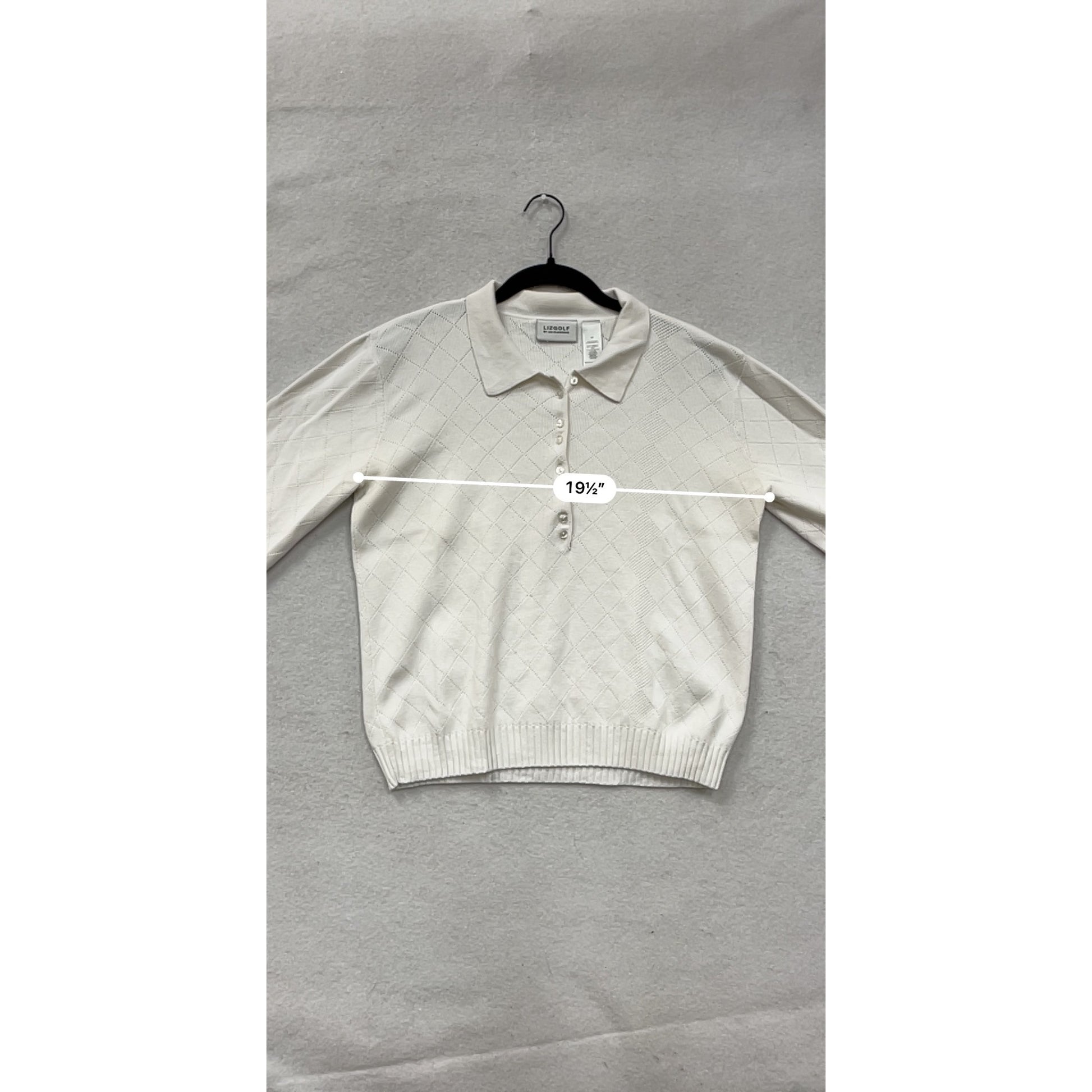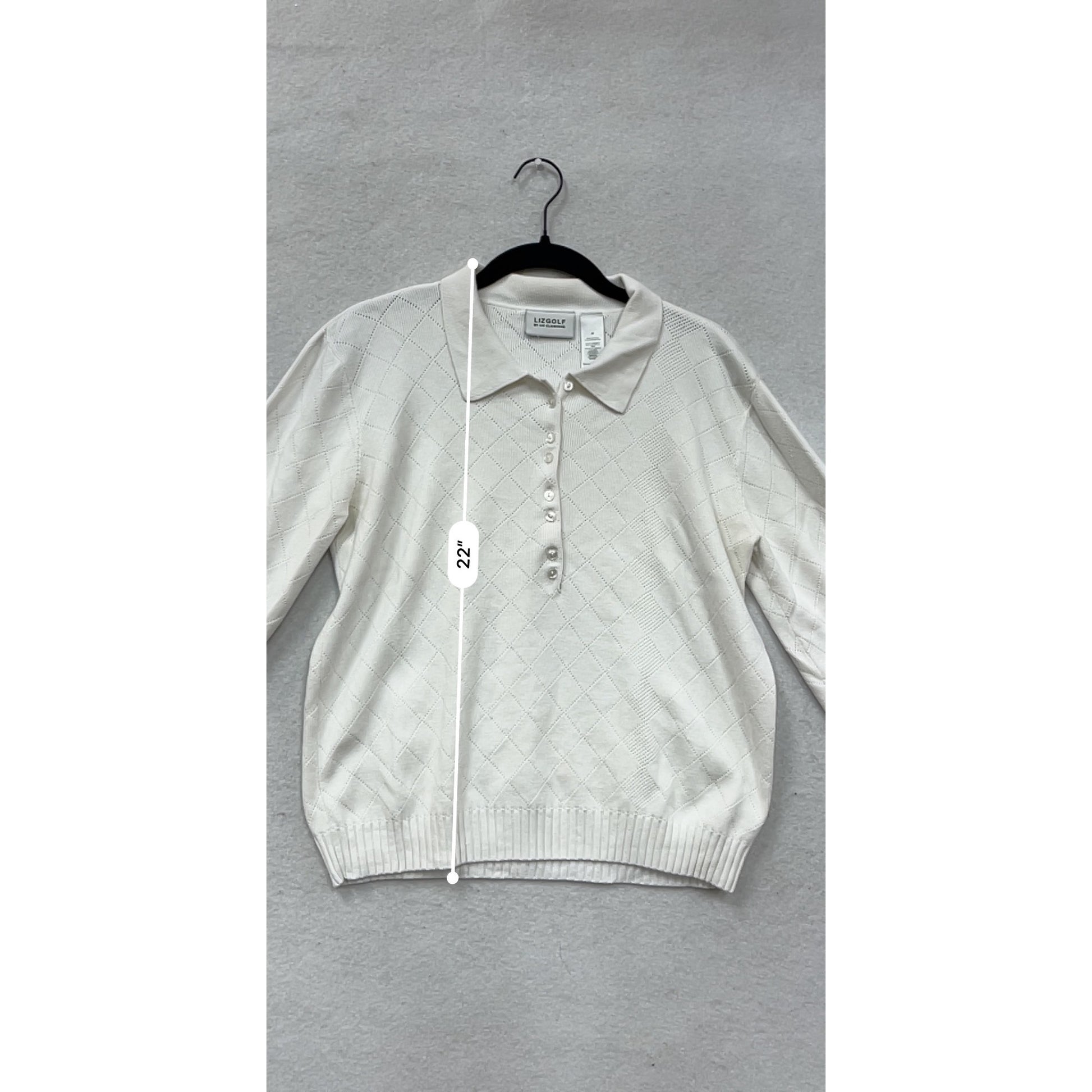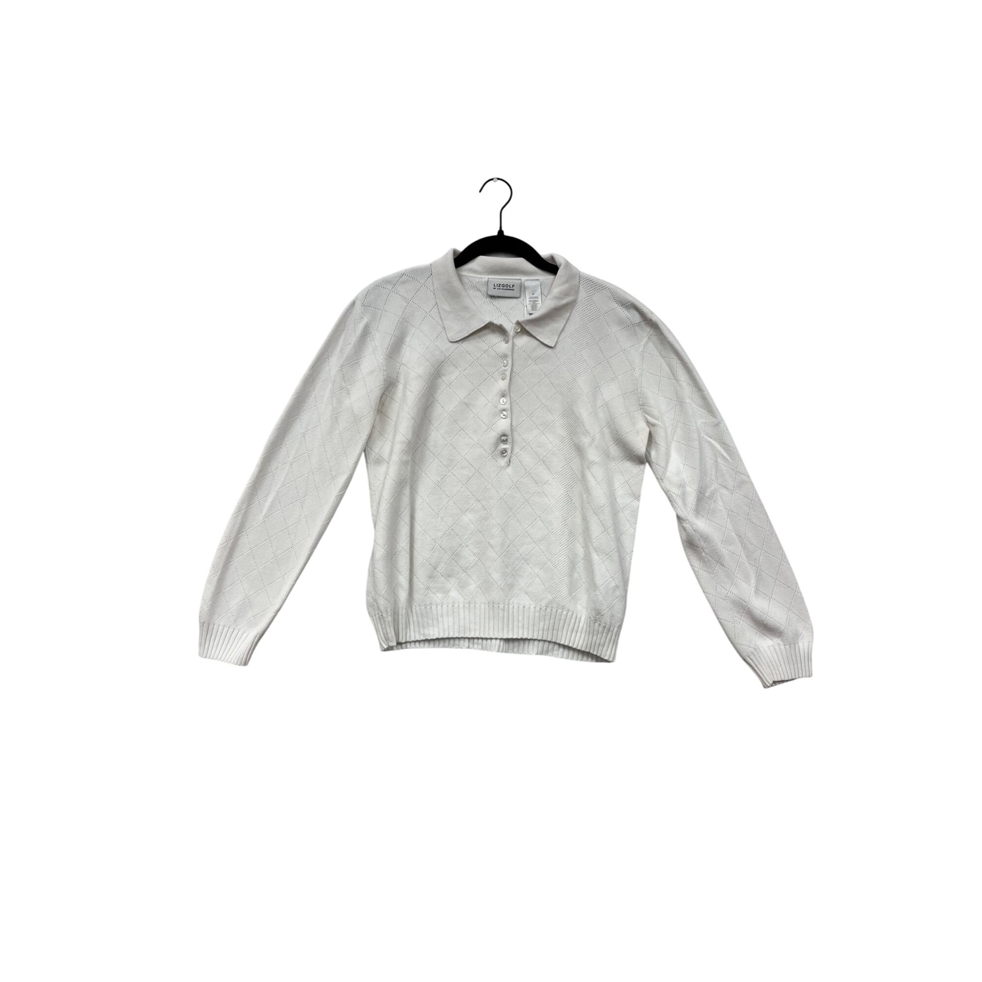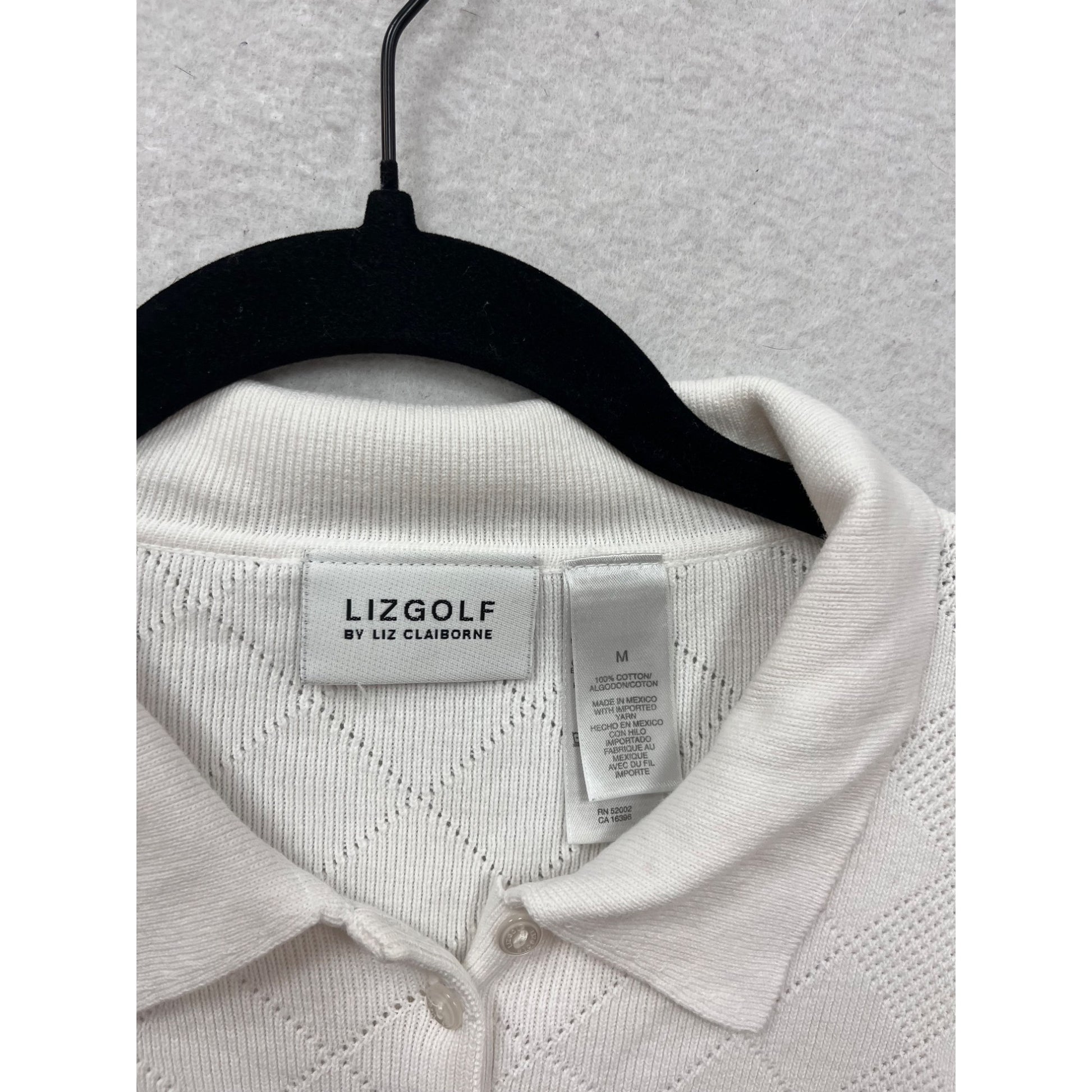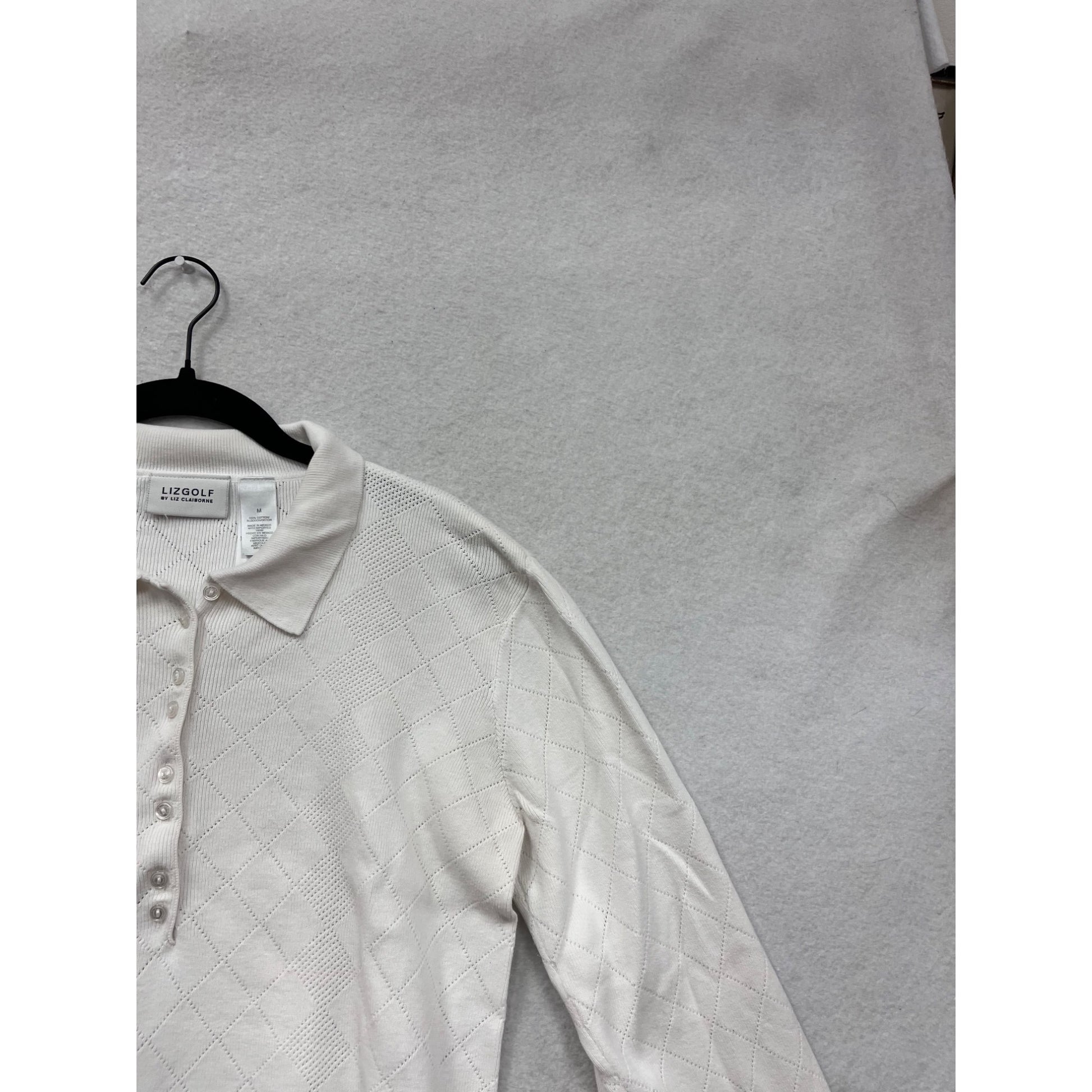 Lizgolf By Liz Claiborne White Diamond Knit Collared Sweater #8896