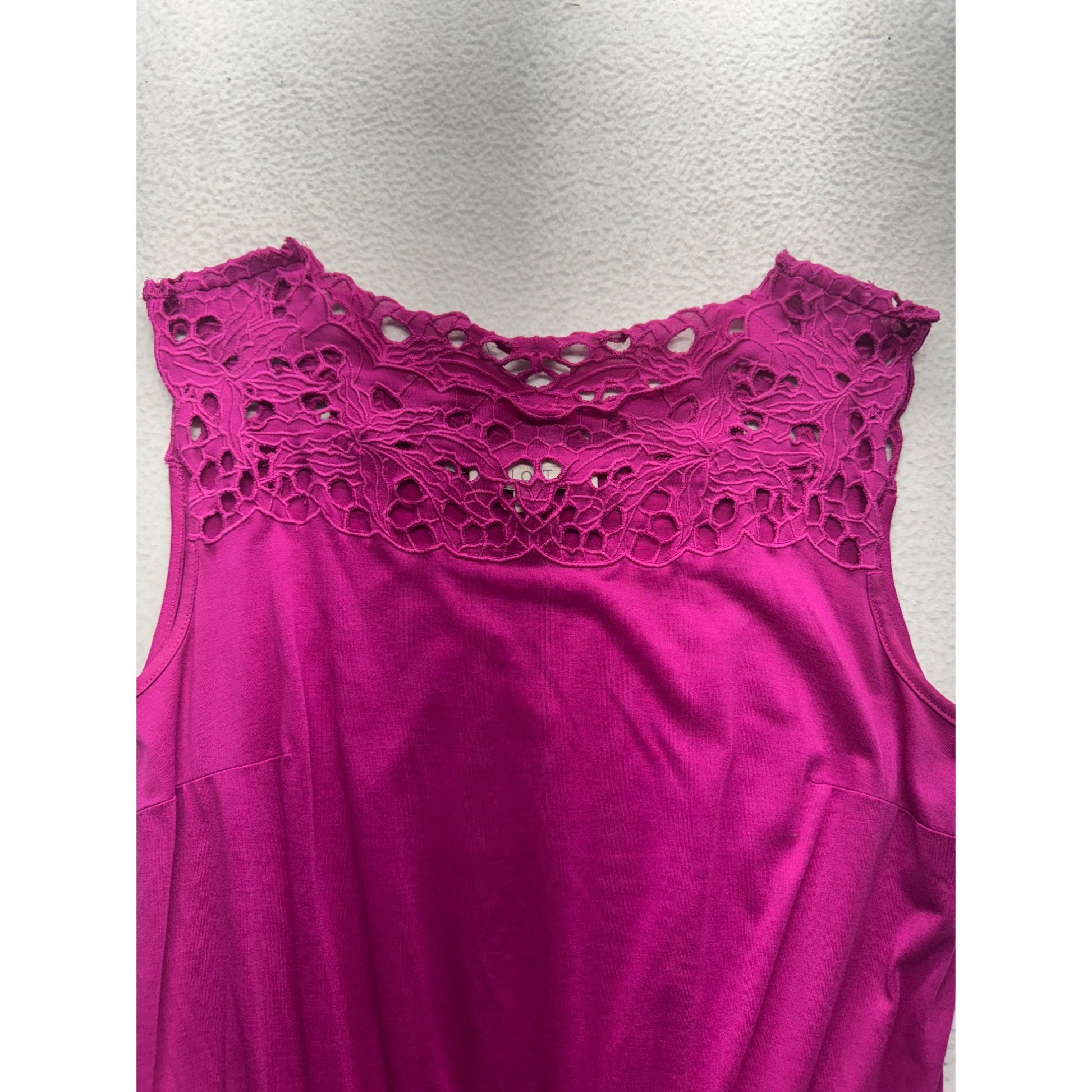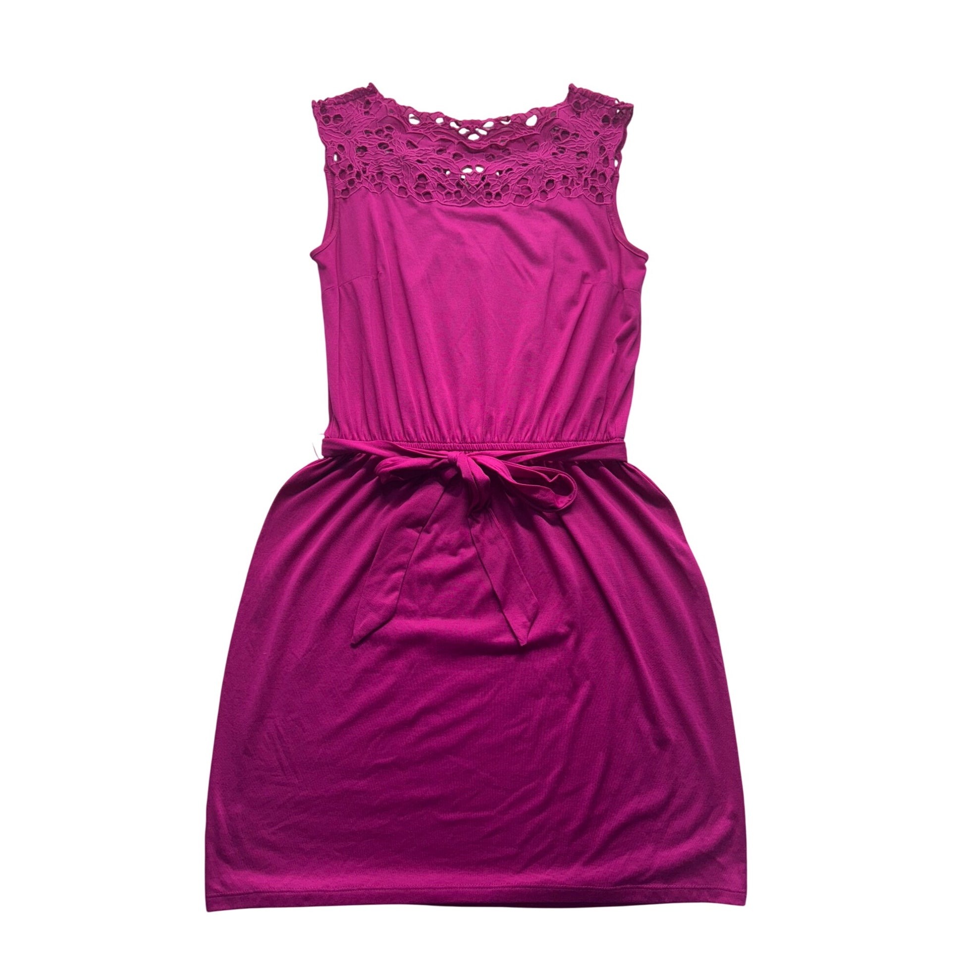 Loft Sleeveless Magenta Dress With Lace Detail & Belt #9140
