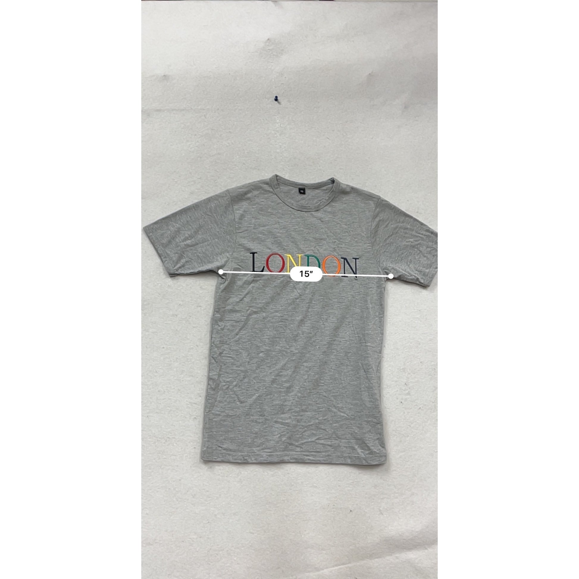 This T-shirt features a bold "LONDON" graphic in vibrant colors, crafted from a cotton-polyester blend for comfort and durability. Its classic gray hue pairs effortlessly with various outfits. Ideal for casual wear, it combines style and practicality in a versatile design.