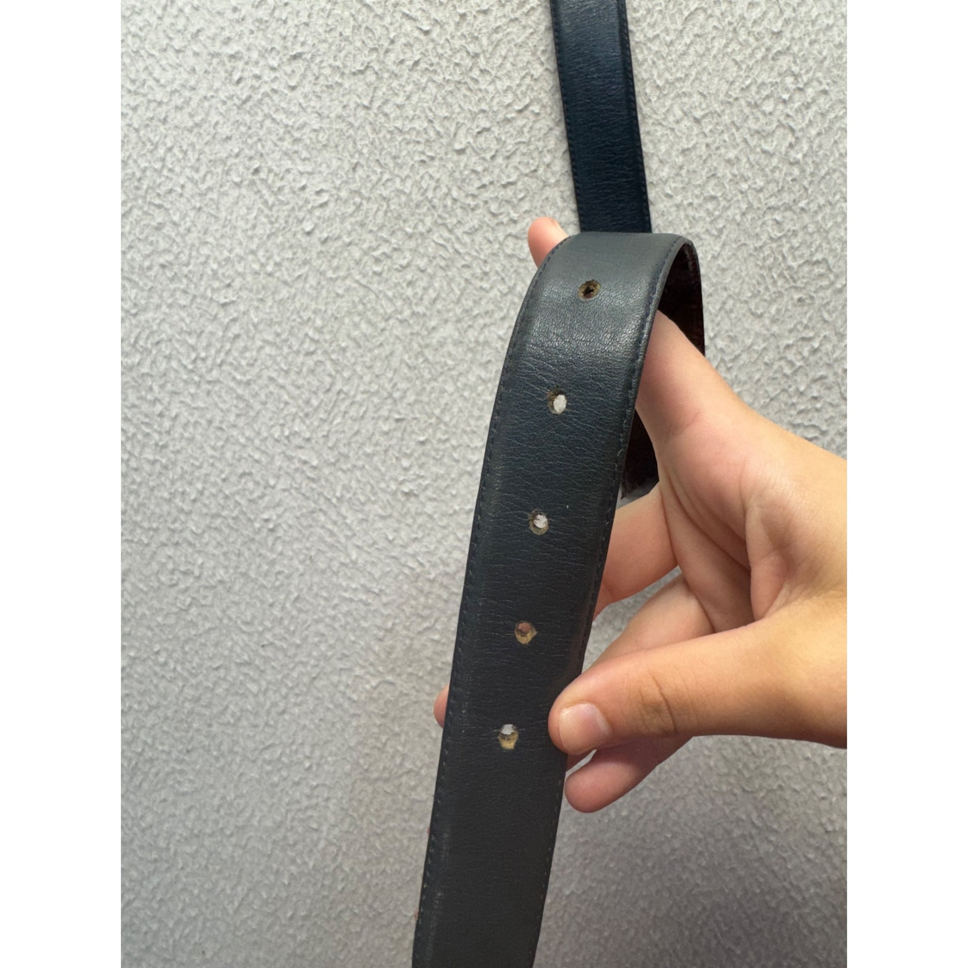 Minor wear on leather, adjustment holes intact.