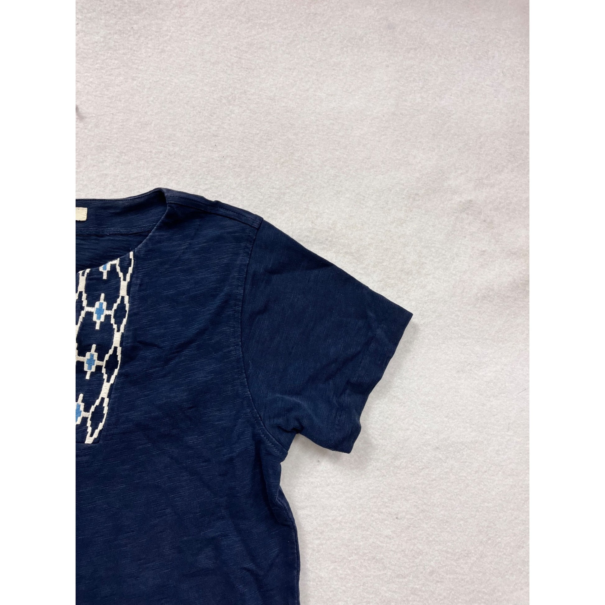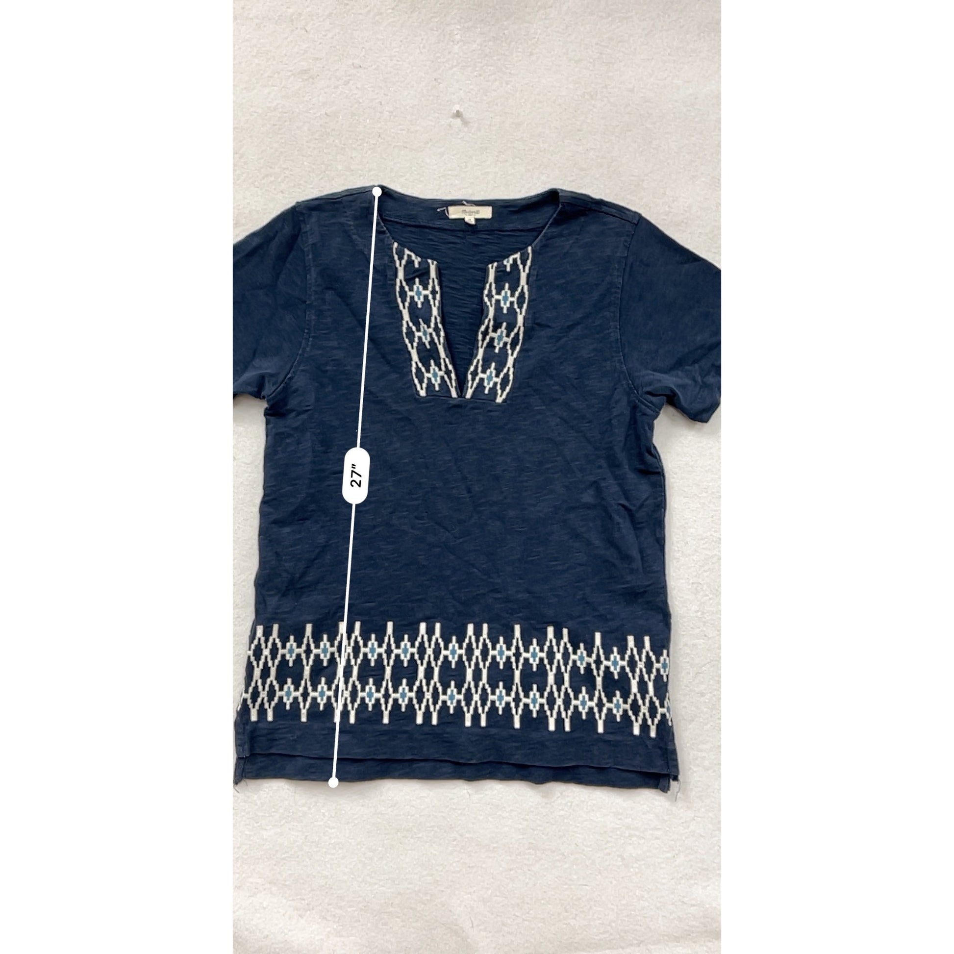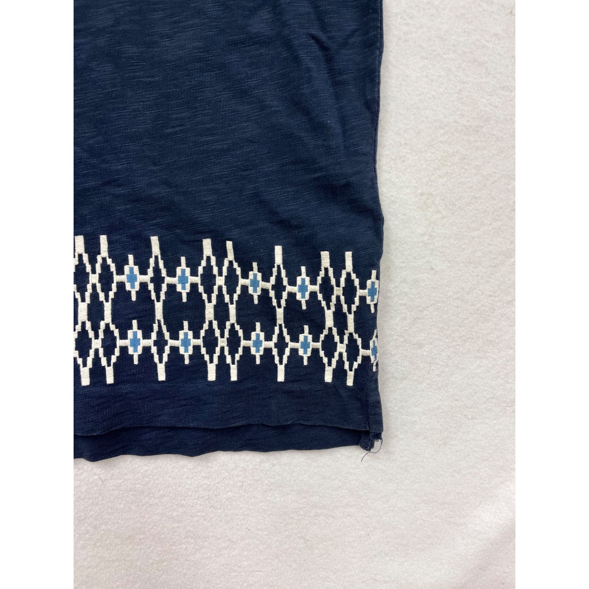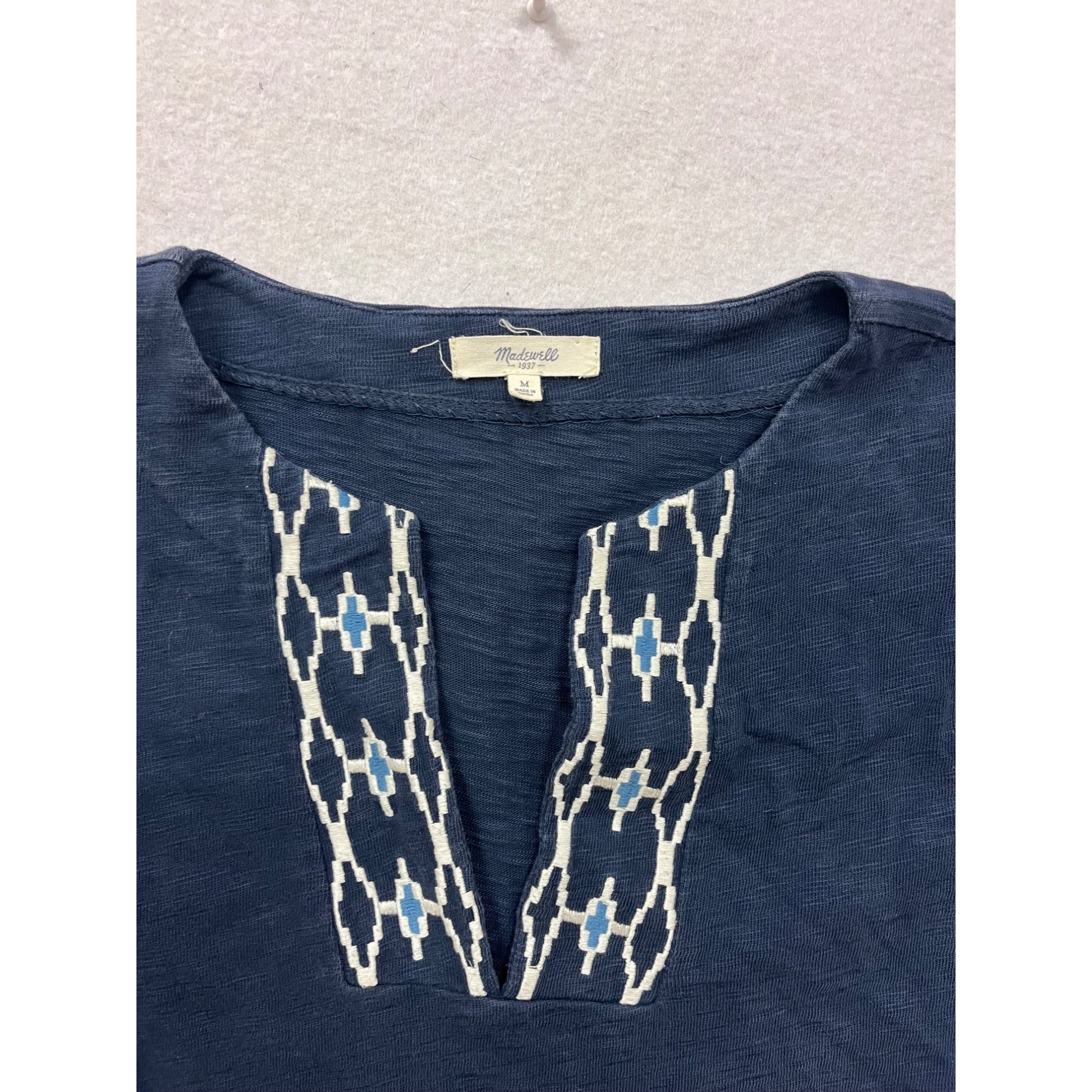 Madewell Womens Cotton Embroidered Navy Tunic Top Medium Short Sleeve Geometric Pattern #6931