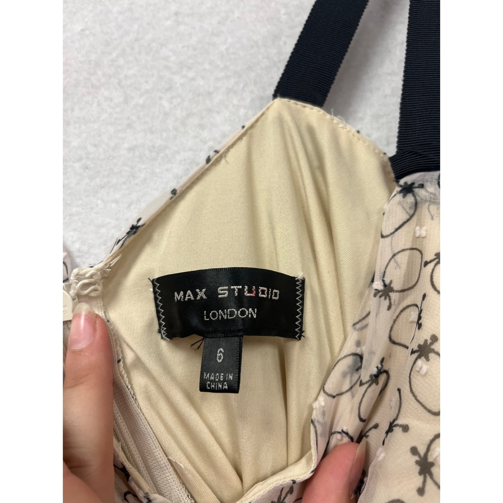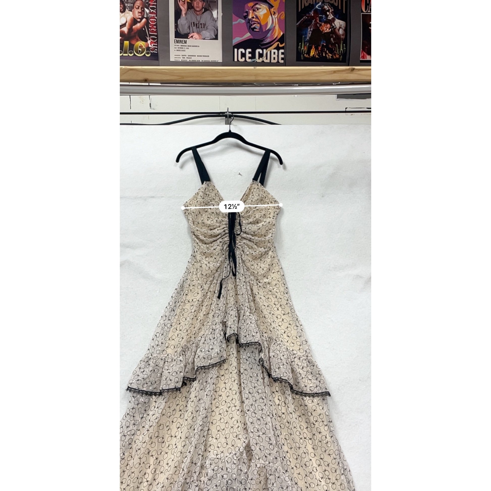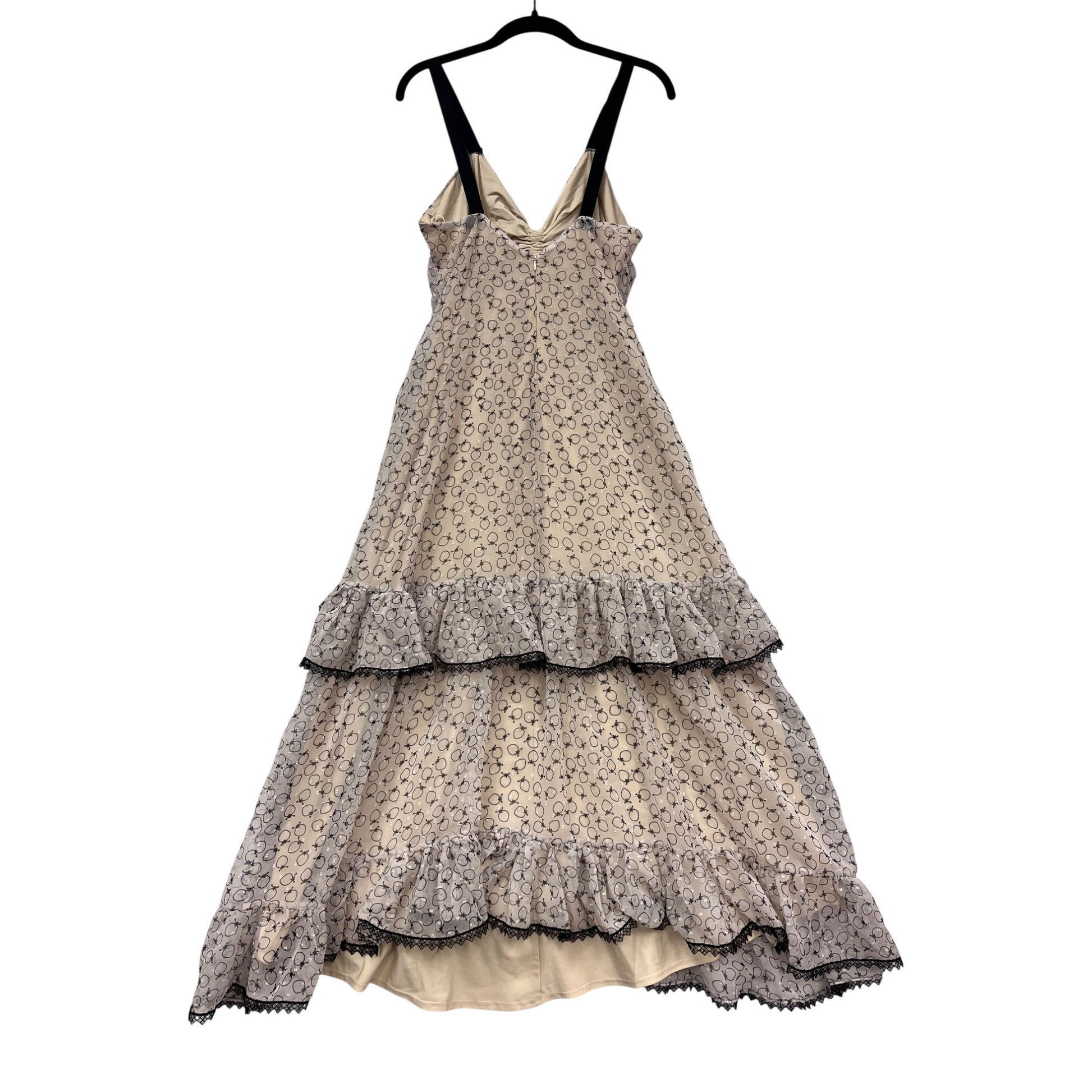 Max Studio Womens 6 Beige & Black Tiered Ruffle Maxi Dress With Adjustable Straps #107A