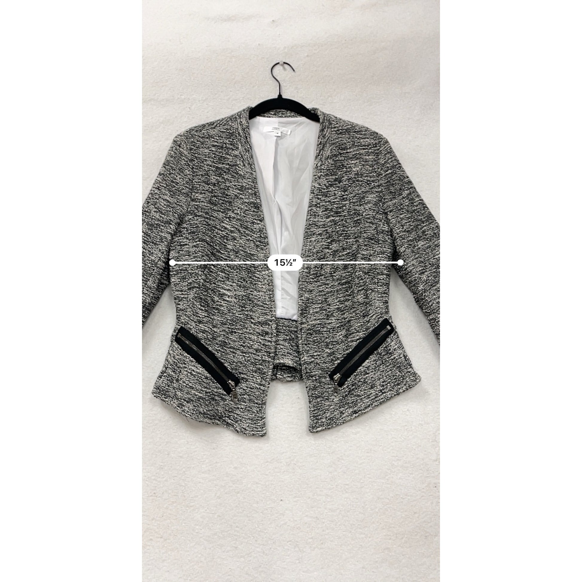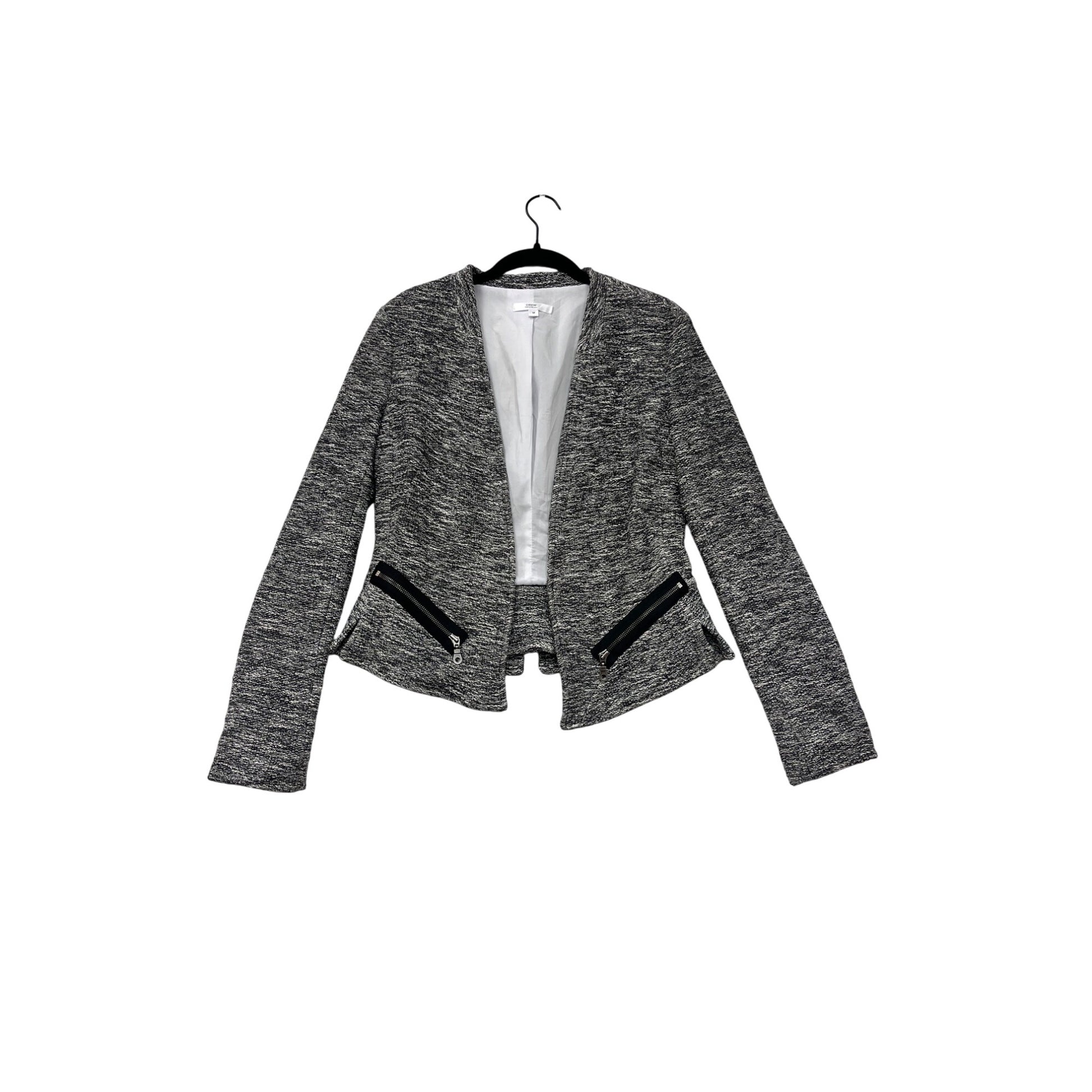 This Drew blazer combines a soft texture with professional functionality. The open-front design and zippered pockets offer modern elegance and practical utility.