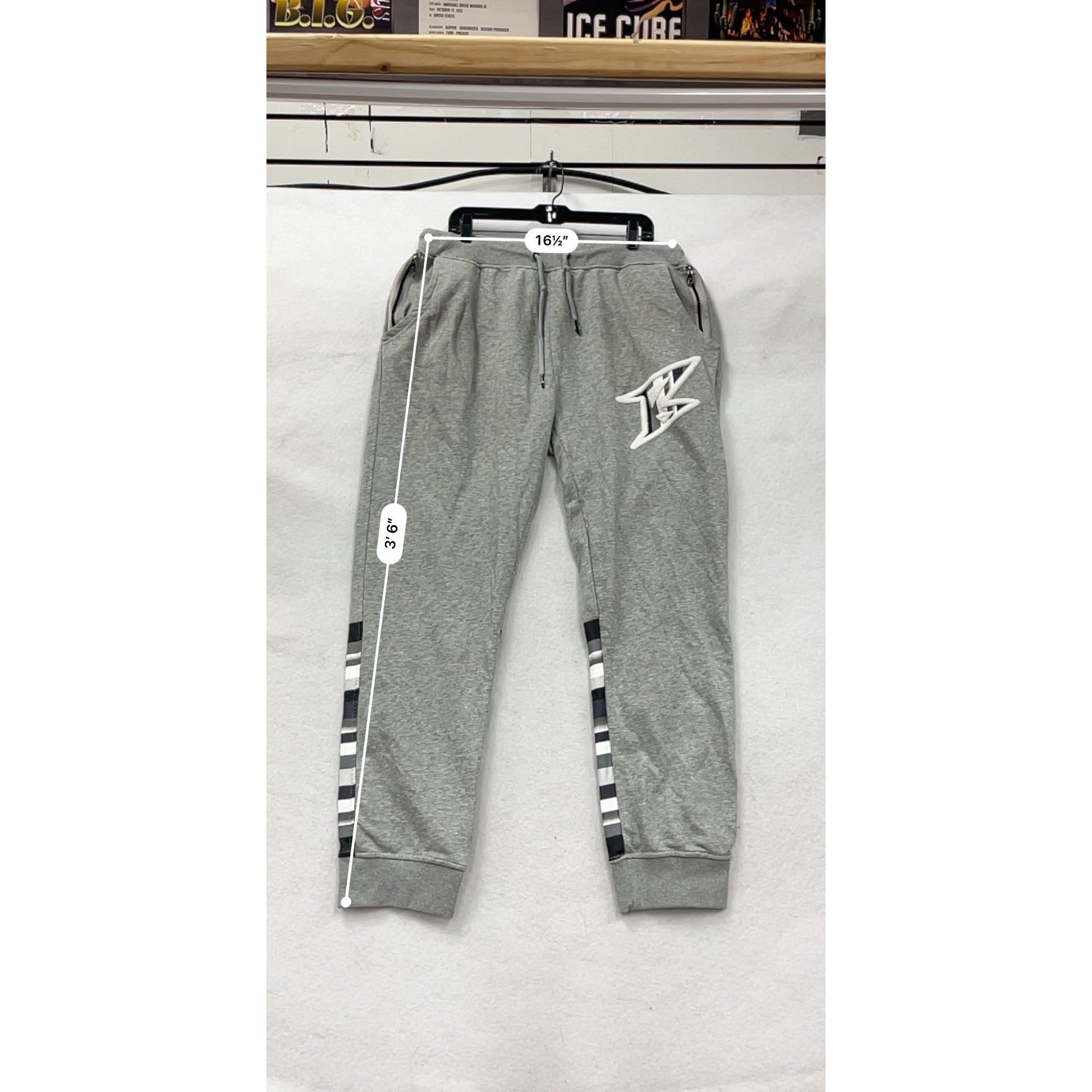 Mens 4XL Ron Bass Gray Joggers With Striped Detail Logo #8805