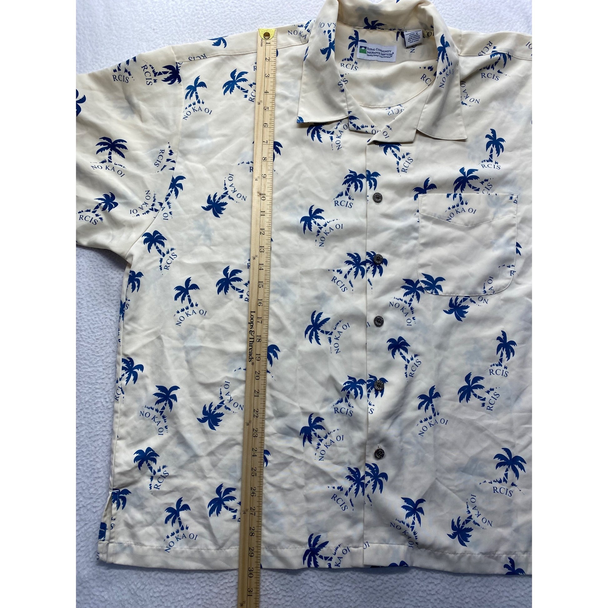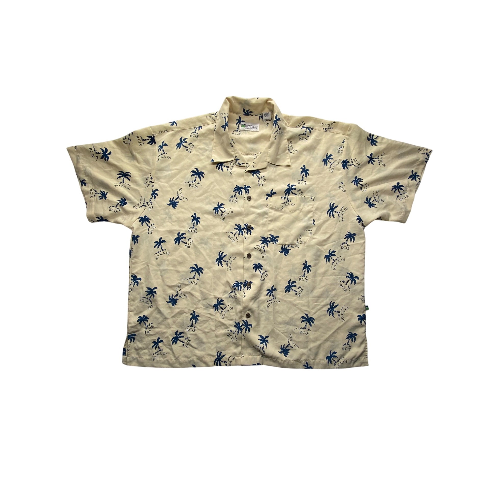 Mens Beige Hawaiian Shirt 3XL By Rural Community Insurance Services Polyester Palm Tree Print #7093