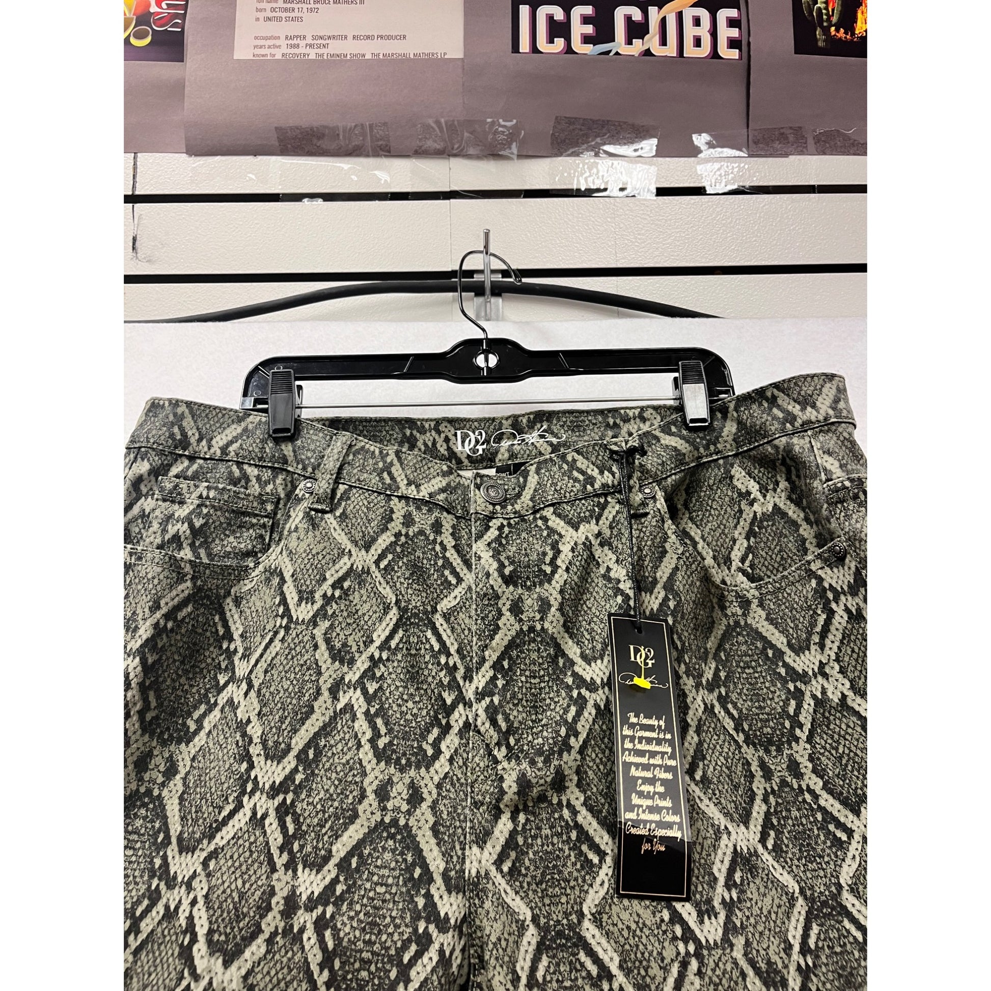 These D2 snake print pants are crafted from a cotton, polyester, and spandex blend, offering durability and comfort. The unique pattern adds a stylish touch suitable for both casual and semi-formal settings. With tags still intact, these pants are a fresh addition to any wardrobe.