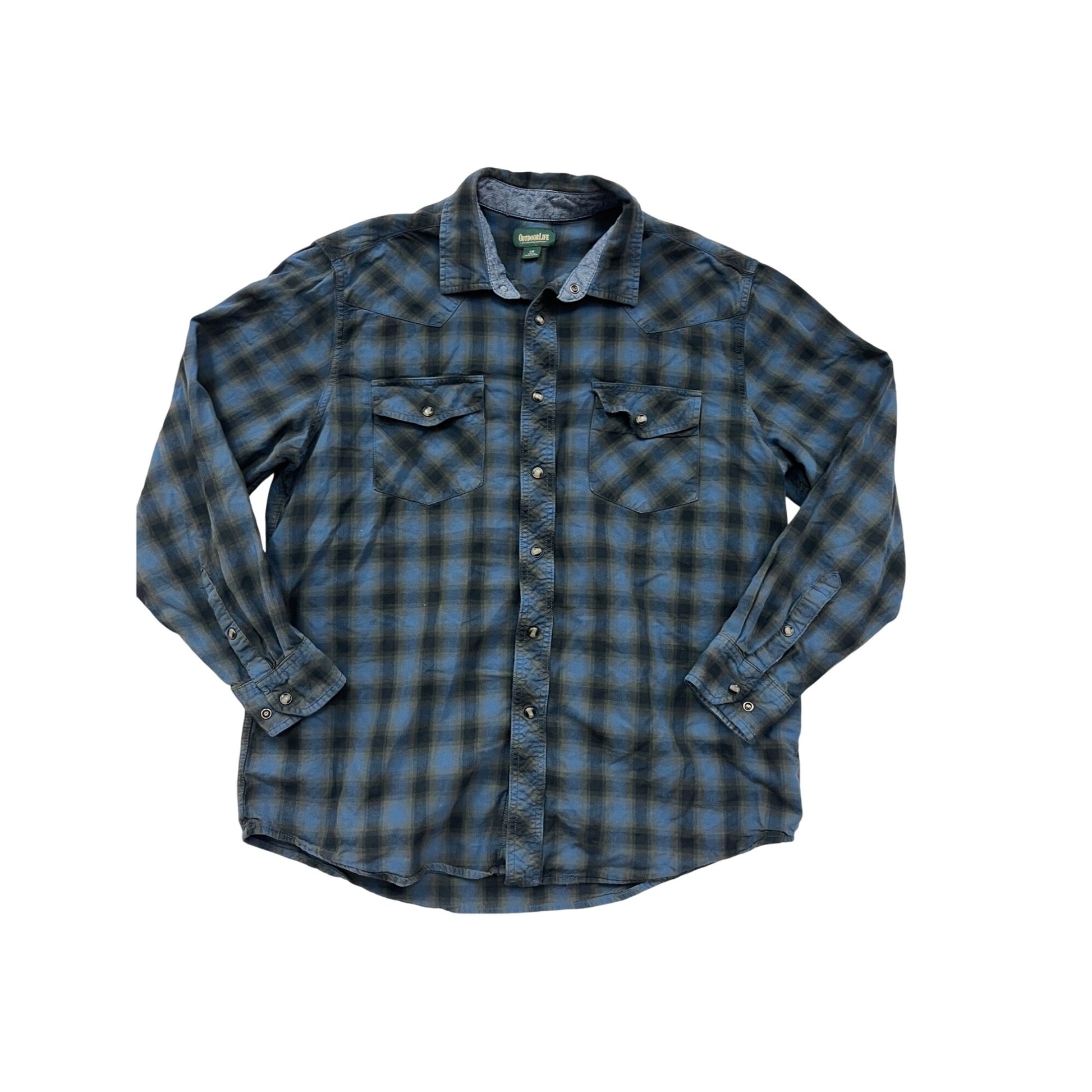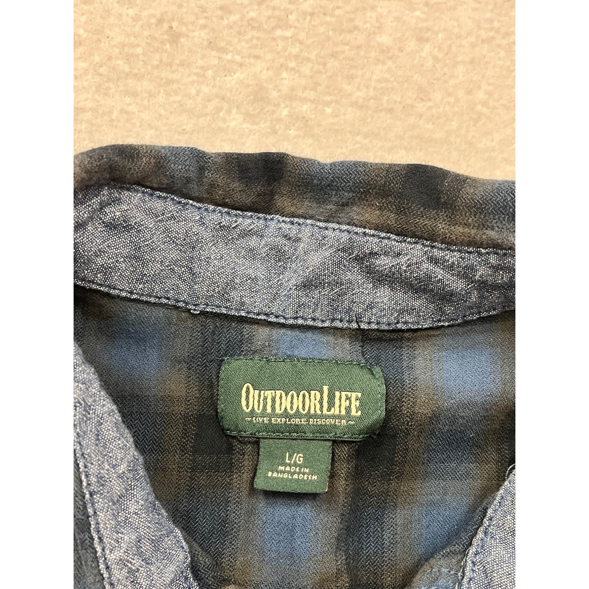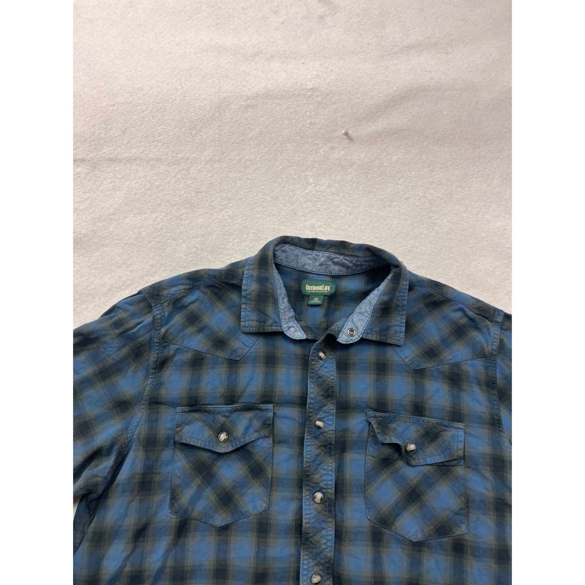 Mens Outdoor Life Blue & Black Plaid Button-Up Long Sleeve Shirt L #8914