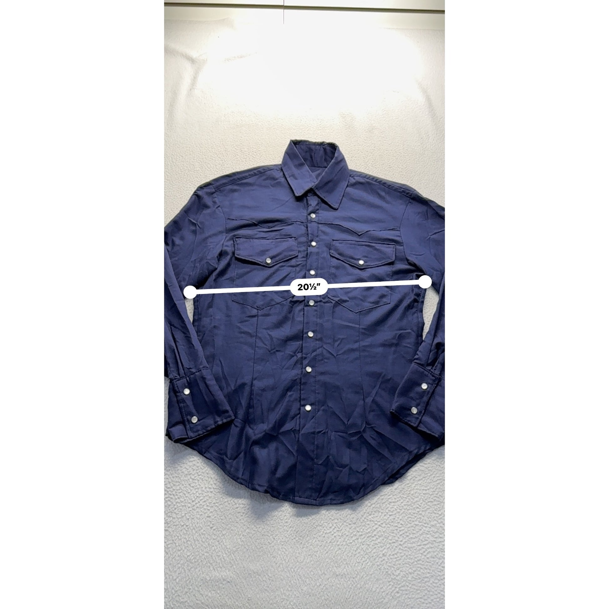 Mens Western Dark Blue Snap Button Long Sleeve Shirt #7981