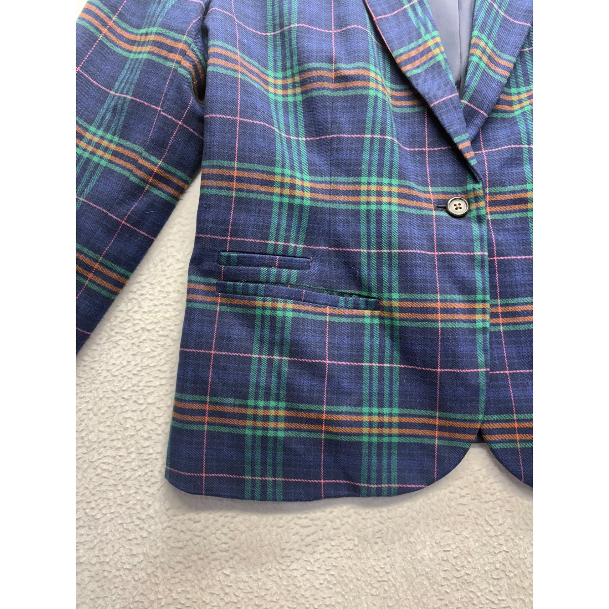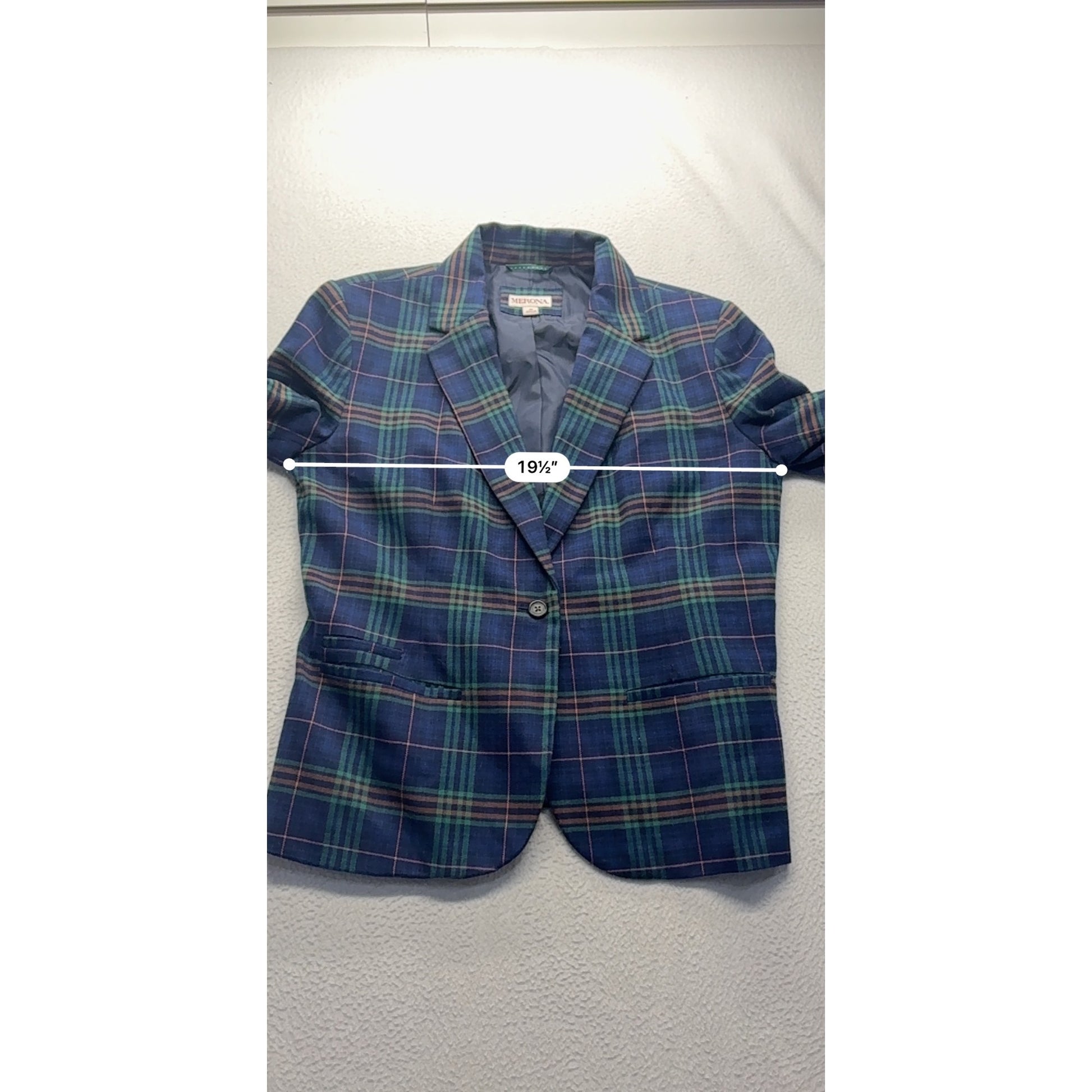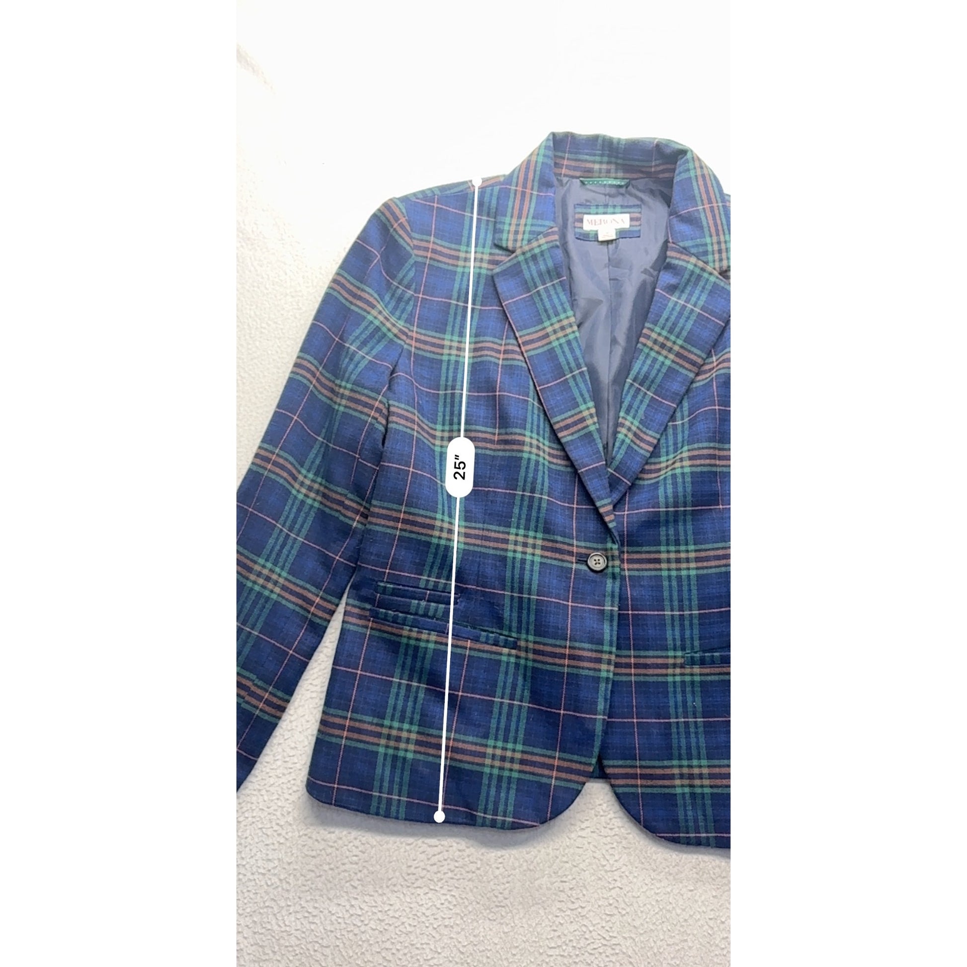Merona Womens Plaid Blazer Size 12 Blue/Green Checkered Pattern #7724
