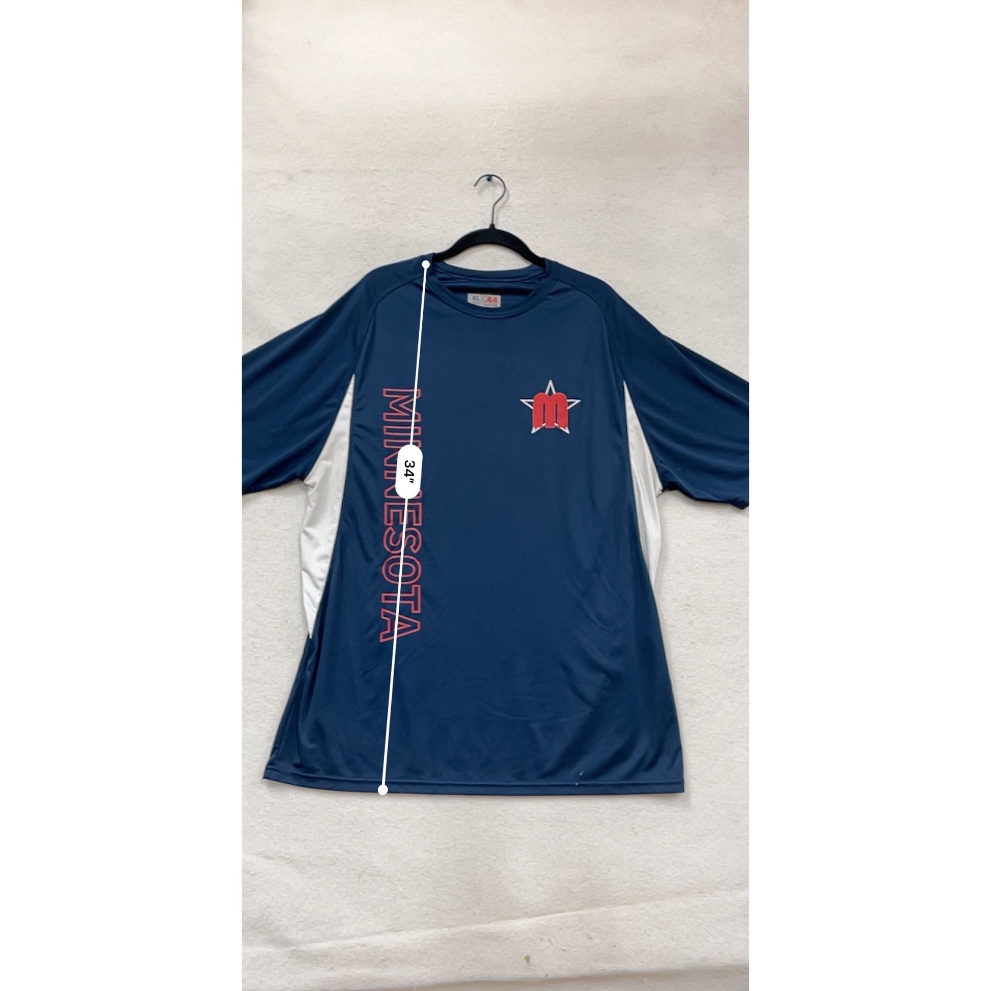 This Minnesota-themed athletic shirt in a striking blue and white color scheme is crafted by A4. Designed for comfort and performance, it features a relaxed fit and moisture-wicking fabric, making it ideal for sports or casual wear. The bold front graphic adds a touch of team spirit.