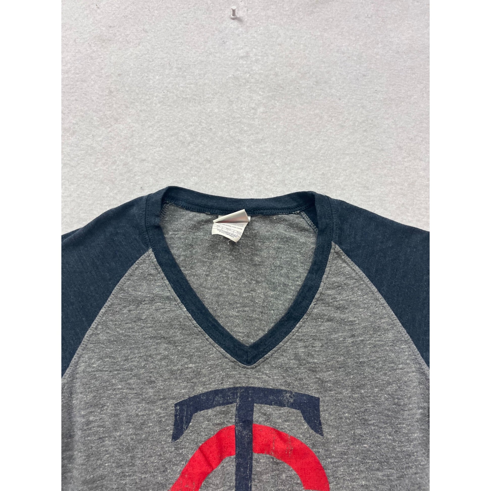 Show your Minnesota Twins pride with this sporty women's V-neck T-shirt. Featuring a bold team logo, this tee is crafted from a soft polyester and cotton blend. The raglan sleeves add an athletic touch, ensuring comfort whether you're cheering from the stands or out and about.