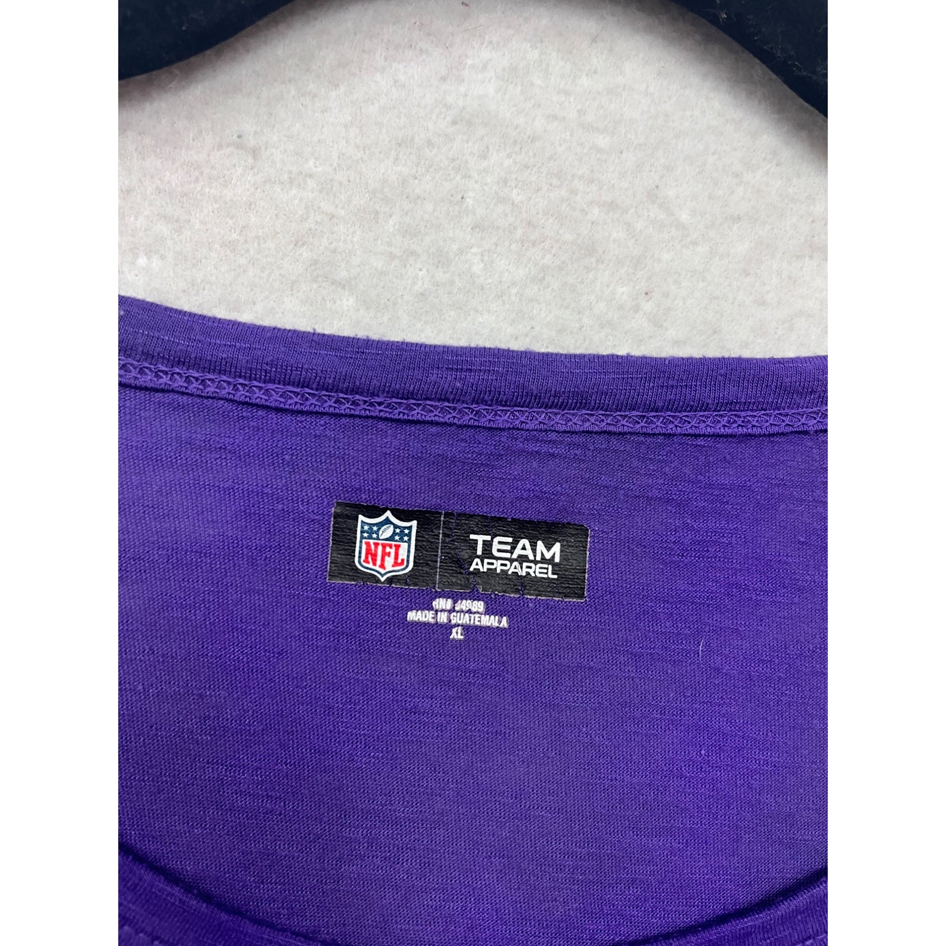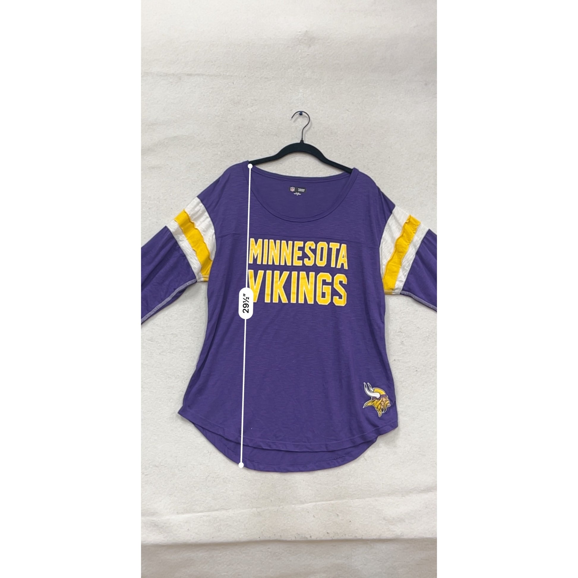 This women's Minnesota Vikings 3/4 sleeve t-shirt combines comfort and team spirit. Made from a polyester-rayon blend, it offers a soft feel and relaxed fit. The bold team logo and colors make it a perfect choice for showing support.