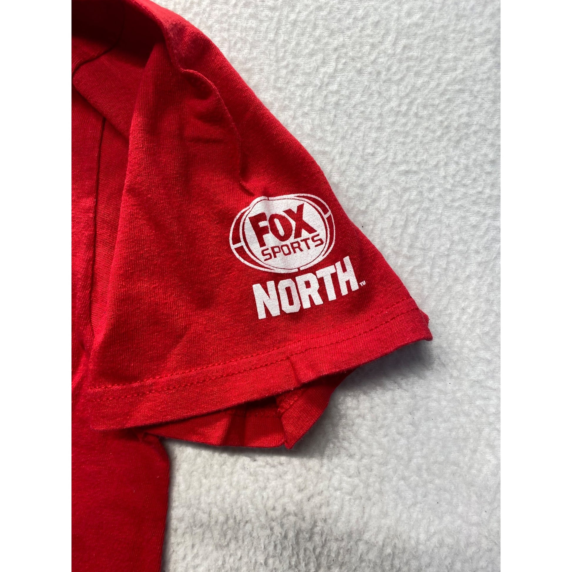Show your support for the Minnesota Wild with this comfortable red t-shirt. Featuring the team's logo and a Fox Sports North emblem on the sleeve, this tee is an excellent choice for game days or casual outings. Made from 100% cotton, it ensures a soft feel and a relaxed fit.