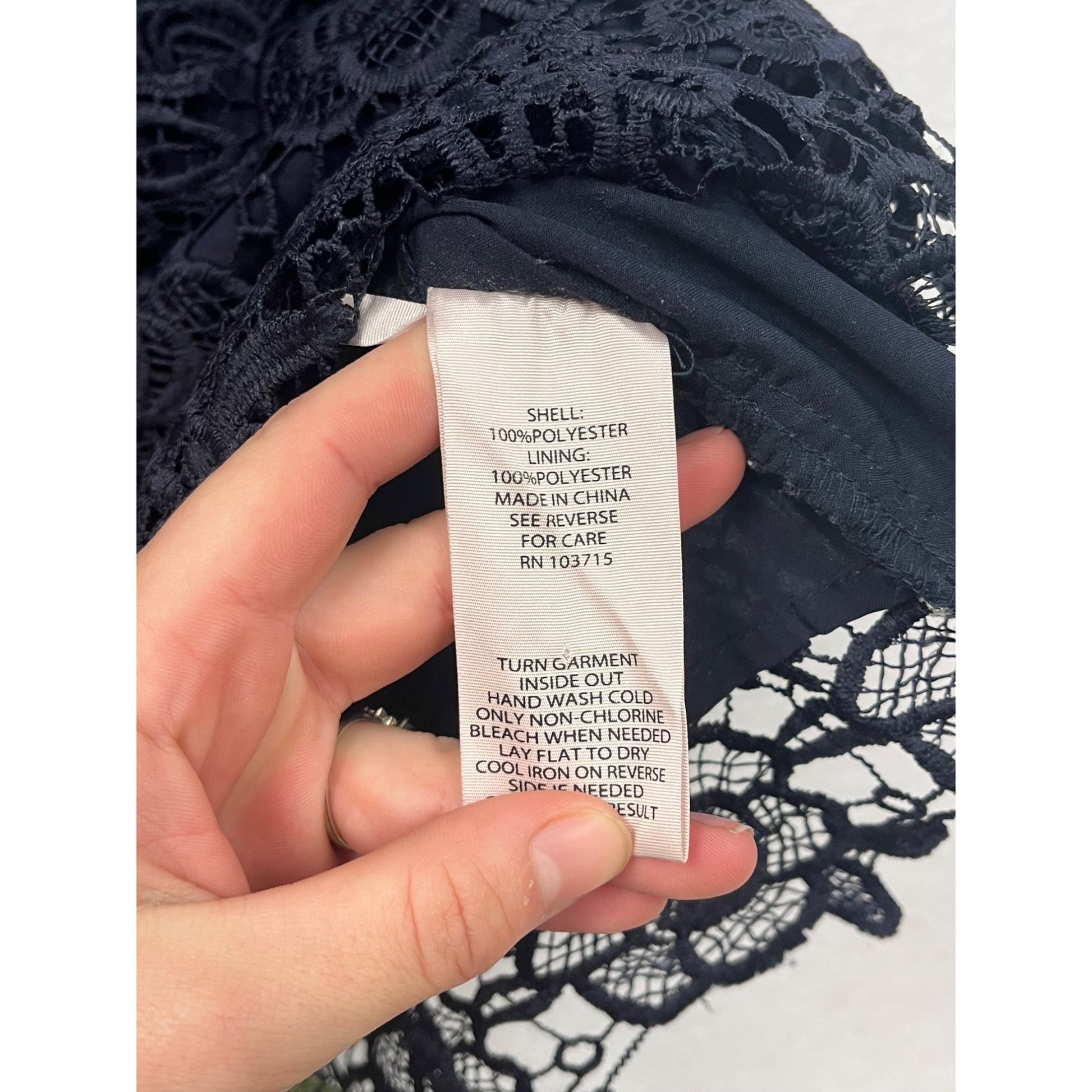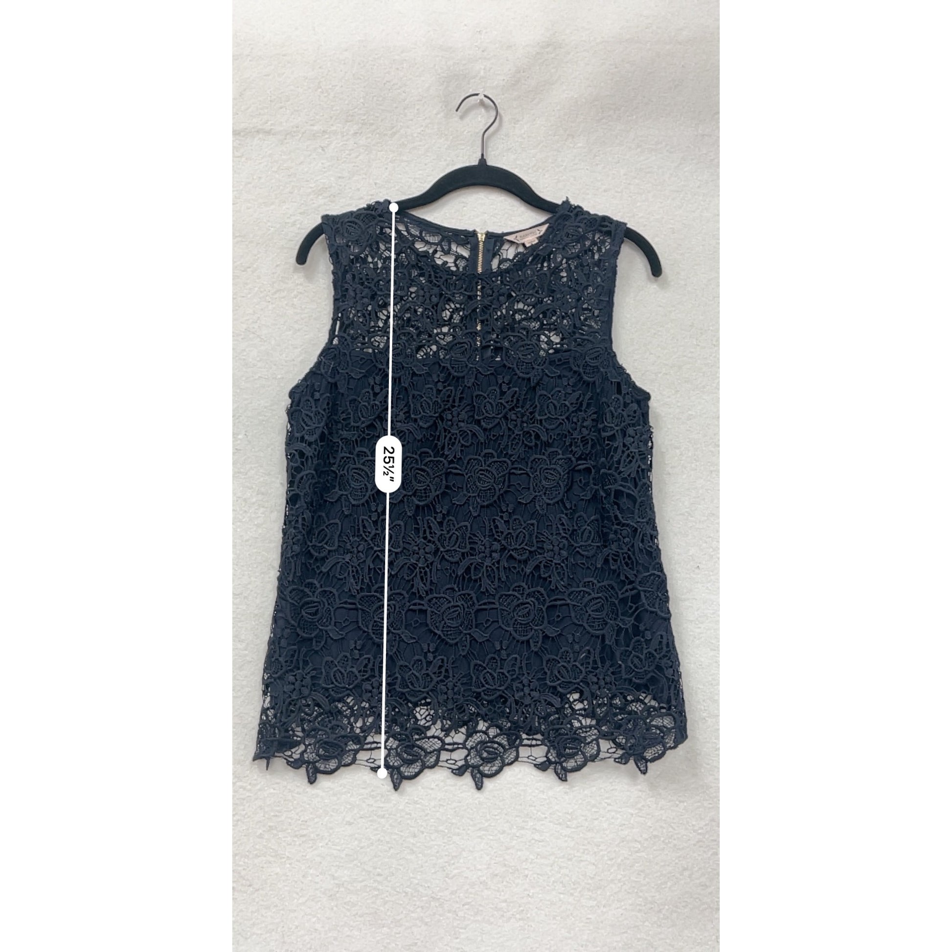 Nanette Lepore Womens Navy Floral Lace Sleeveless Top With Back Zipper Small #6625