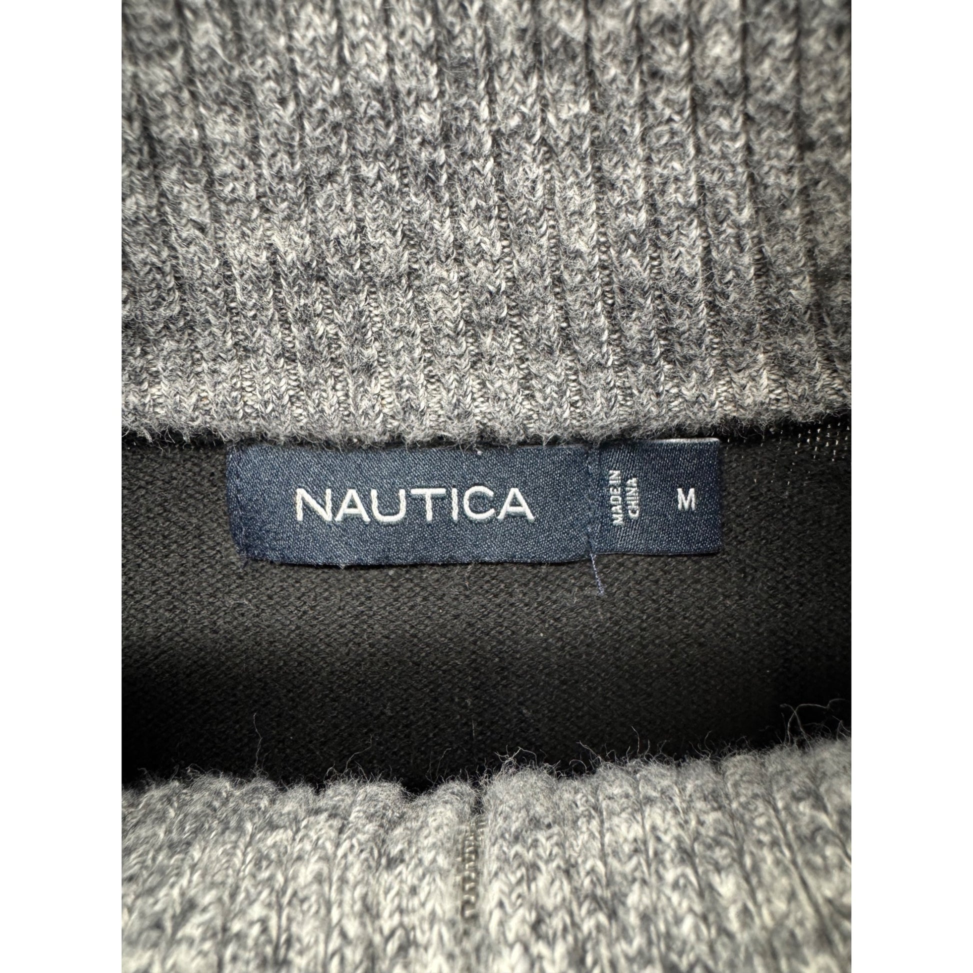Nautica Mens Black Half-Zip Cotton Sweater Ribbed Collar & Cuffs Size M 9429