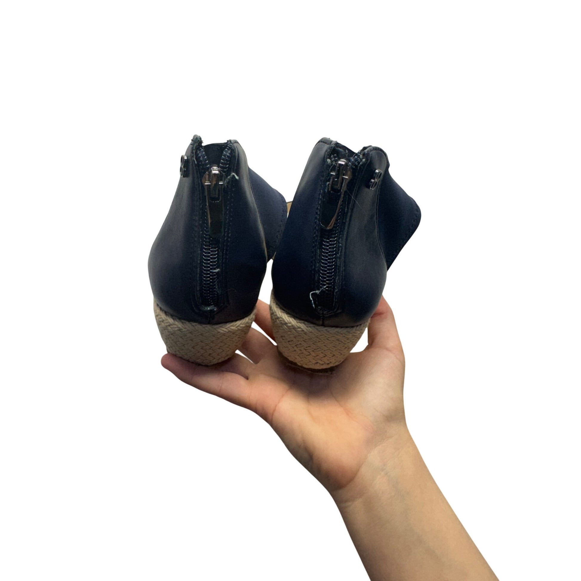 Navy Bandolino Leather Ankle Strap Wedge Sandals With Back Zipper Closure #7921