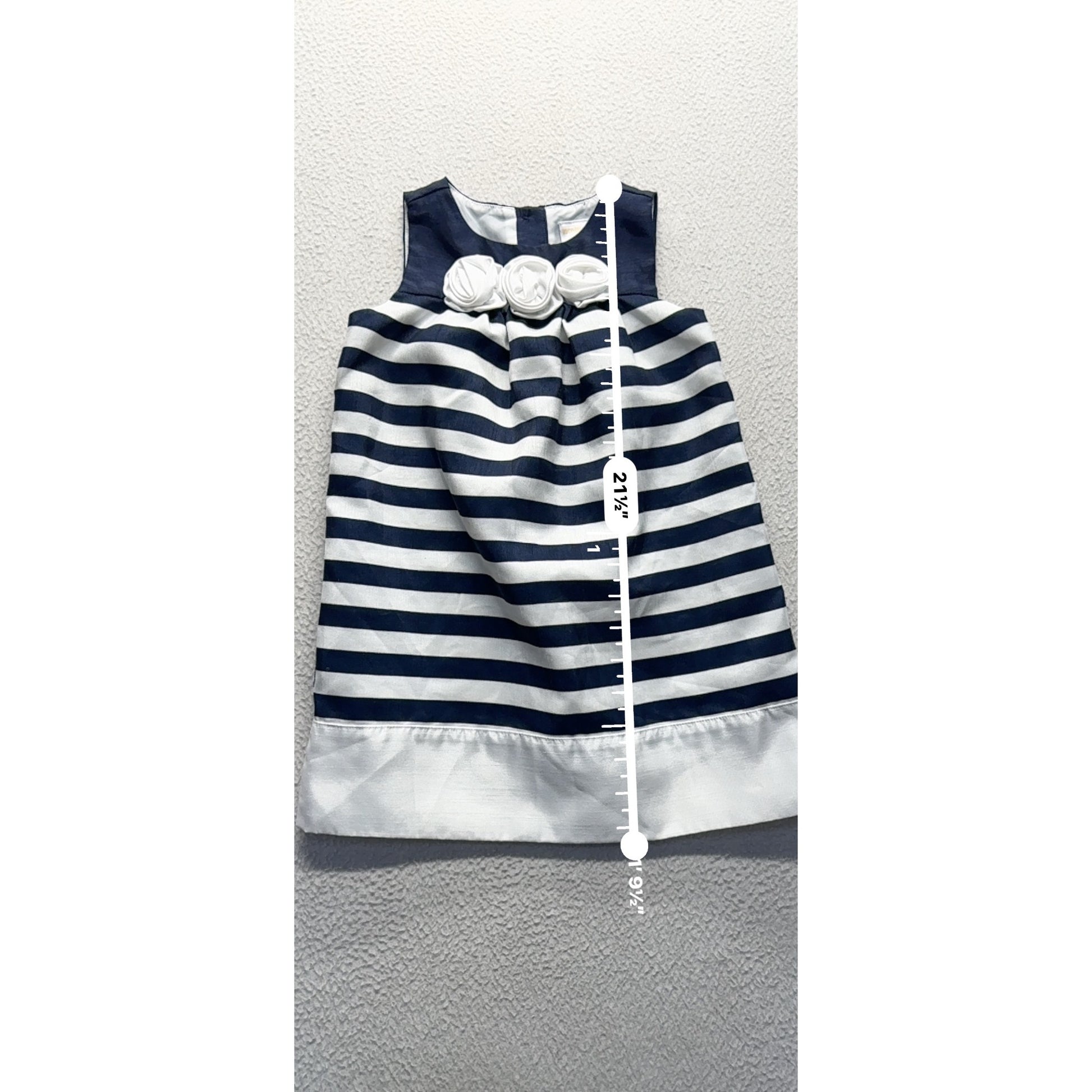 Navy & White Striped Sleeveless Dress Floral Accents By Gymboree Size 3T 255B