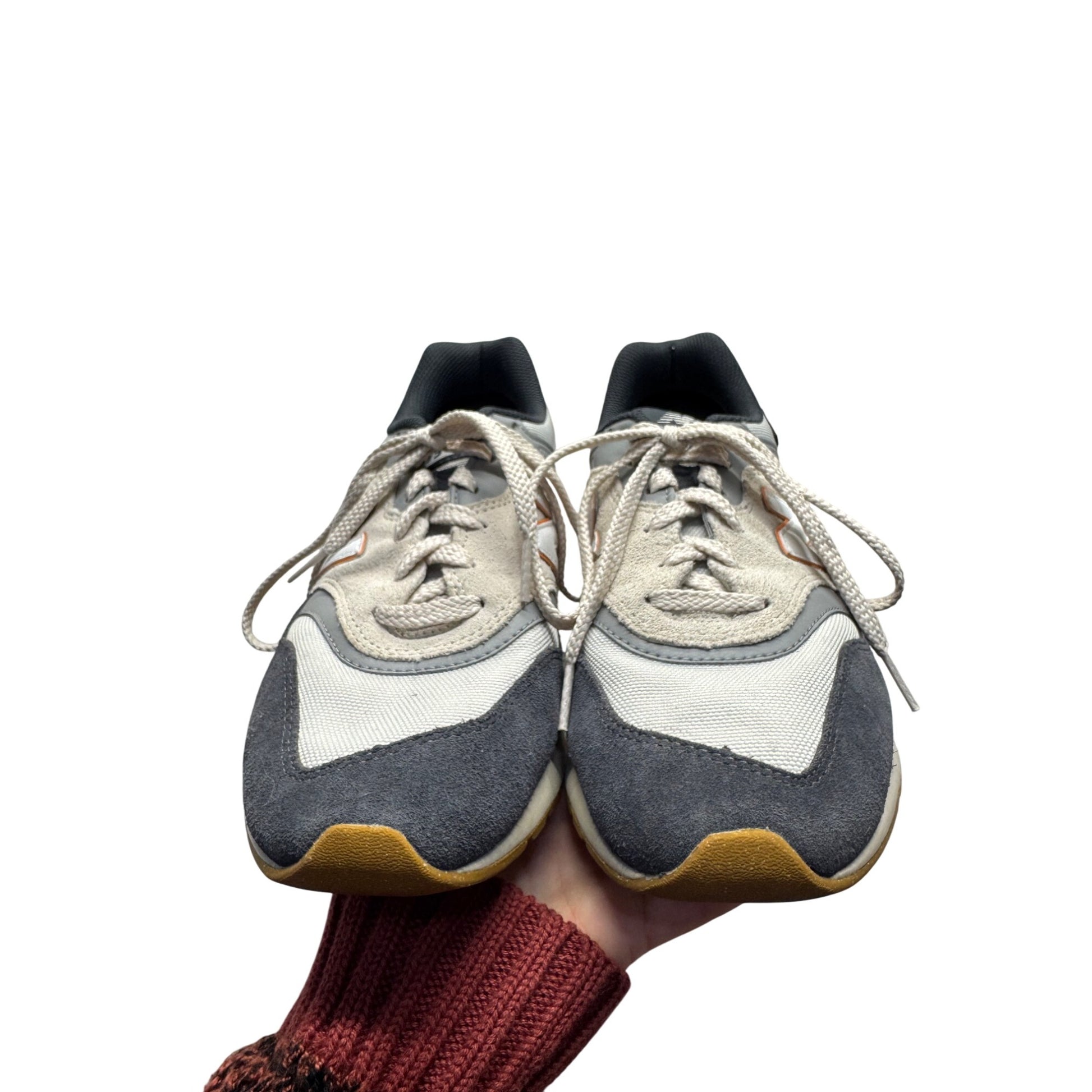 These New Balance 997H sneakers are crafted to provide both style and comfort. The combination of suede and mesh materials ensures durability and breathability, while the gray and orange color scheme adds a modern touch. Ideal for running or casual wear, these shoes offer reliable support and longevity.
