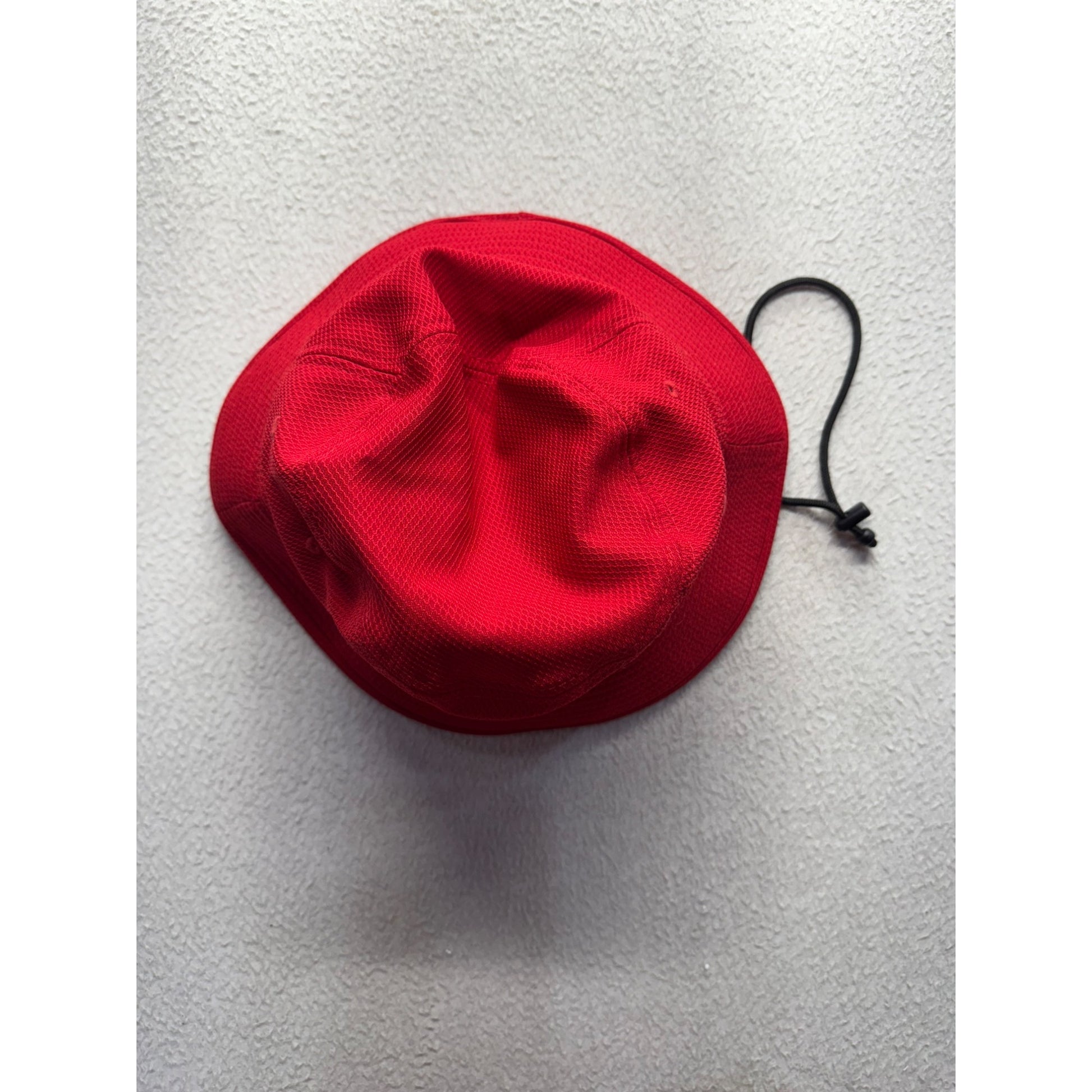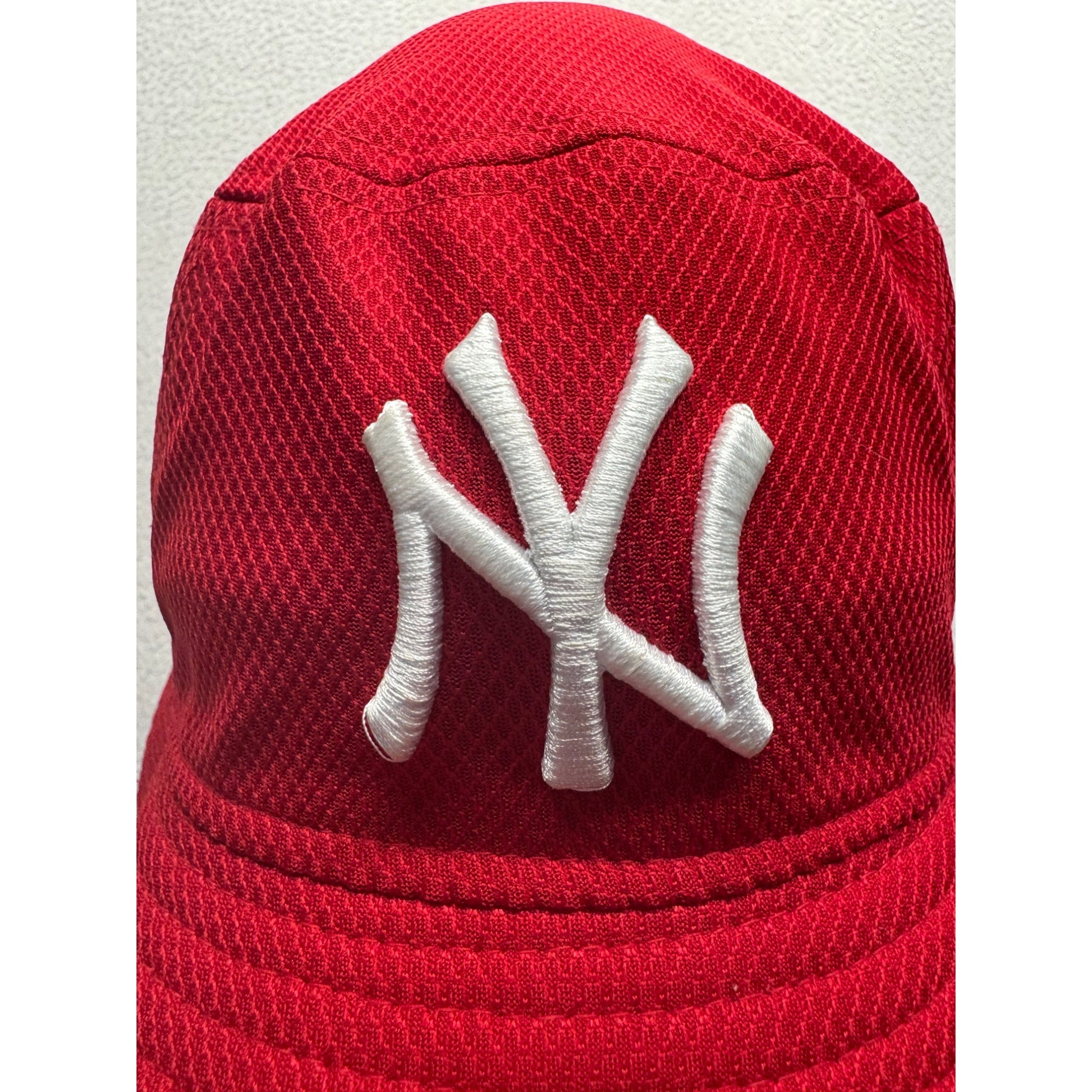 Versatile red mesh bucket hat featuring the iconic NY Yankees logo, designed for outdoor comfort and sports enthusiast style. Engineered with breathable texture and wide brim for sun protection during athletic activities or casual wear.